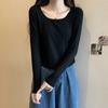 Camiseta básica para mujer, otoño e invierno, cuello medio alto, borde negro, corte entallado, primavera y otoño, camiseta blanca de manga larga, otoño 2022, nueva