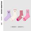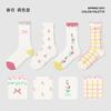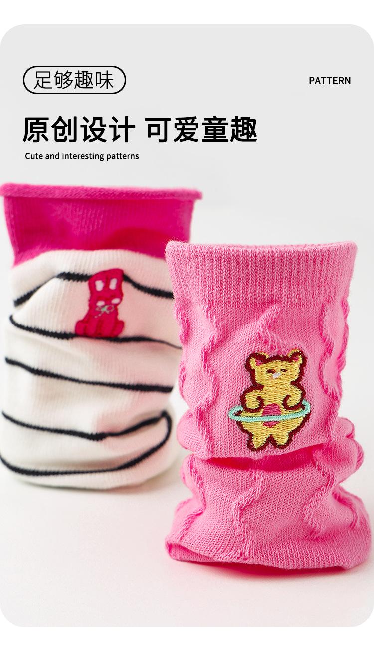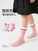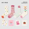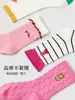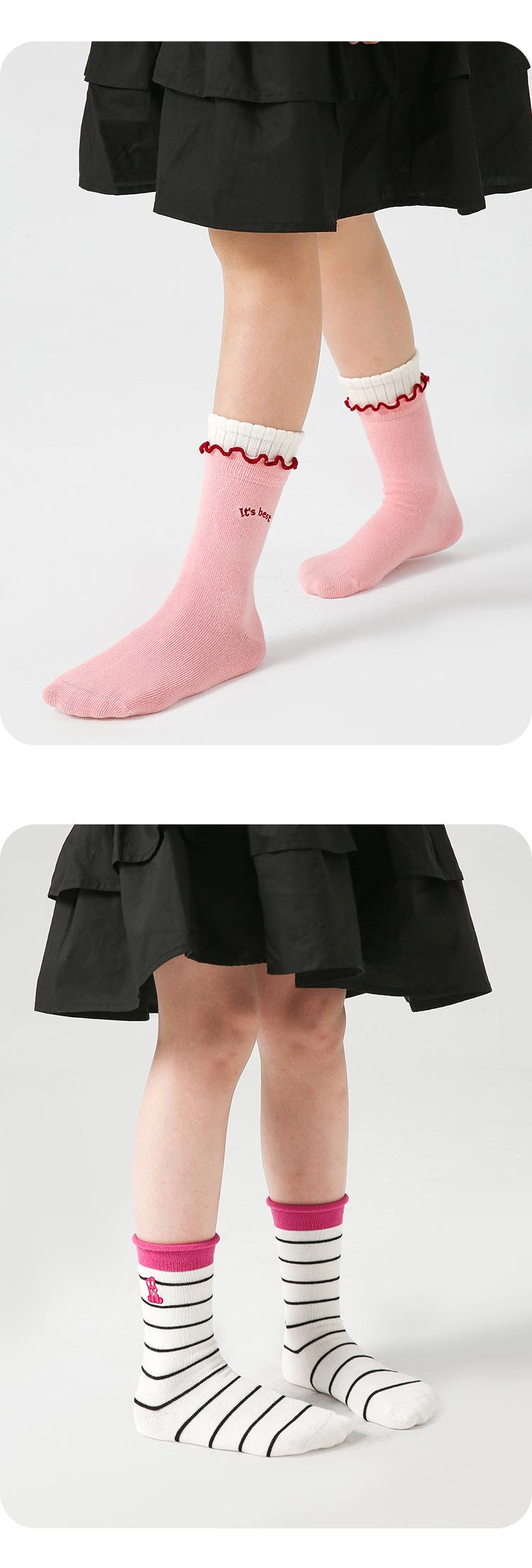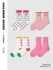 Calcetines para niños 2024 primavera nuevos calcetines de media pantorrilla para bebé a rayas con letras de dibujos animados calcetines de algodón peinado con encaje para niñas