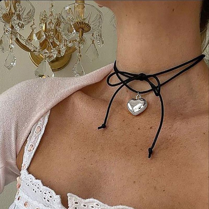 Gargantilla con lazo ajustable transfronterizo europeo y americano, con línea de cera, joyería, collar con colgante simple en forma de corazón de melocotón grande