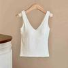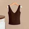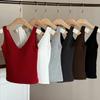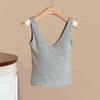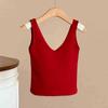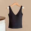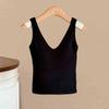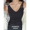 Chaleco cálido de felpa con cuello en V para mujer, ropa exterior con almohadilla para el pecho, ropa interior de punto con tirantes, camisa de base integrada para otoño e invierno