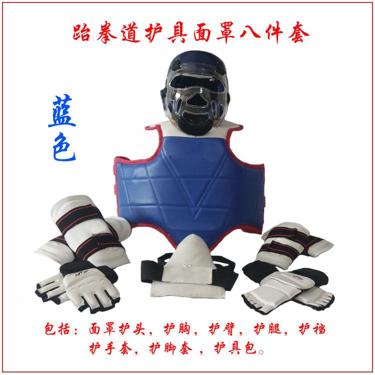 Equipo de protección de Taekwondo, conjunto de cinco piezas, tipo competición, máscara gruesa, casco, conjunto completo de combate real, conjunto de equipo de protección de ocho piezas para niños