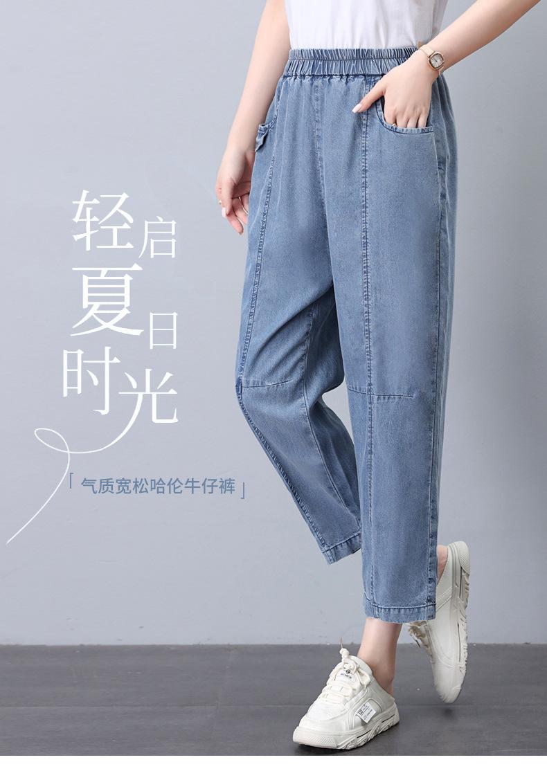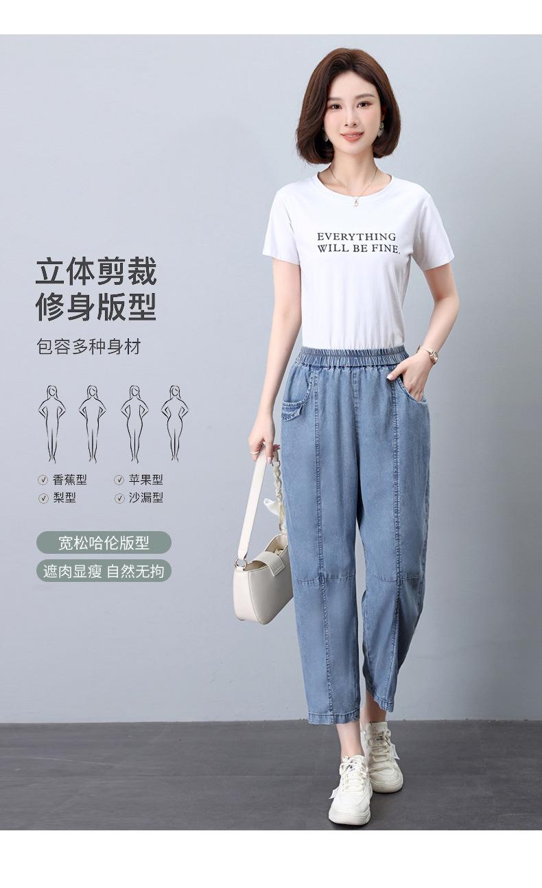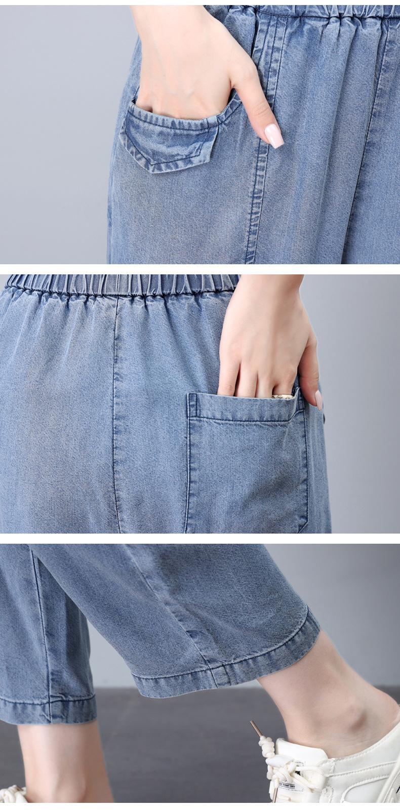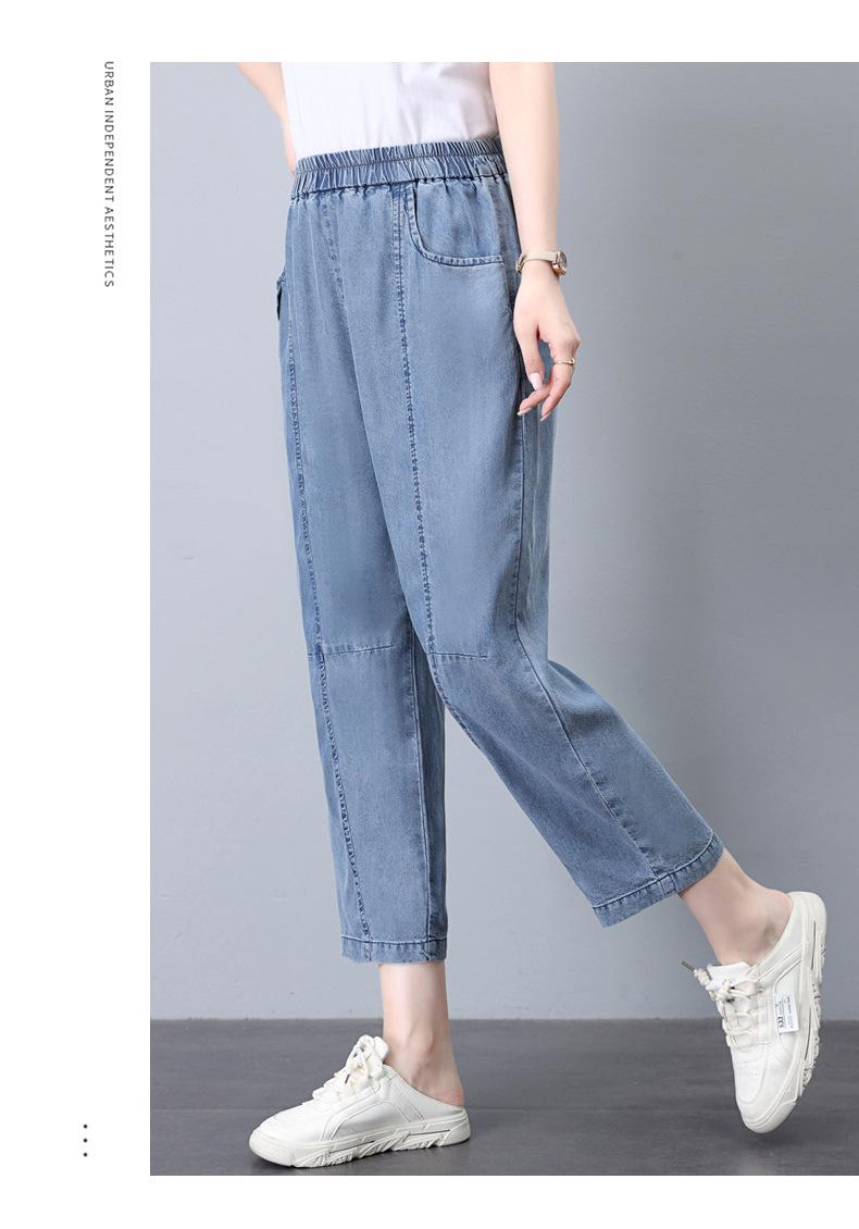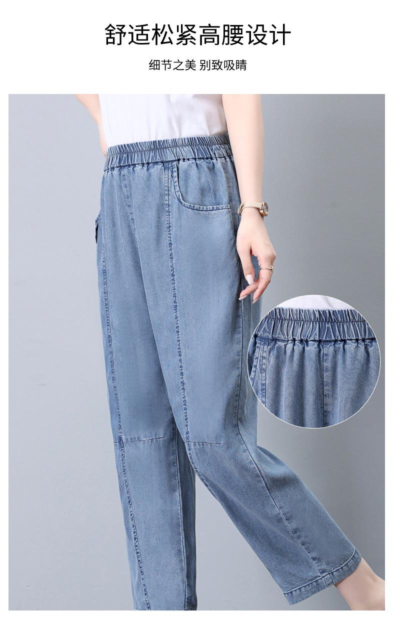 Pantalones vaqueros Tencel para mujer, novedad de verano 2024, pantalones finos rectos de seda helada para madres pequeñas, pantalones cortos de primavera y otoño.