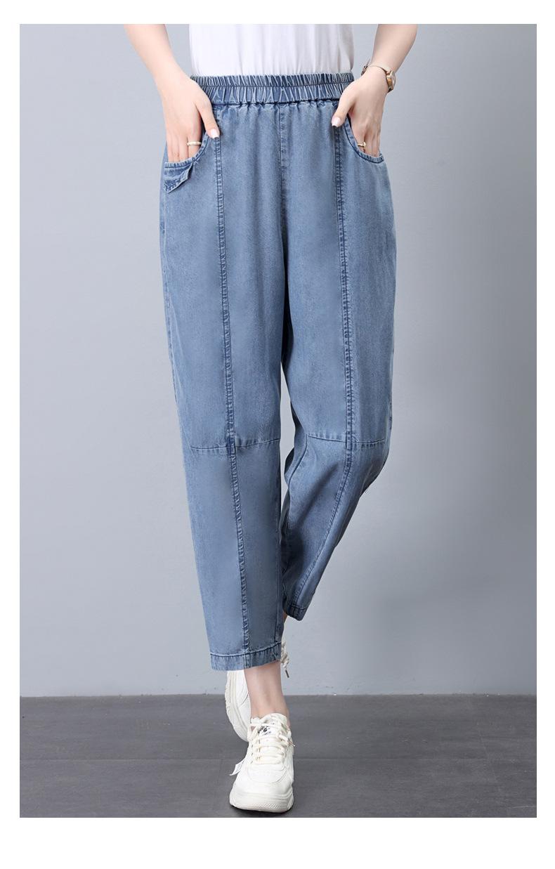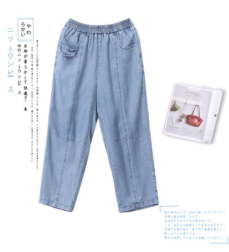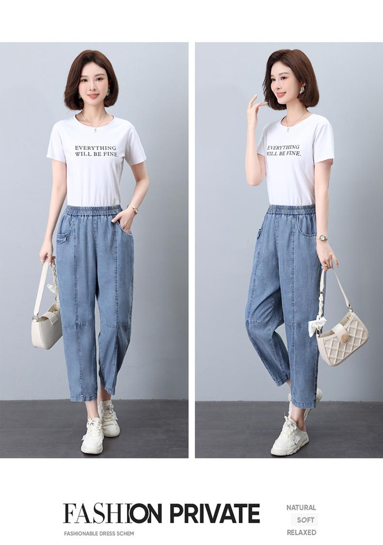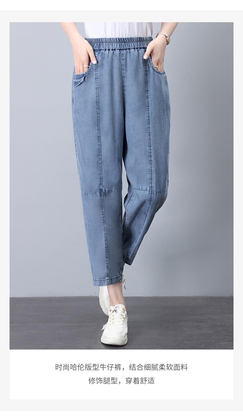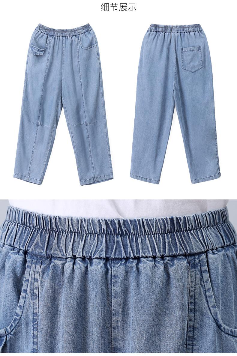 Pantalones vaqueros Tencel para mujer, novedad de verano 2024, pantalones finos rectos de seda helada para madres pequeñas, pantalones cortos de primavera y otoño.