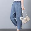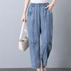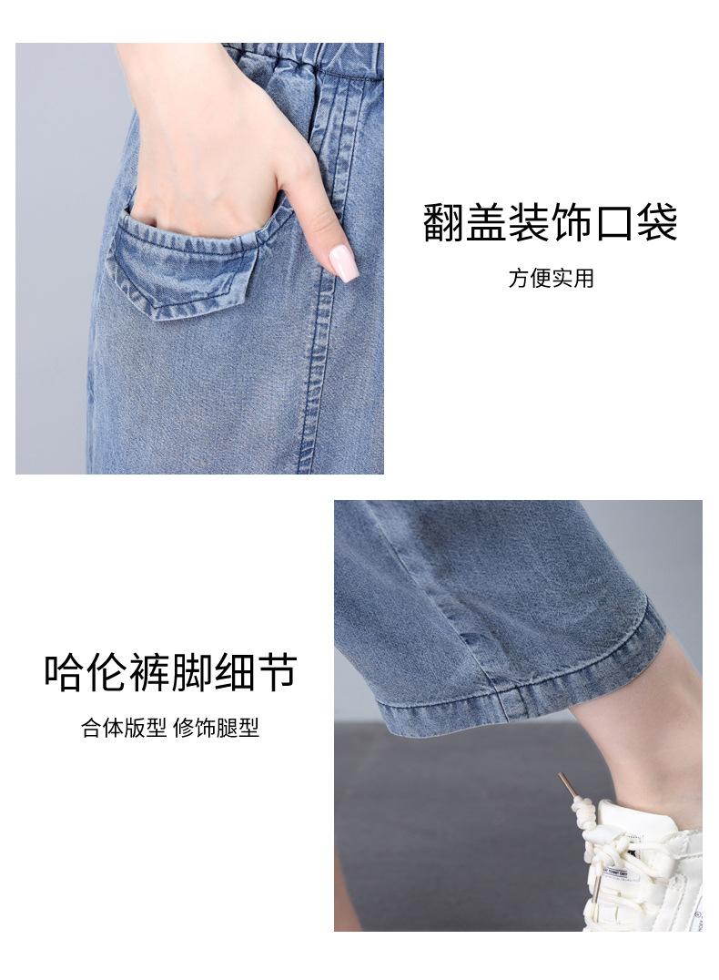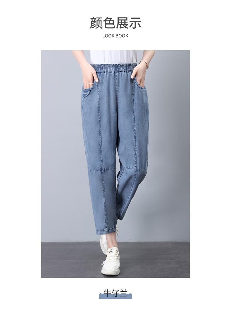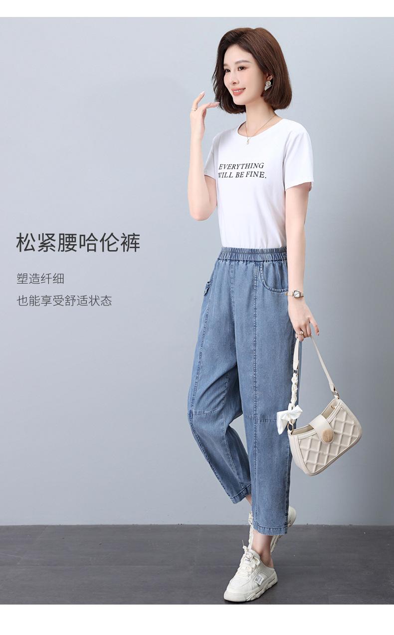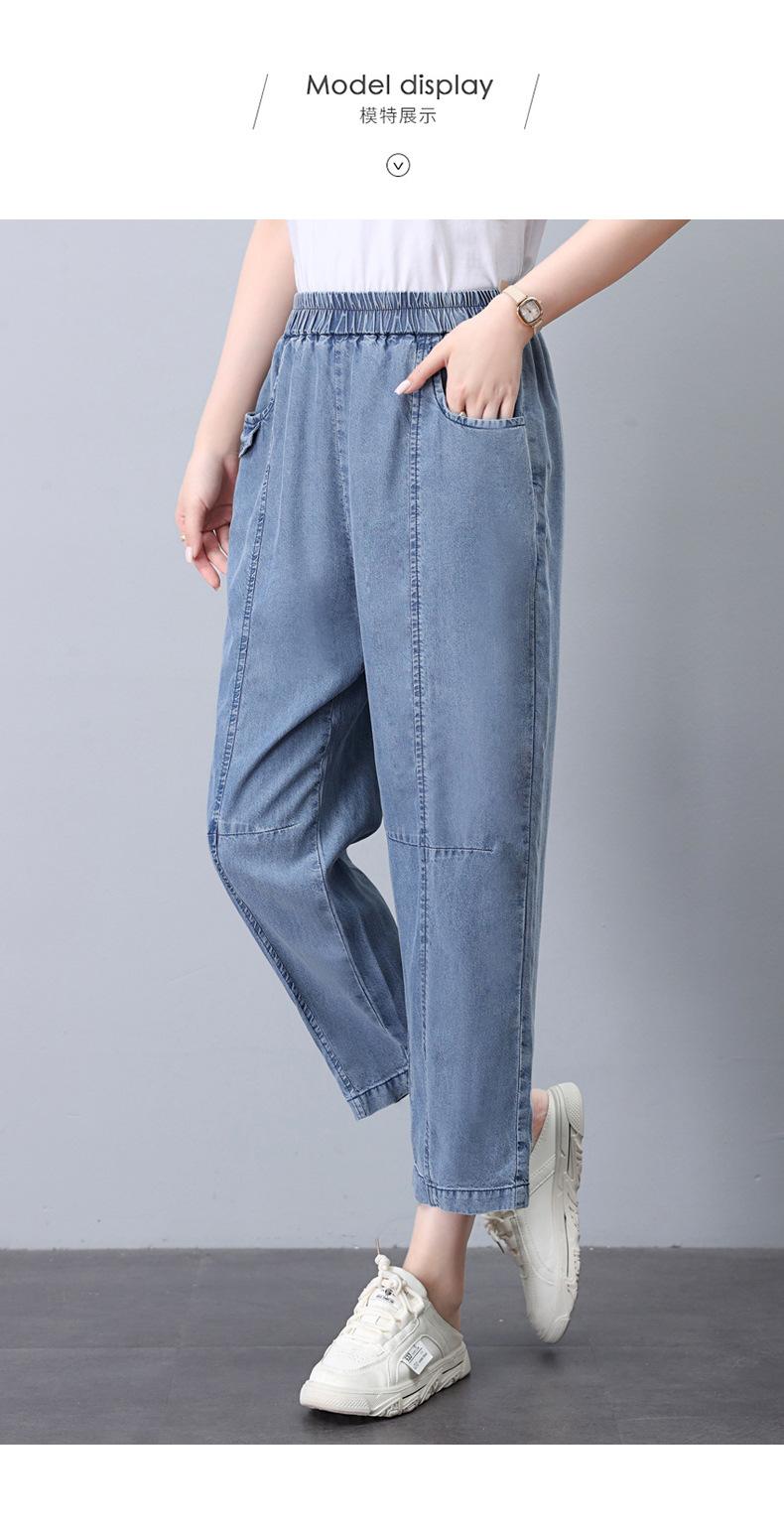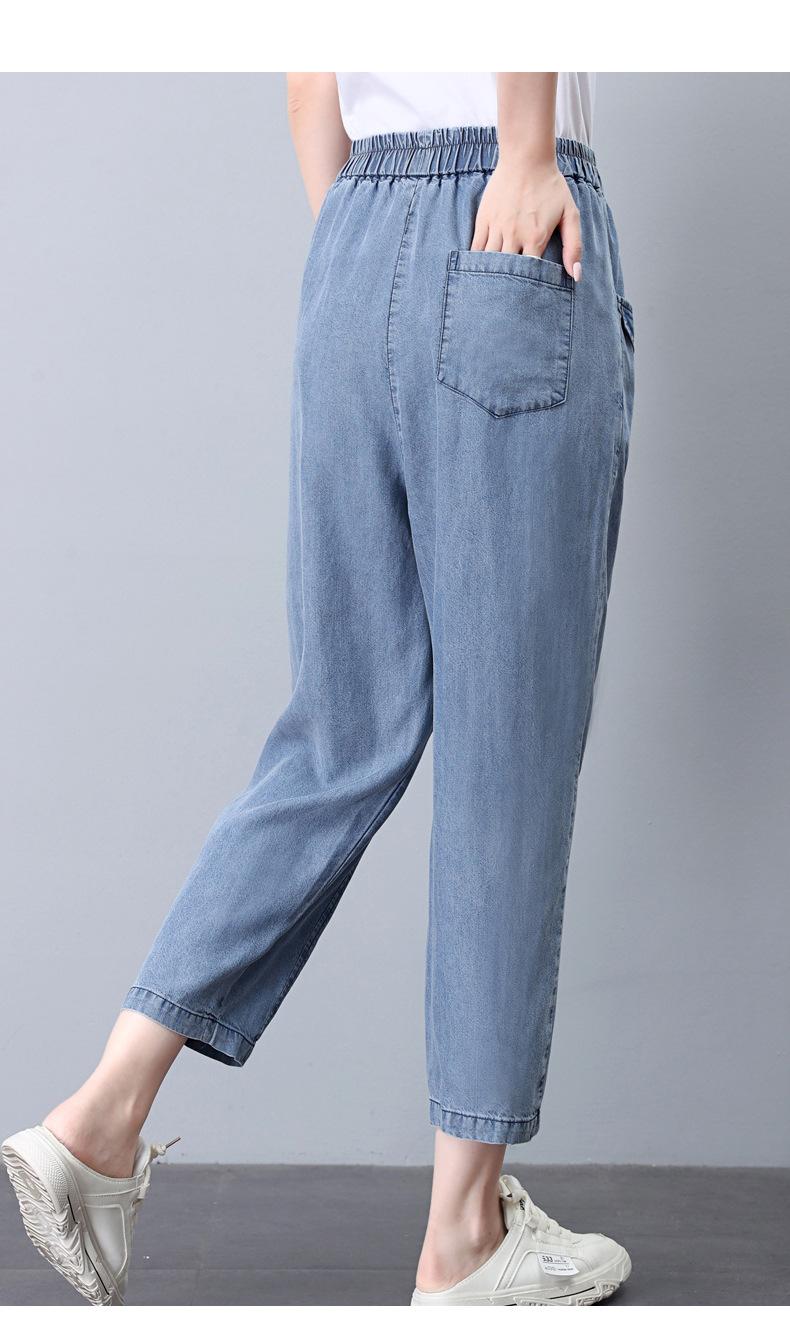 Pantalones vaqueros Tencel para mujer, novedad de verano 2024, pantalones finos rectos de seda helada para madres pequeñas, pantalones cortos de primavera y otoño.