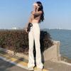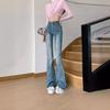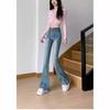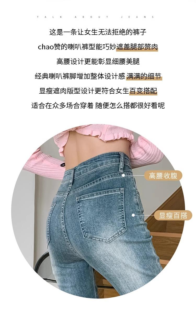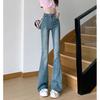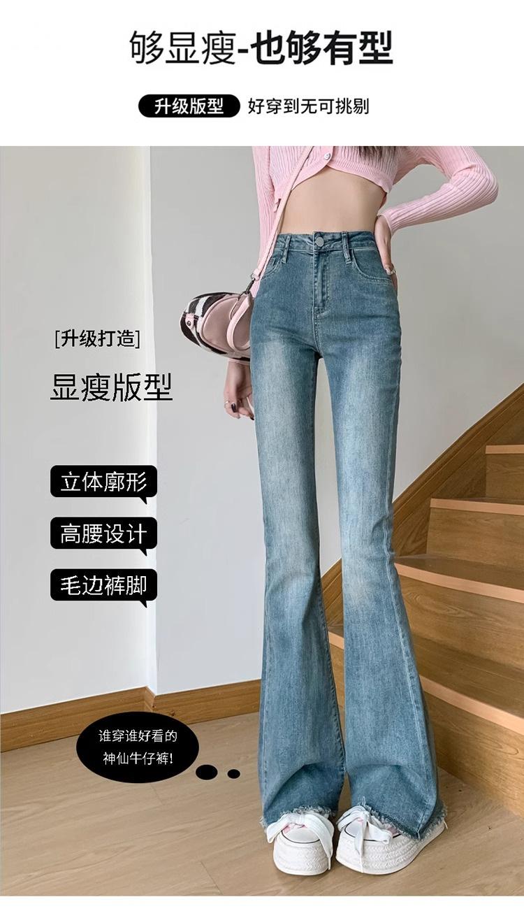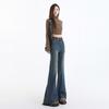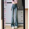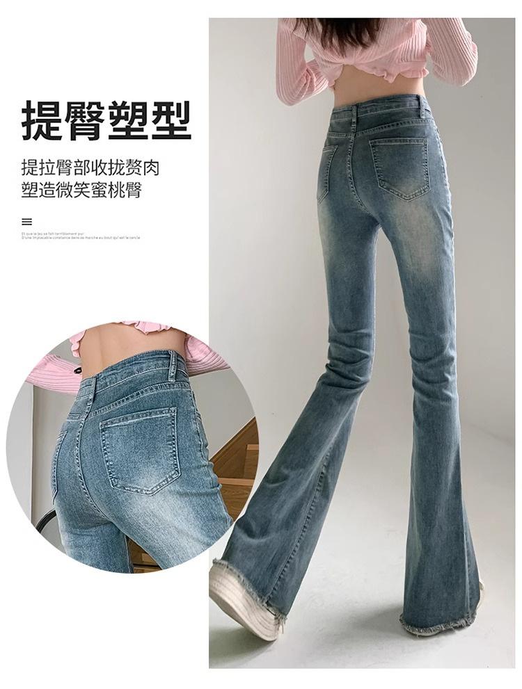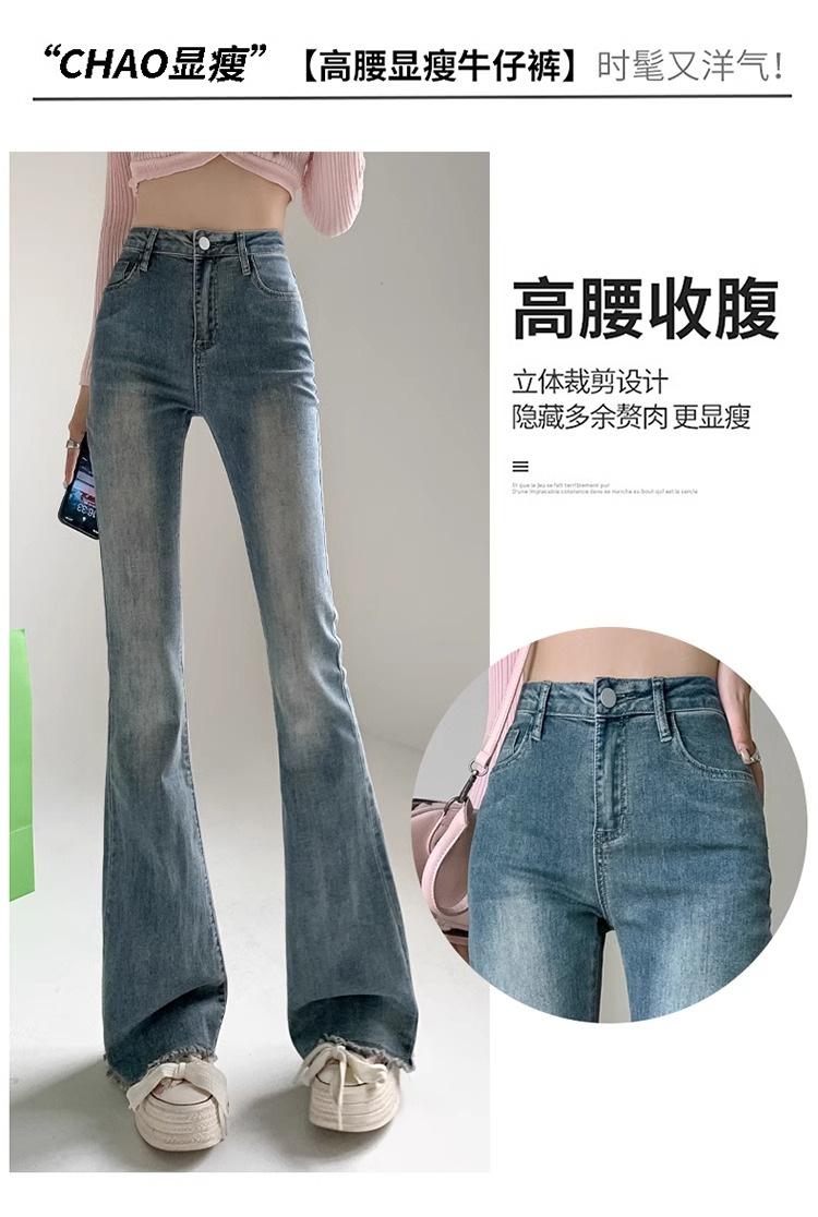 Jeans de Lana Vintage para Mujer Primavera y Otoño Nuevos Cintura Alta Elásticos Ajustados Adelgazantes Combinan con Todo Pantalones Acampanados de Trompeta