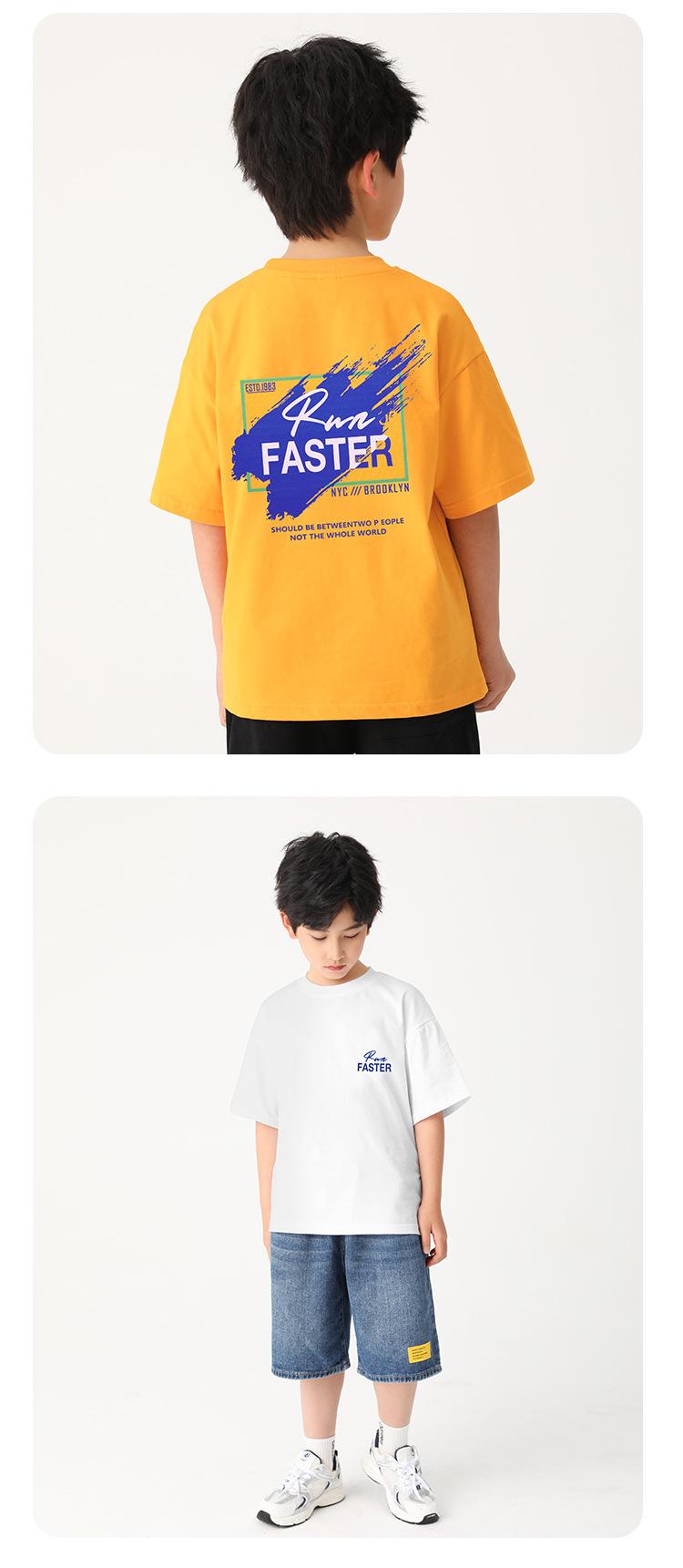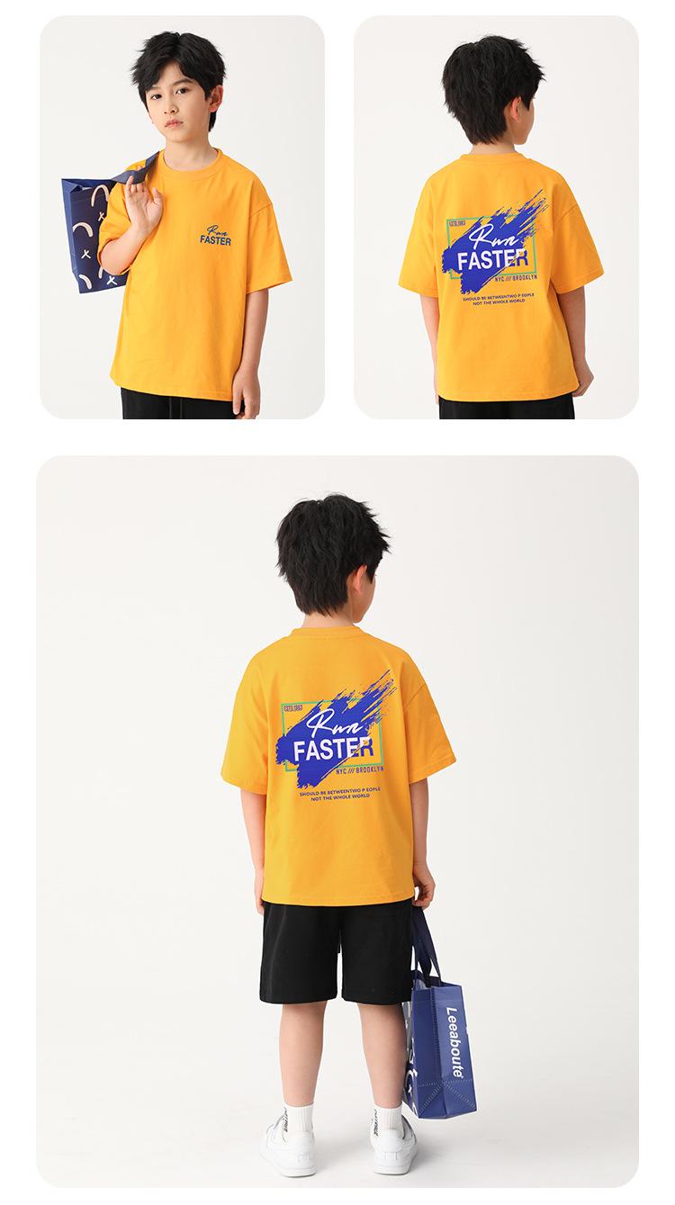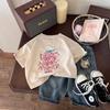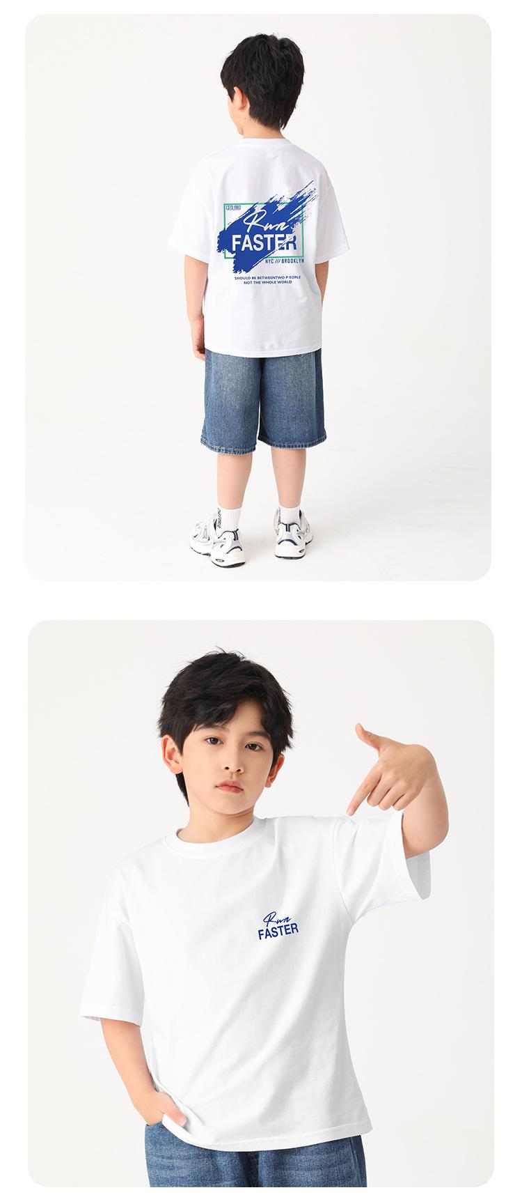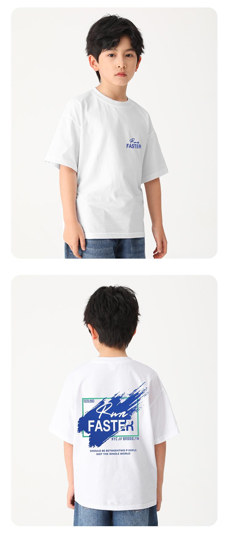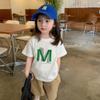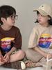 24 Primavera y Verano Estilo Coreano Casual Graffiti Letra Estampada Top para Niños Medianos y Grandes Niños y Niñas Camiseta de Cuello Redondo para Niños Medianos y Grandes con Mangas Cortas
