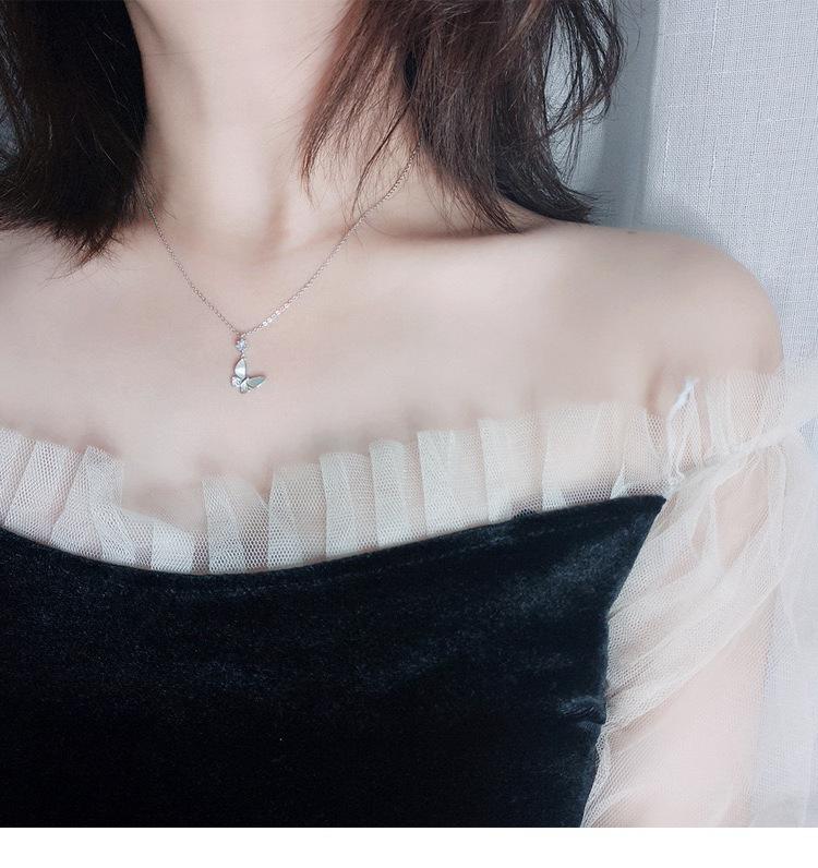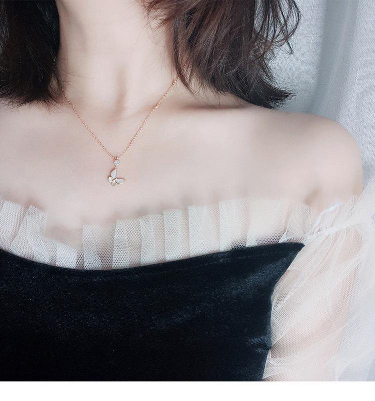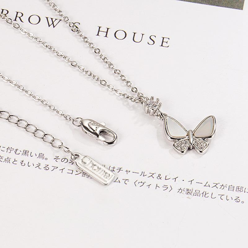 Collar de Concha Blanca Natural Nueva de Singapur Mariposa Cadena Clavícula para Mujer Diamantes Micro-incrustados Recomendado por Red Pequeño Libro Rojo