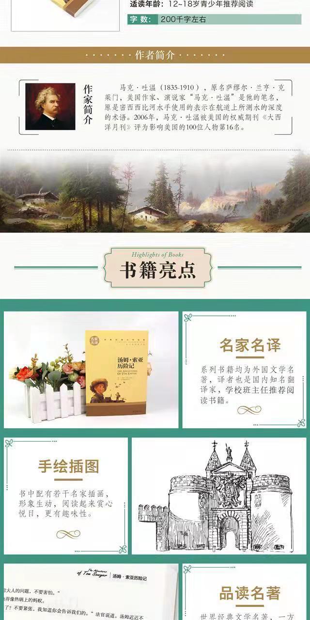 The Adventures of Tom Sawyer, The Prince and the Poor, Chekov short stories, Uncle Tom's Cabin, 20,000 miles u...