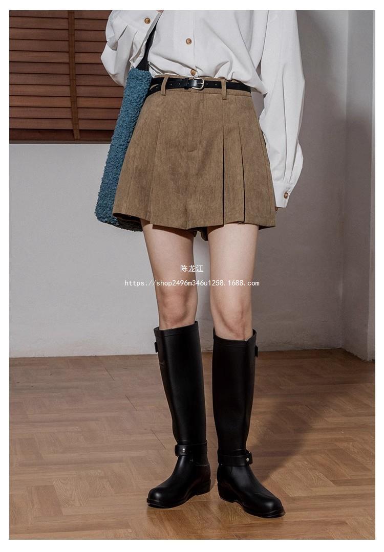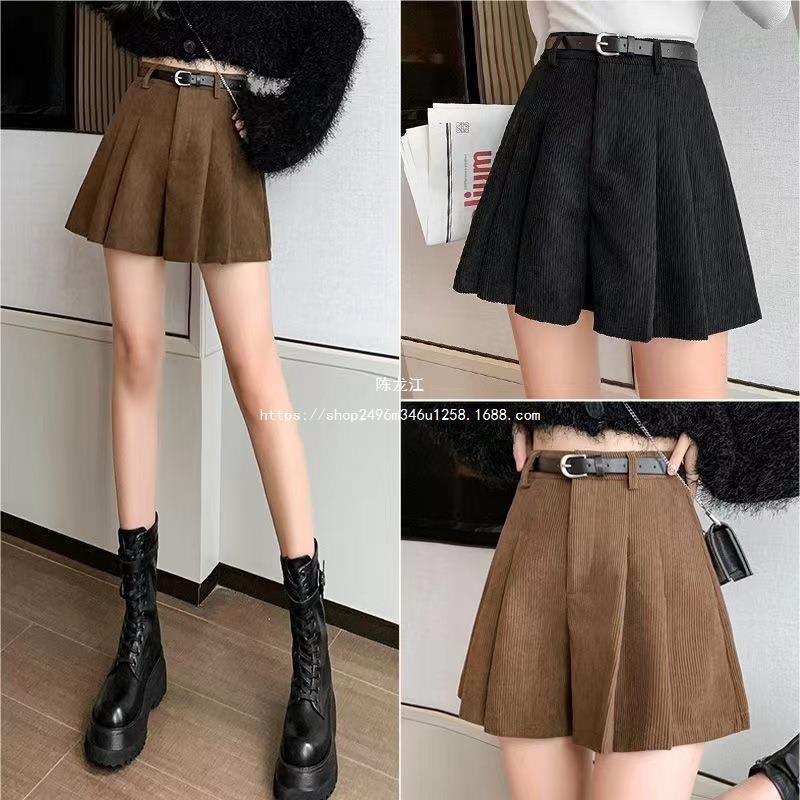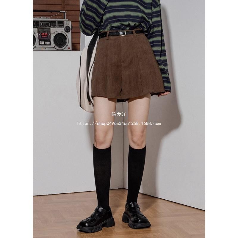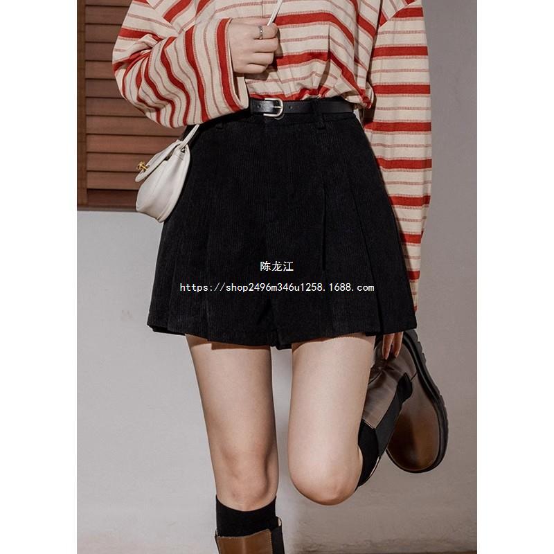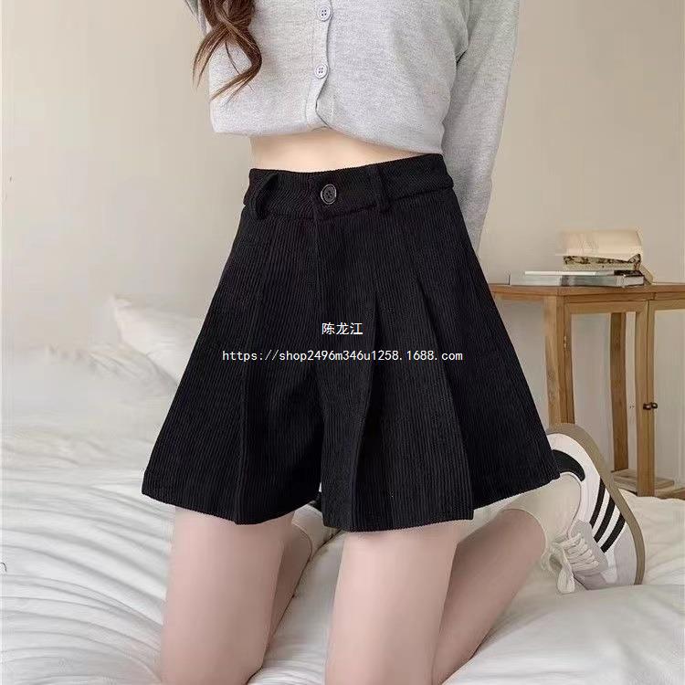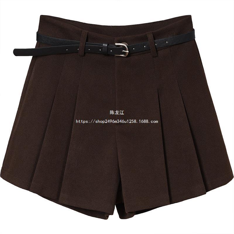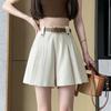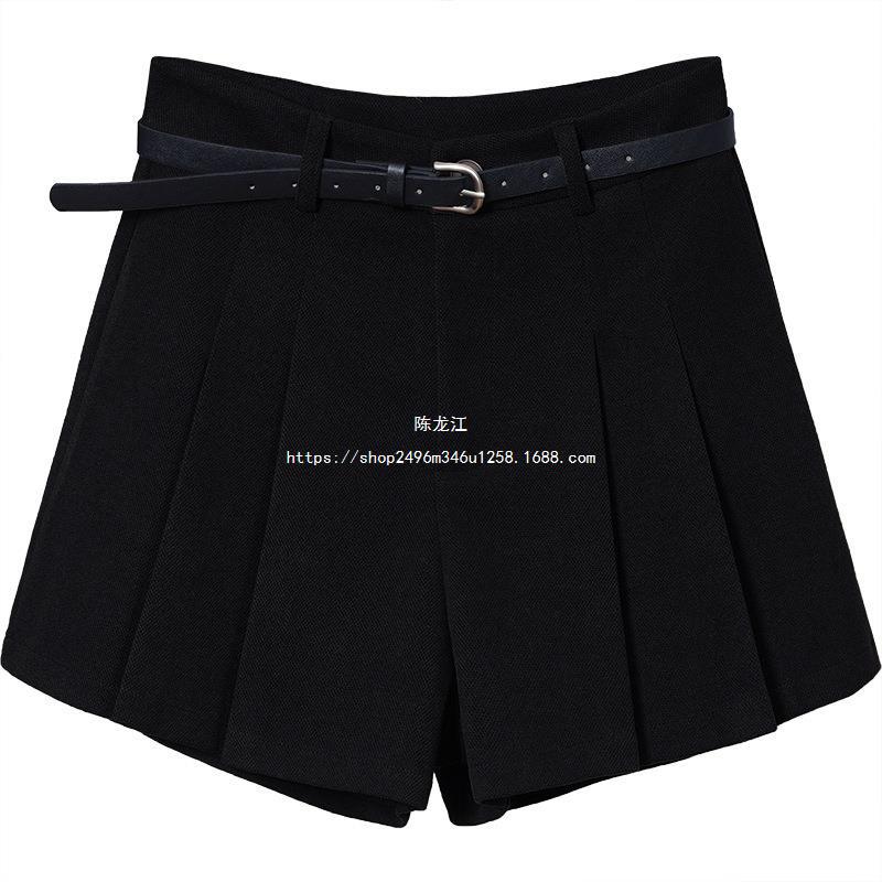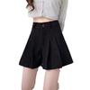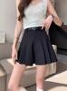 Pantalones cortos de traje falso con pliegues finos para mujer, ropa exterior ajustada de verano 2024a, pantalones culotte de cintura alta, nuevos negros