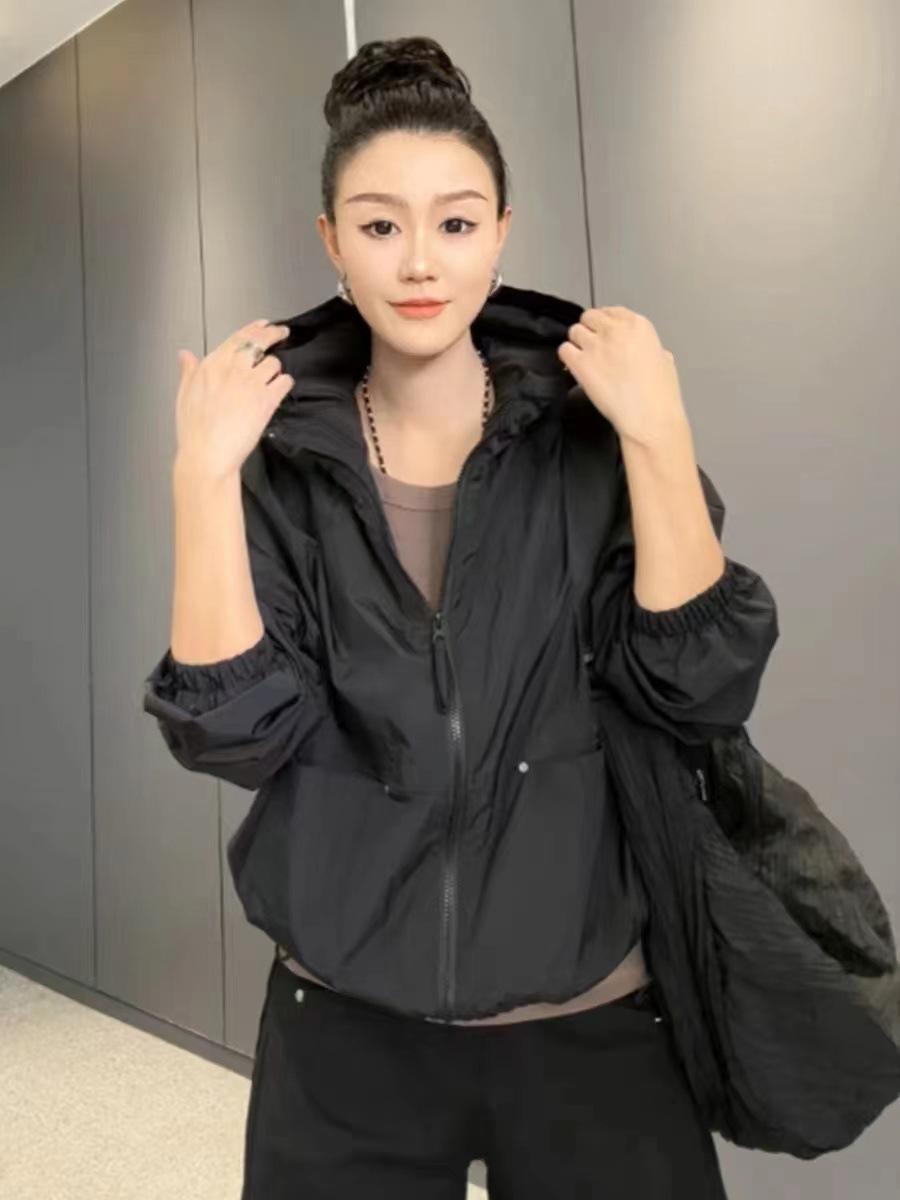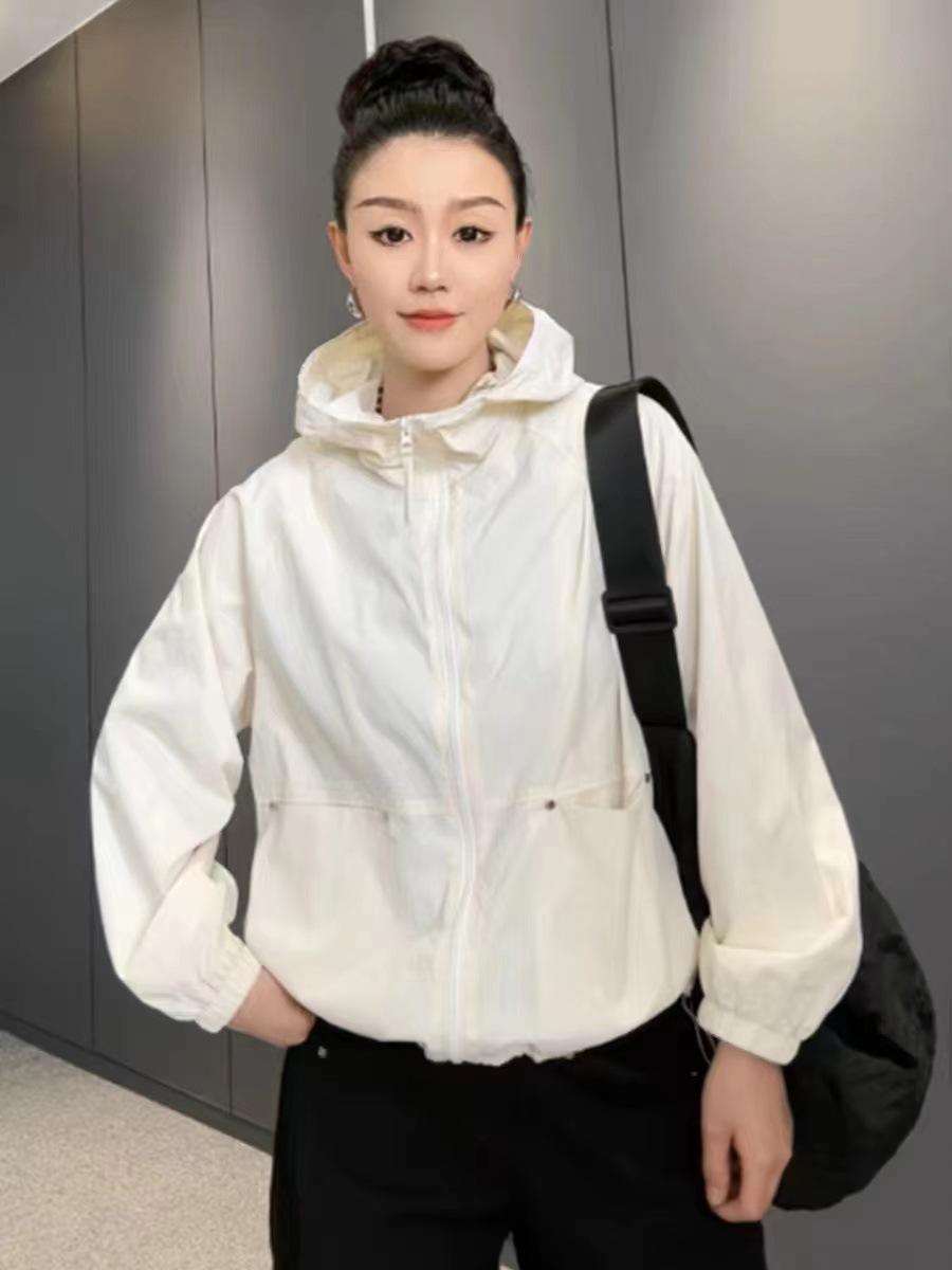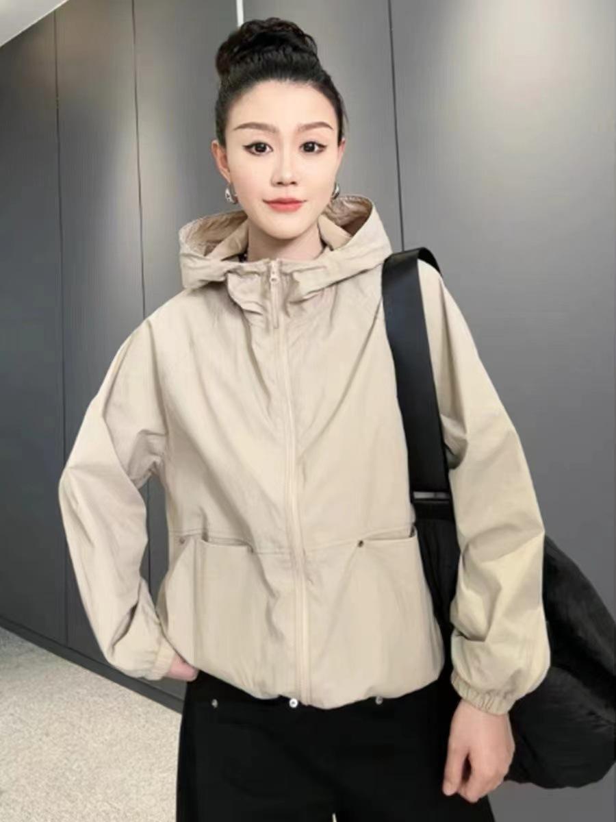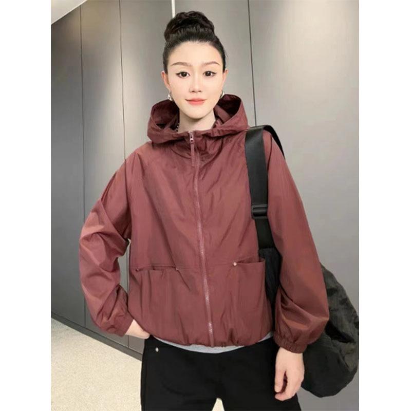 Abrigo corto para mujer, primavera y verano, nuevo, estilo coreano, manga larga, informal, combinable, fino, con capucha, ligero, protector solar, moderno.