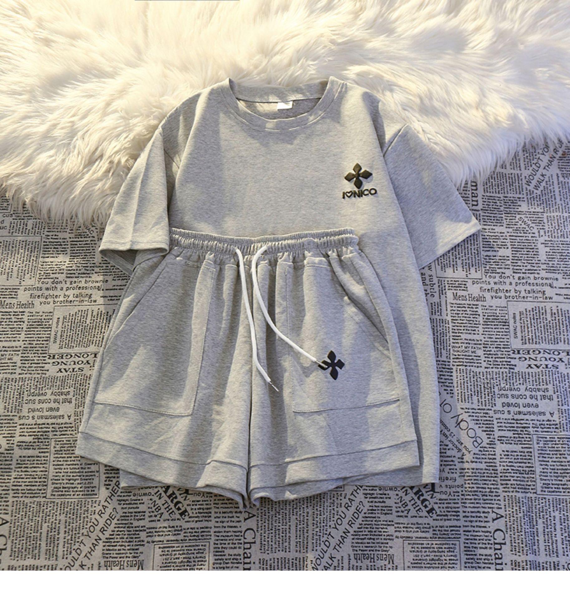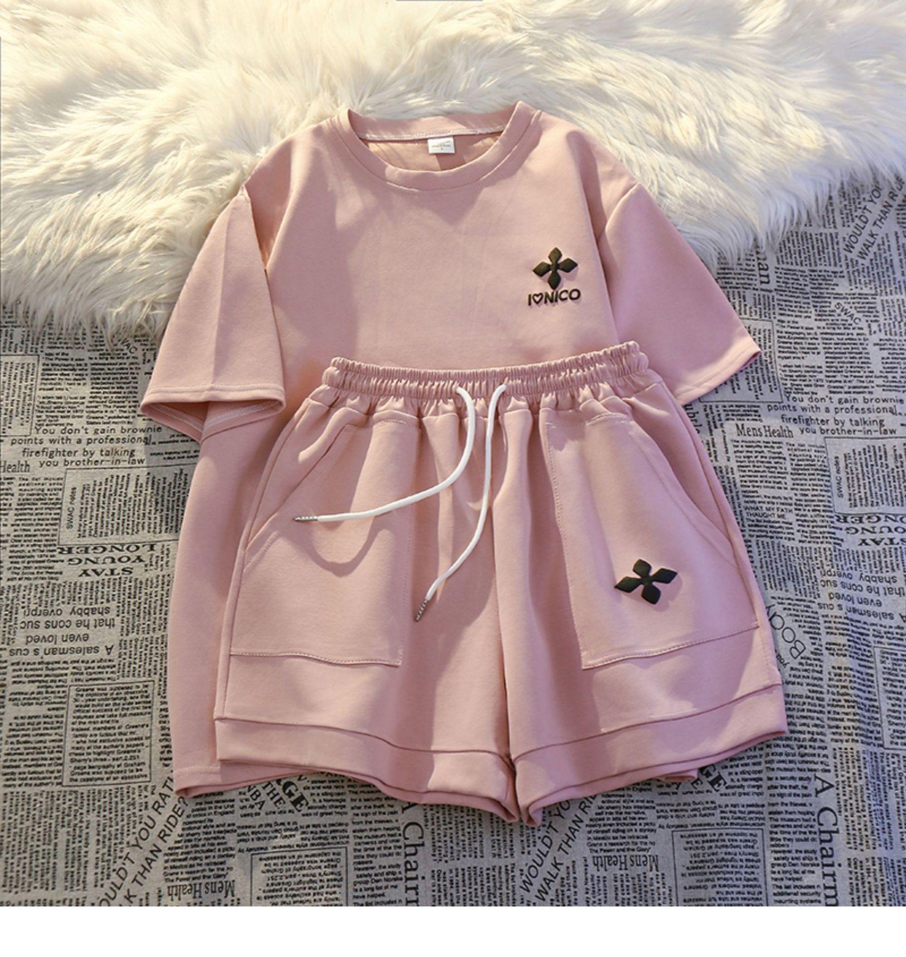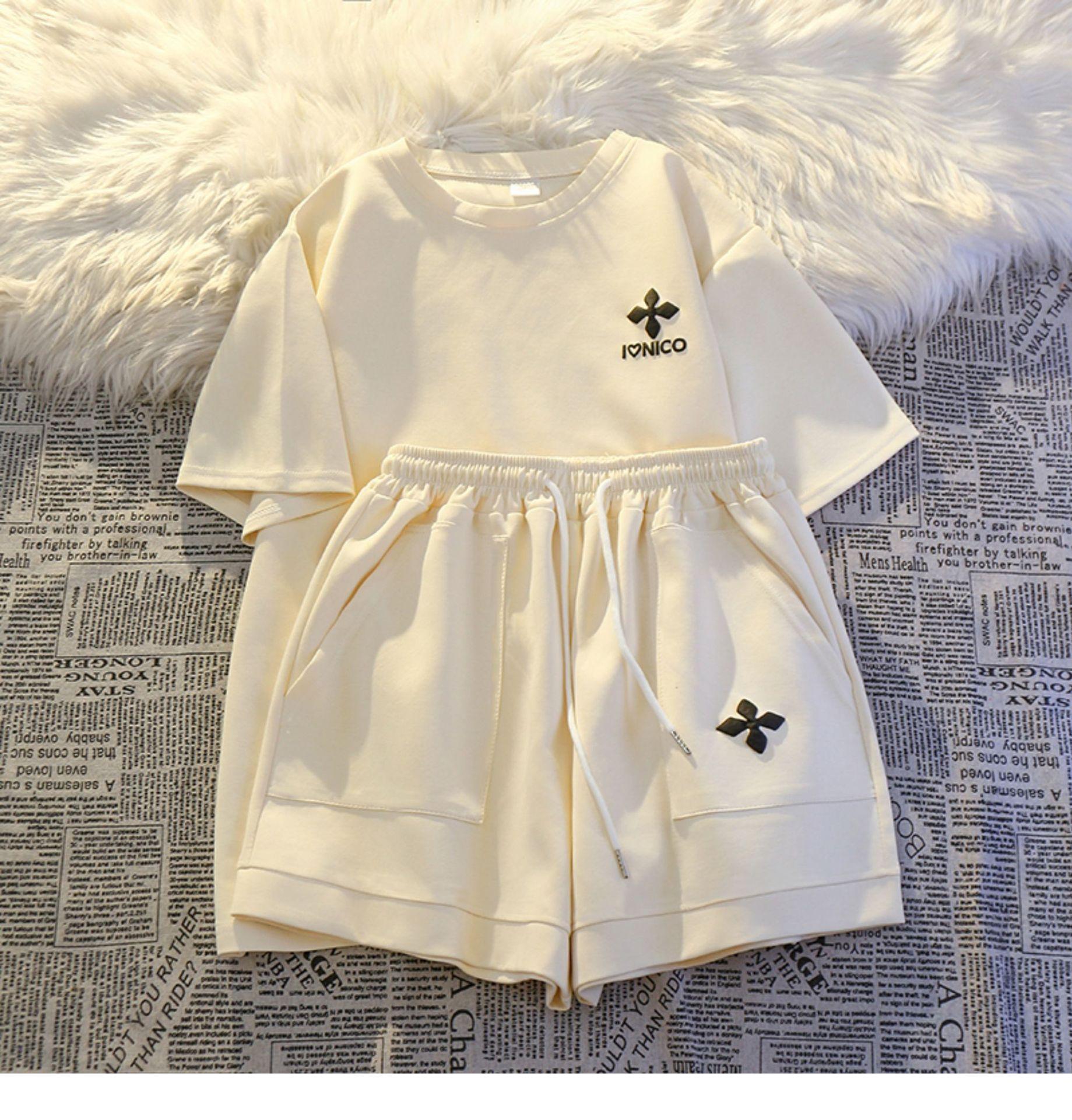 Traje deportivo de verano de comercio exterior transfronterizo para mujer, ropa pequeña con pantalones cortos de manga corta, conjunto de dos piezas