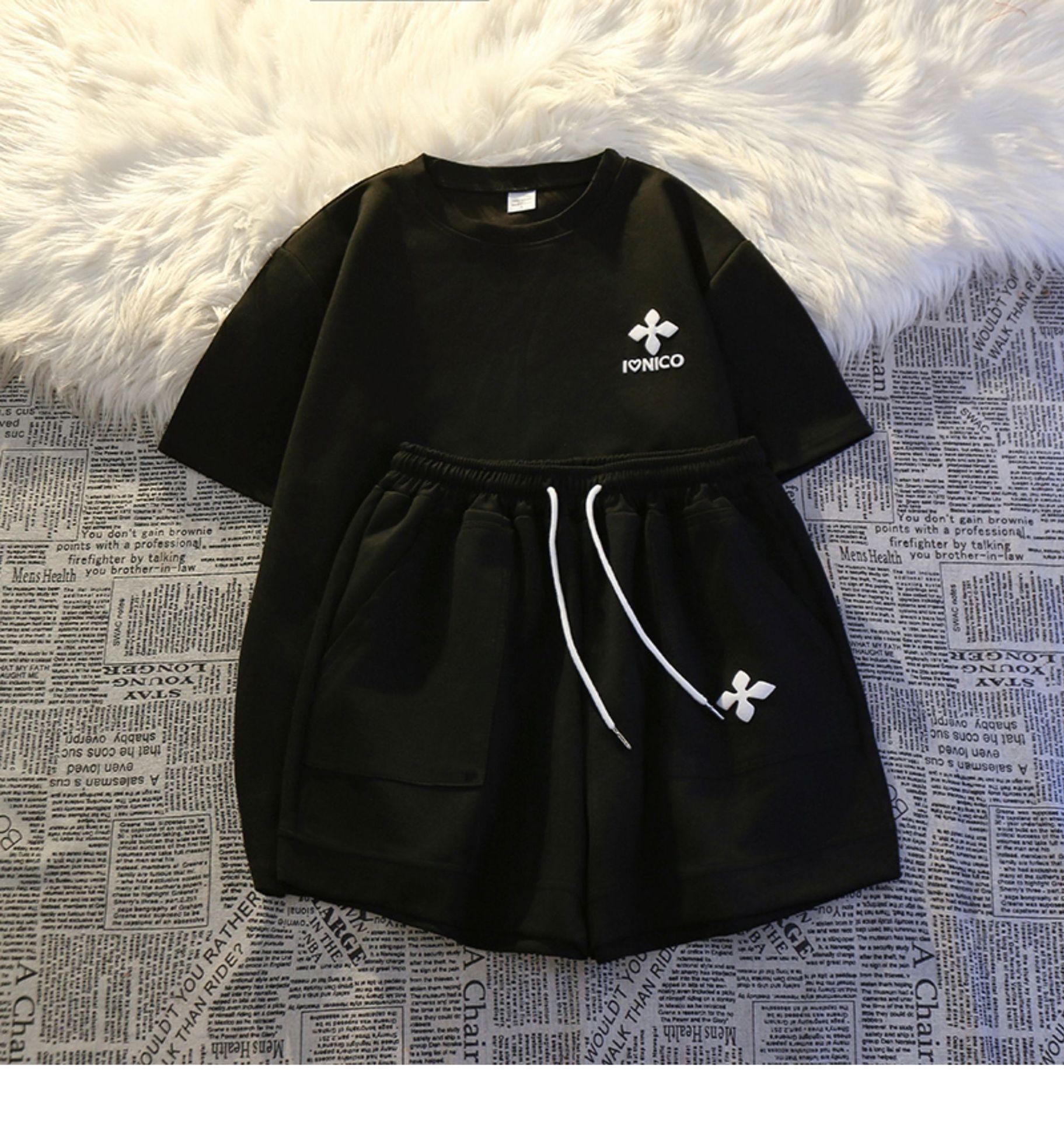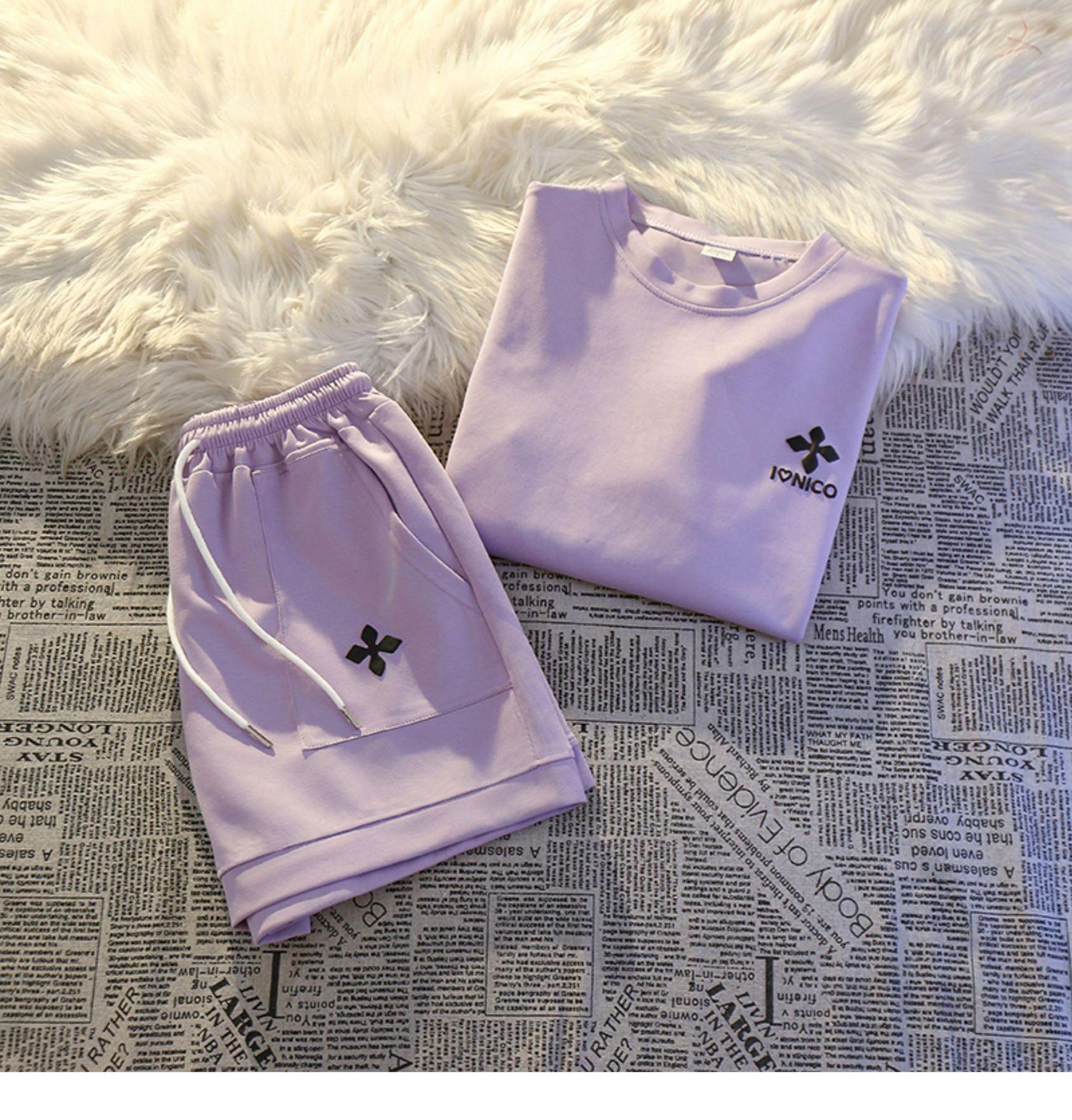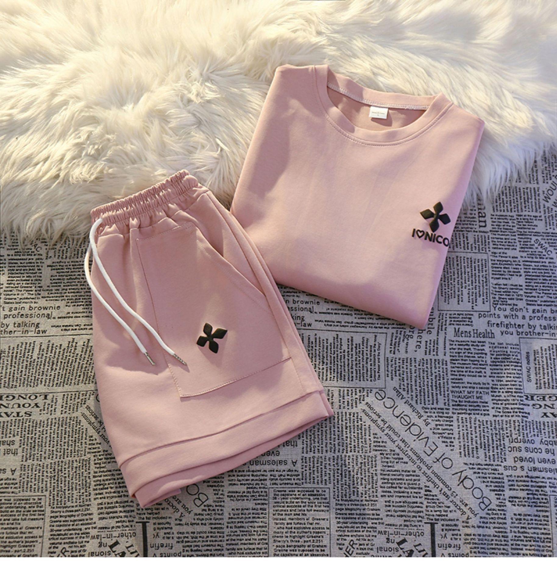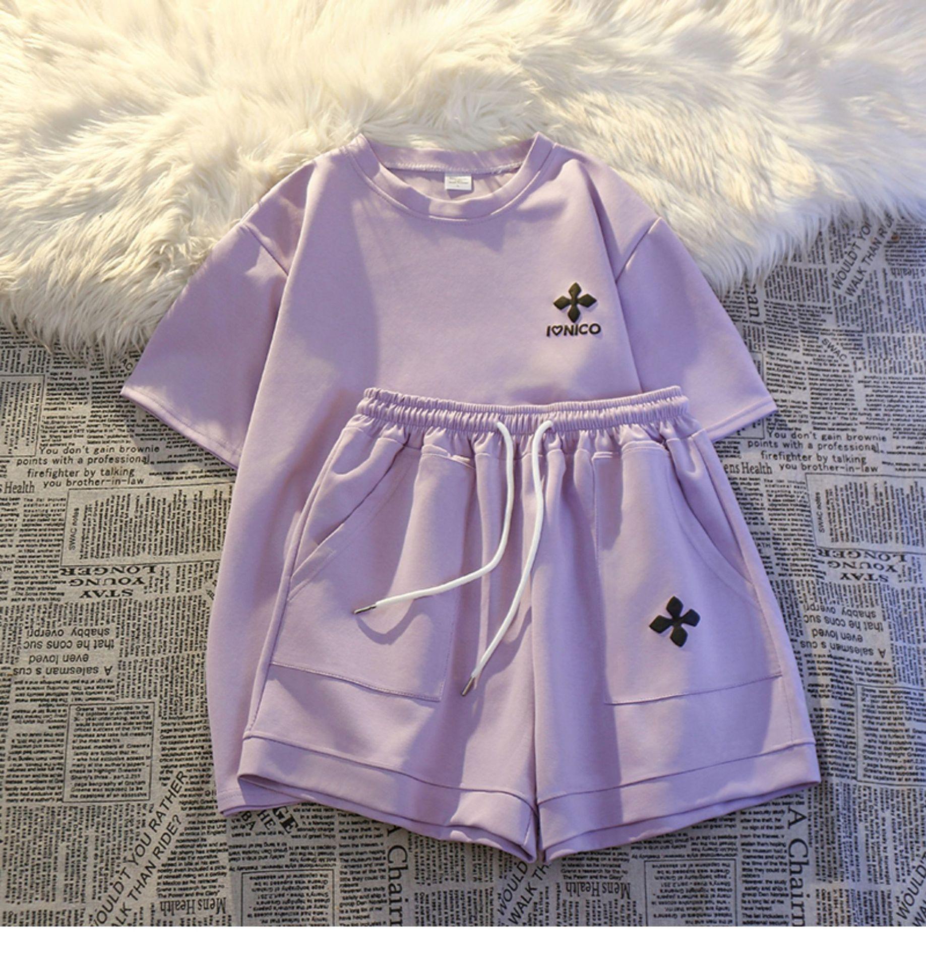 Traje deportivo de verano de comercio exterior transfronterizo para mujer, ropa pequeña con pantalones cortos de manga corta, conjunto de dos piezas