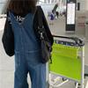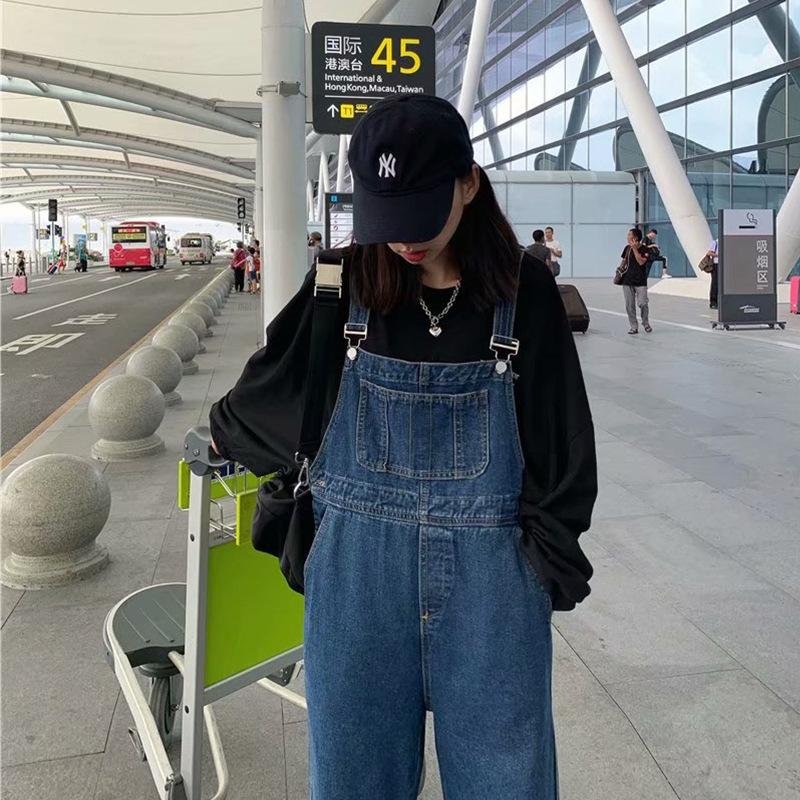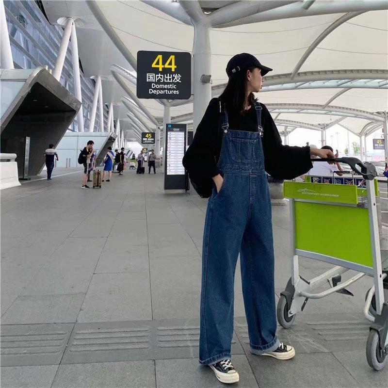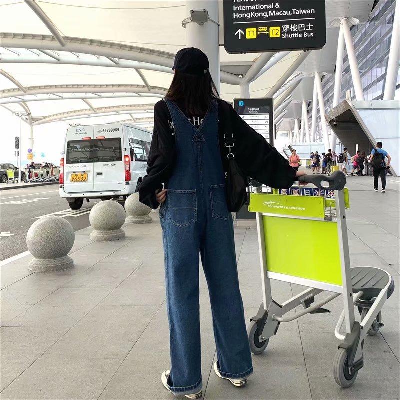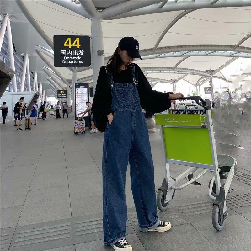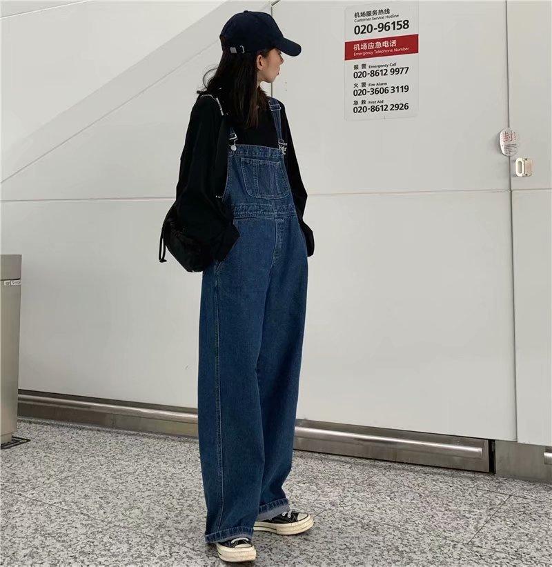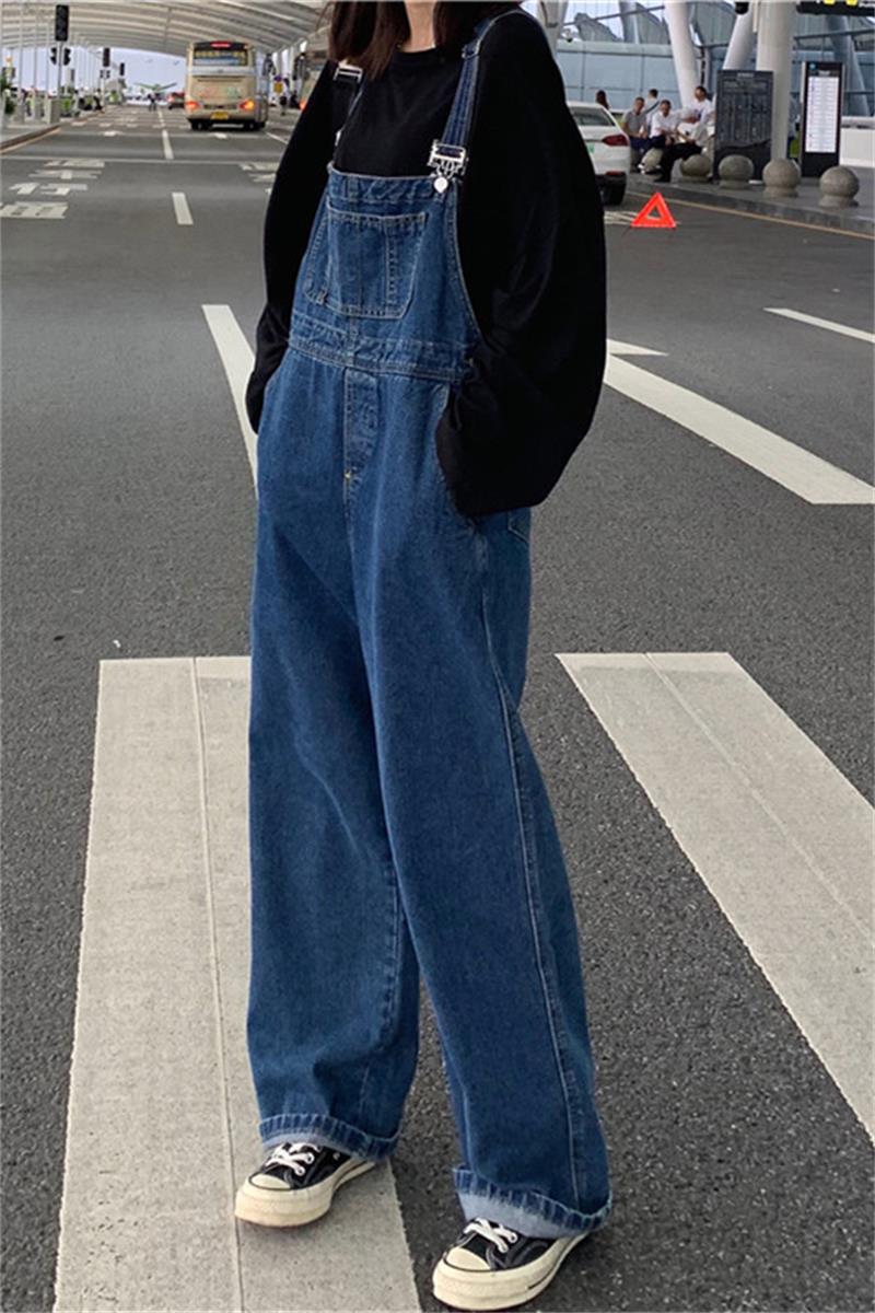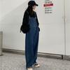 Moda Otoño 2024 Peto de mezclilla retro americano para mujer de cintura alta, corte slim, pantalones anchos hasta el suelo, mono con tirantes