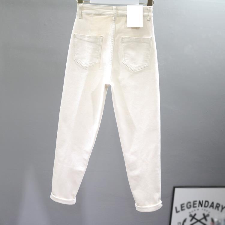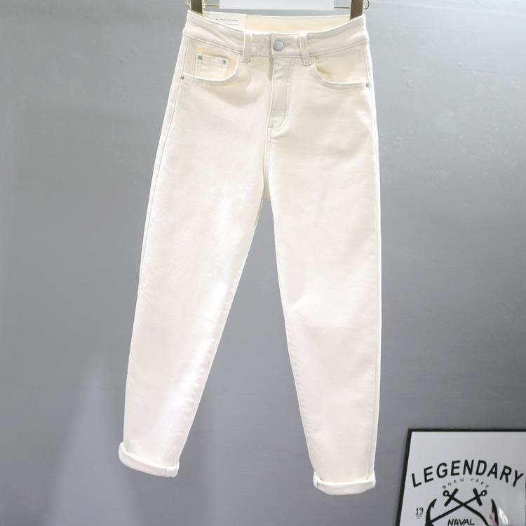 Pantalones vaqueros blancos para mujer, verano 2024, finos, de cintura alta, holgados, combinables, estilo harén, estilo papá, ajustados, color rábano