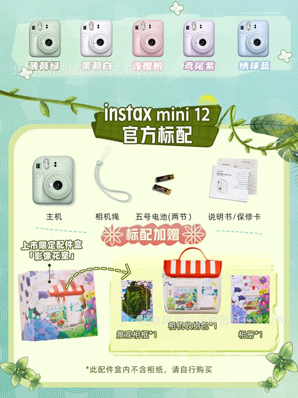 Según los informes, la apariencia de la Instax Mini 12 es similar a la de la generación anterior Instax Mini 11, que se parece más a un rectángulo que a un cuadrado, aunque tiene bordes redondeados como la generación anterior. El color del cuerpo también se ha añadido un nuevo verde menta, que es más atractivo para los jóvenes.