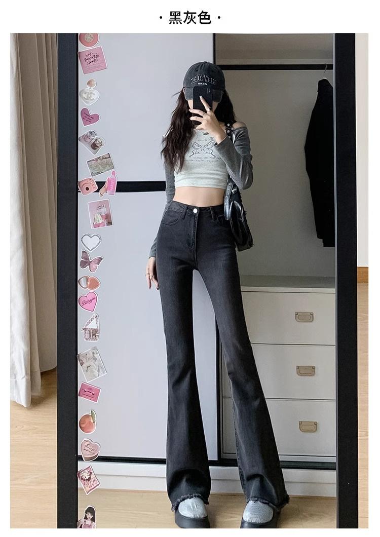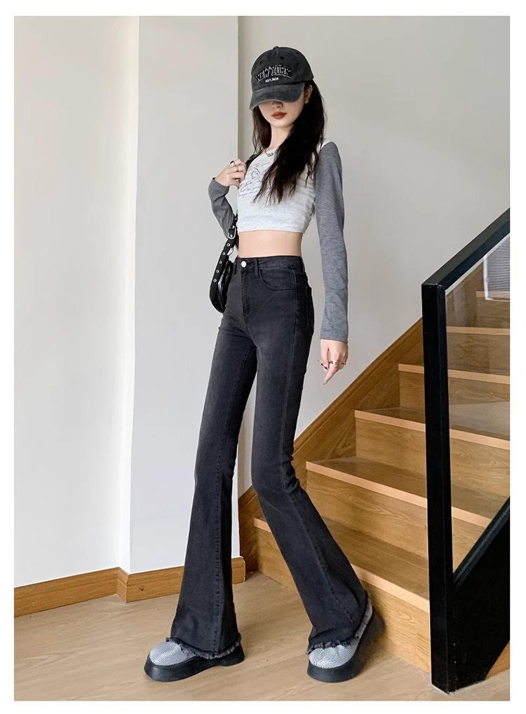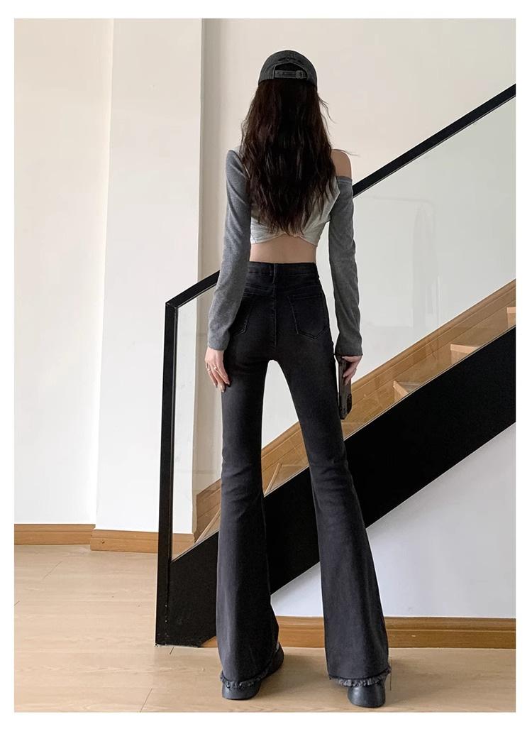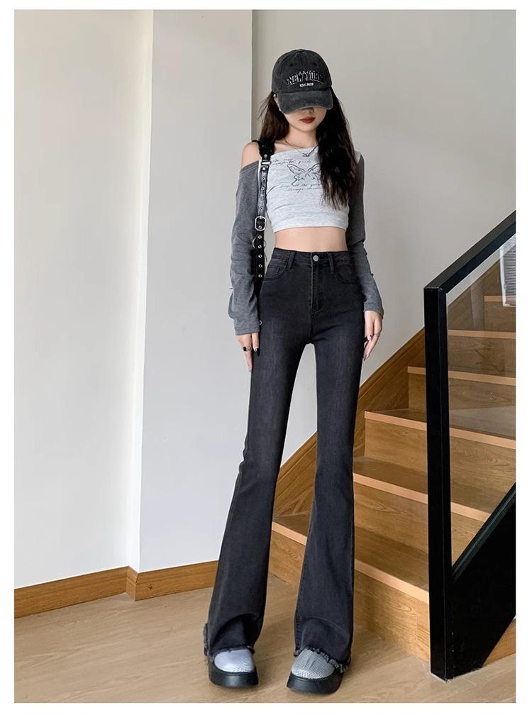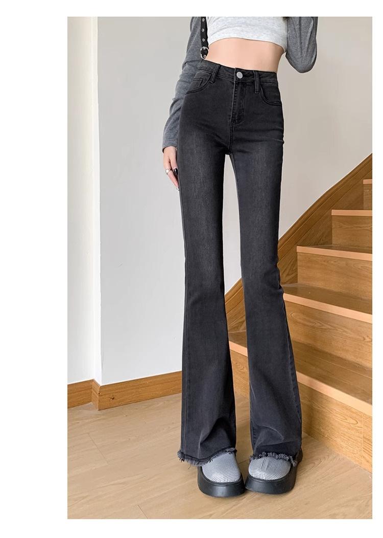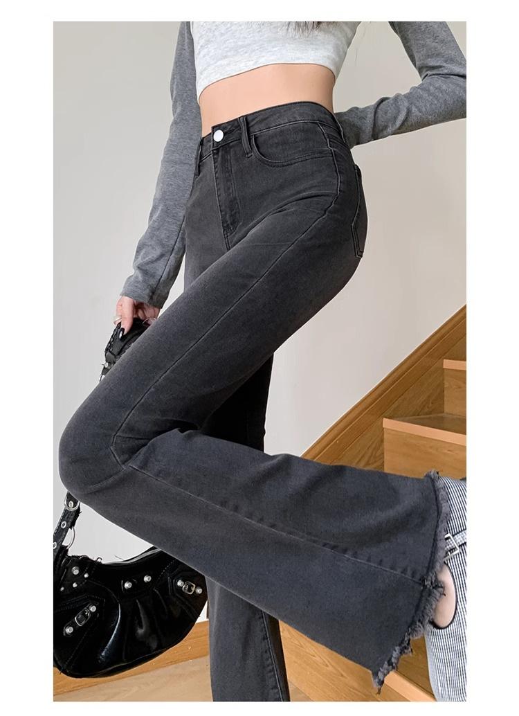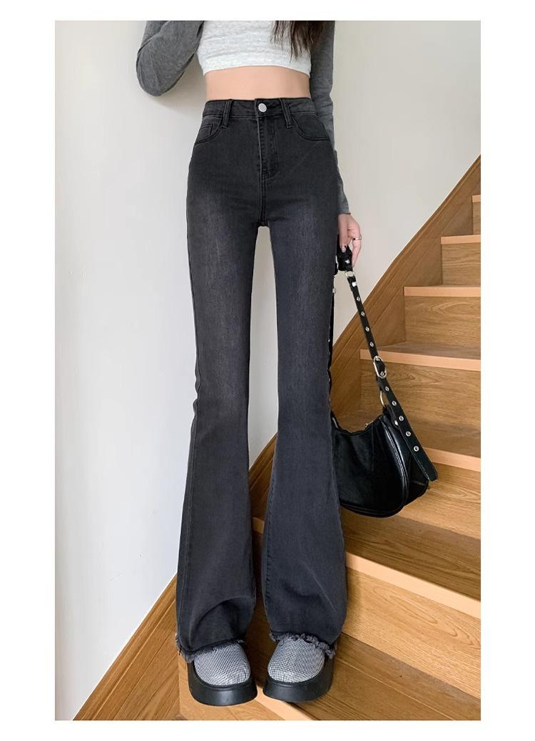 Jeans ajustados negros grises para mujer primavera y otoño nuevos retro combinables elásticos adelgazantes cintura alta acampanados herradura