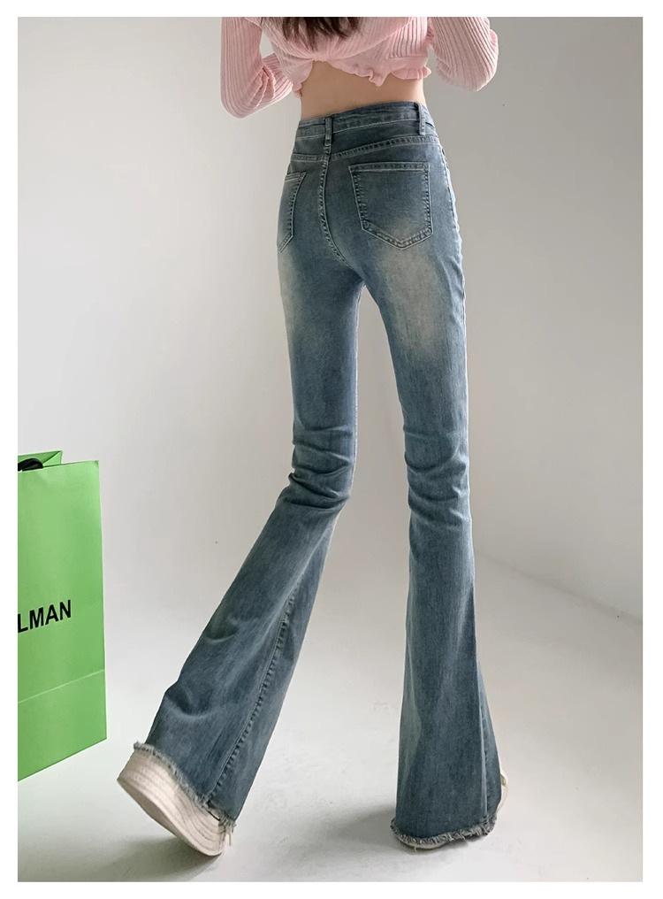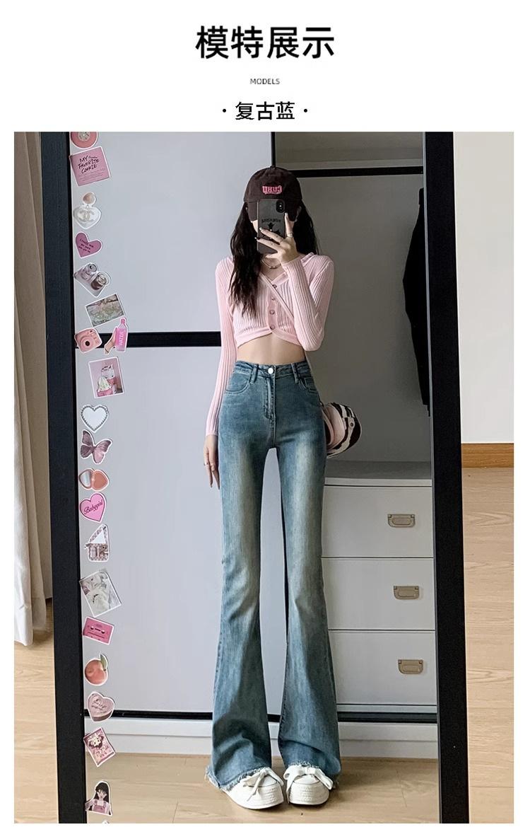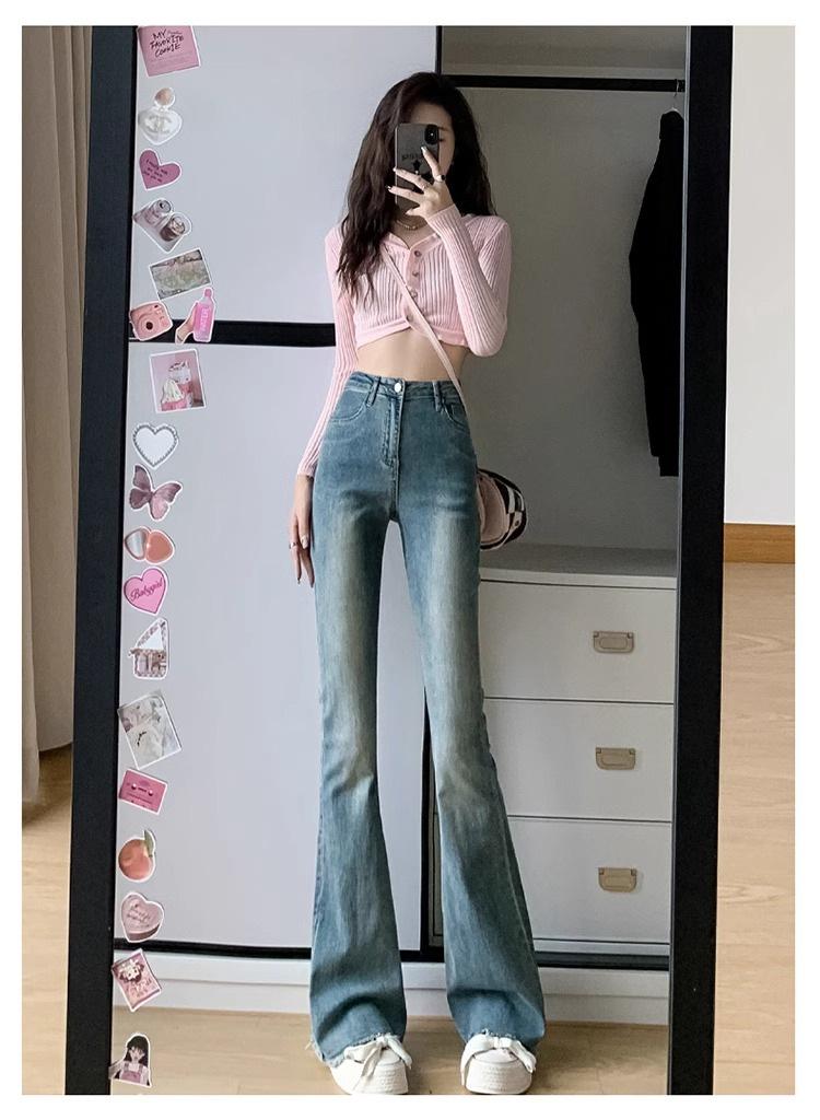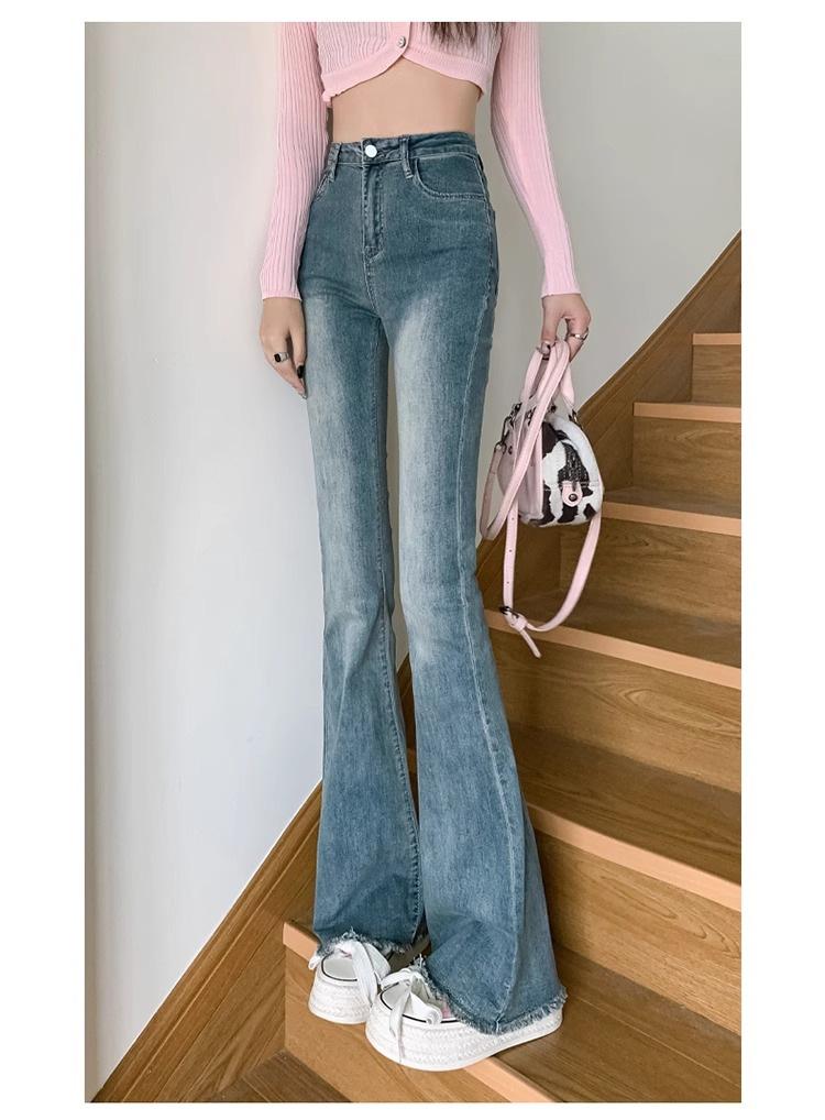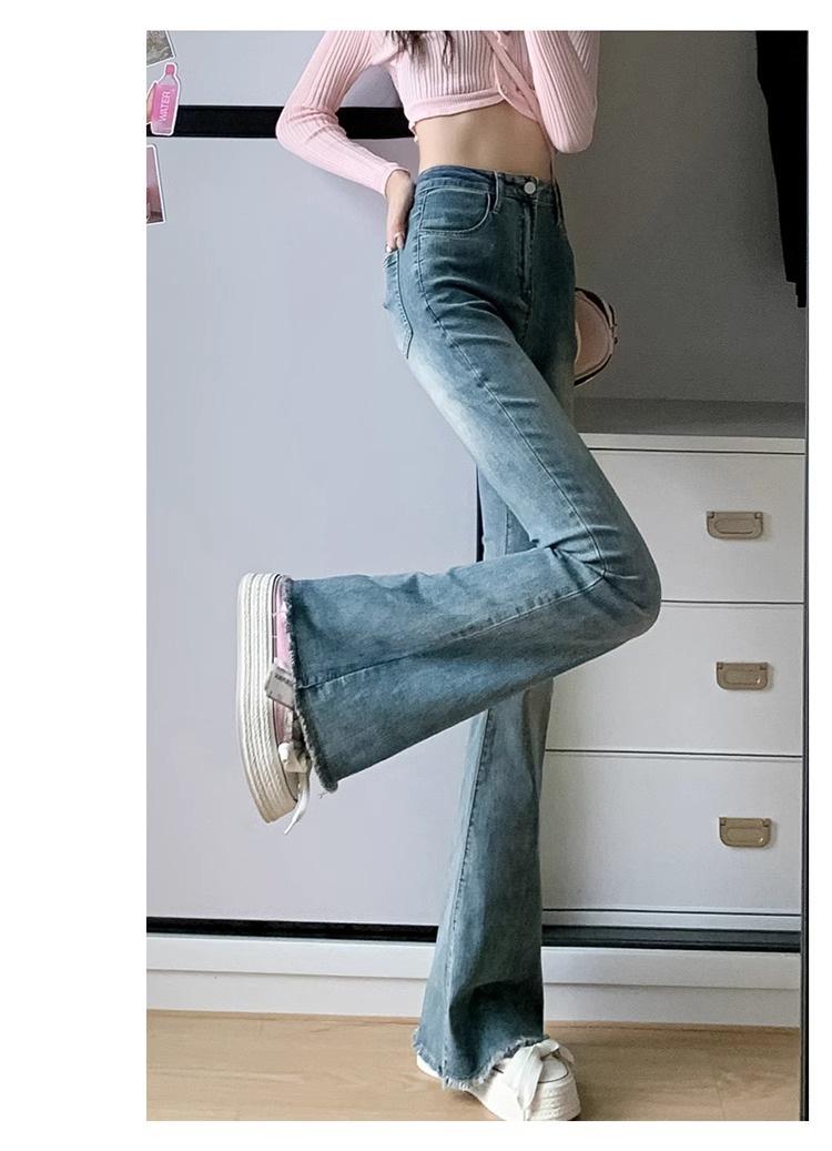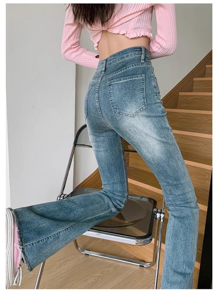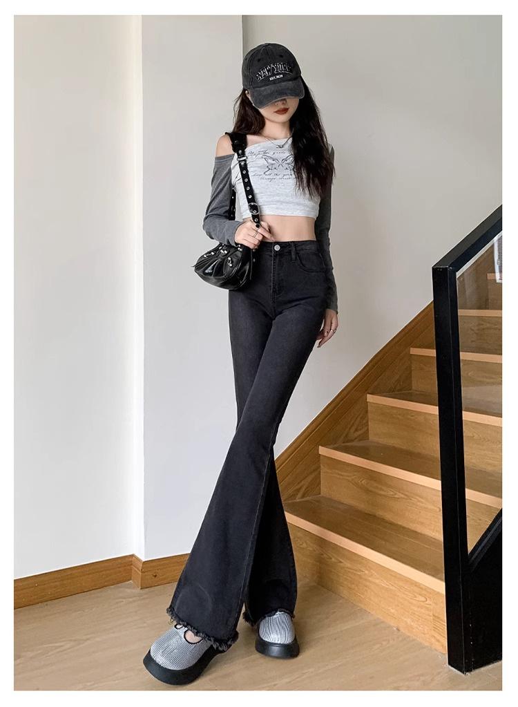 Jeans ajustados negros grises para mujer primavera y otoño nuevos retro combinables elásticos adelgazantes cintura alta acampanados herradura