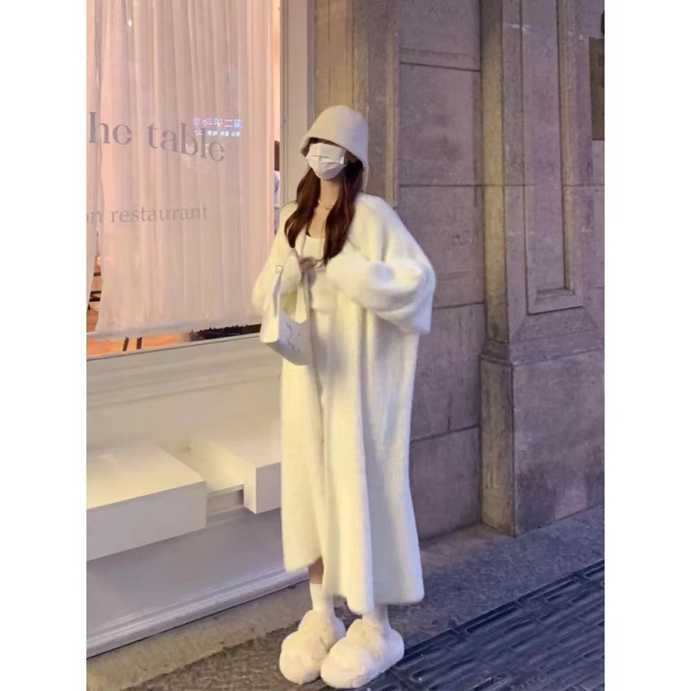 Suéter de punto suave y encerado para mujer, cárdigan de otoño e invierno, nuevo, informal, holgado, adelgazante, estilo perezoso, abrigo largo de lana de visón sintético