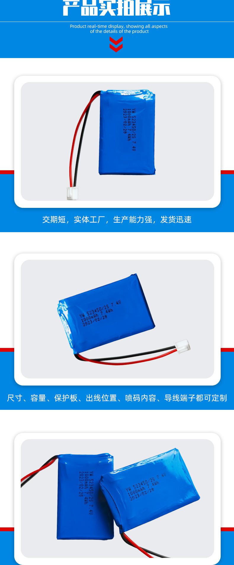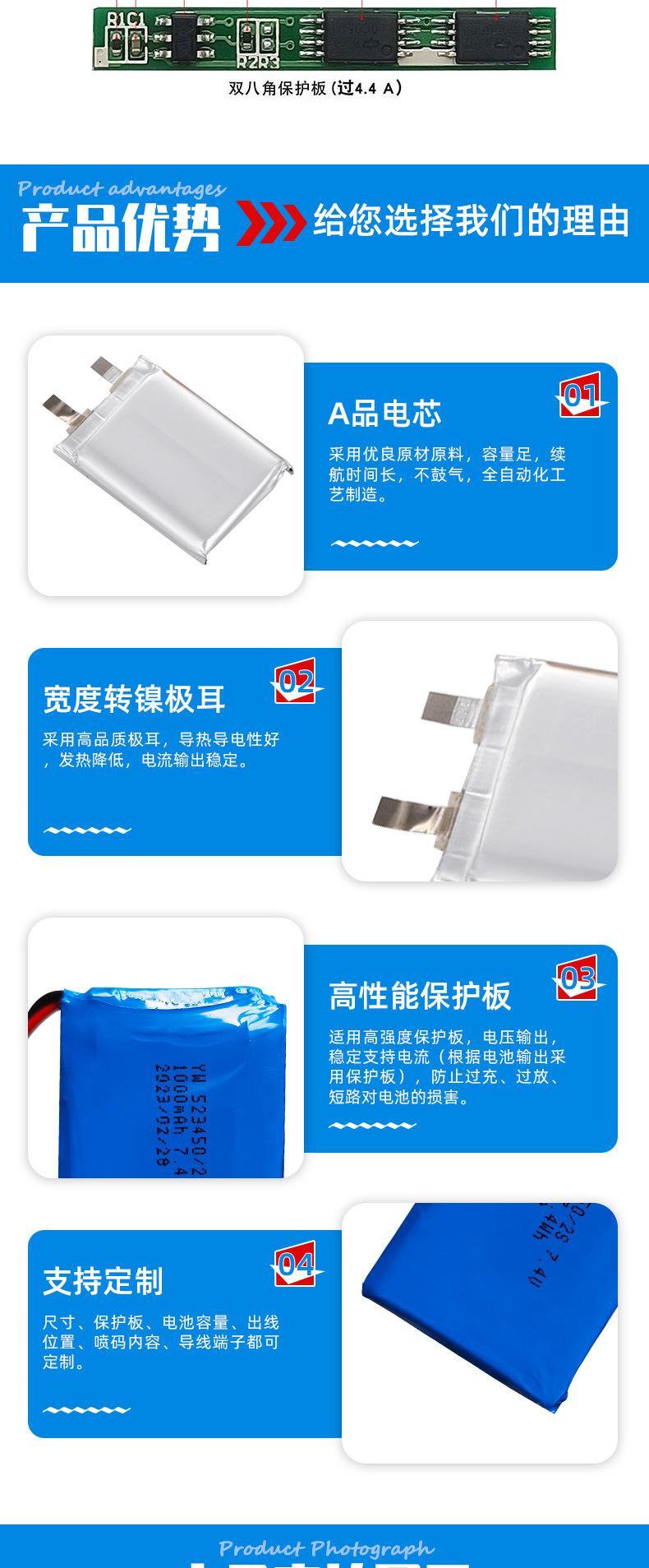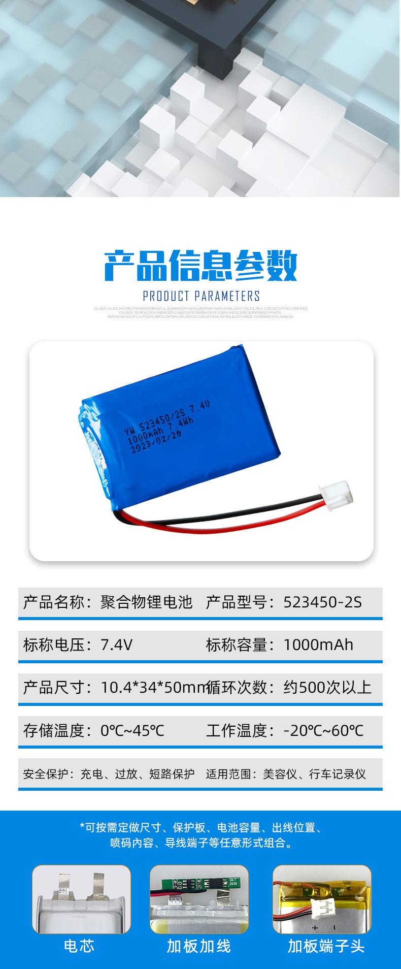 Suministro directo de fábrica 523450 instrumento de belleza grabadora de conducción batería de polímero de litio batería de gran capacidad al por mayor