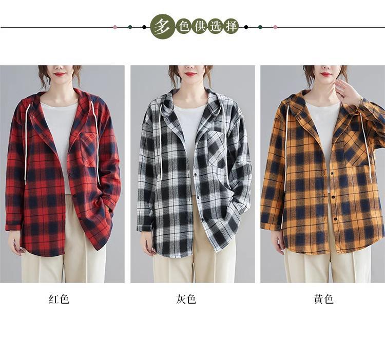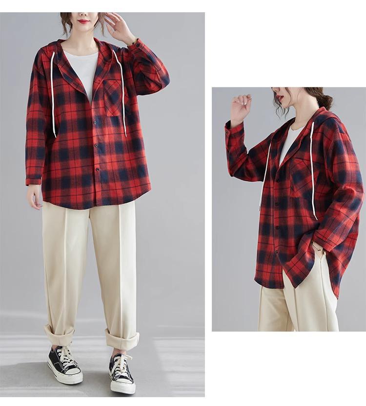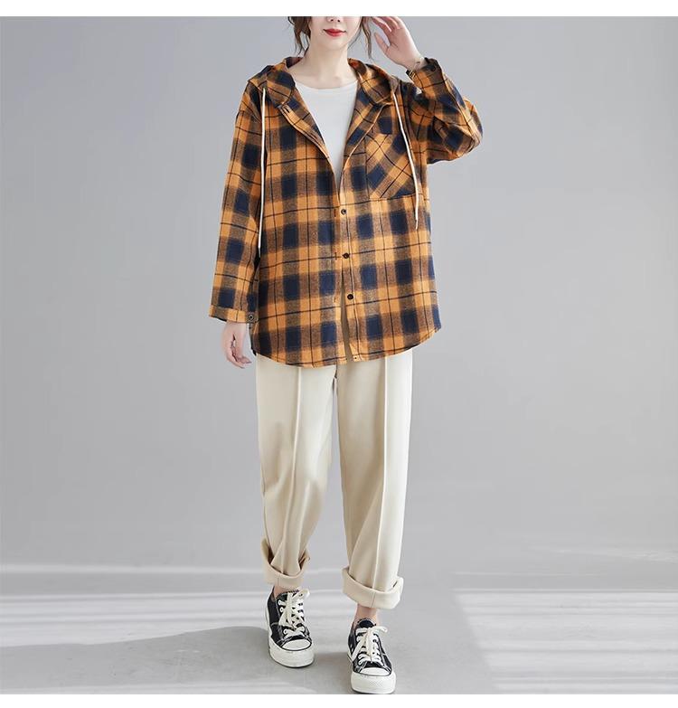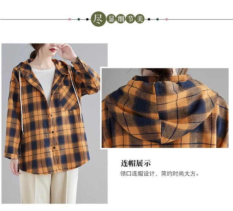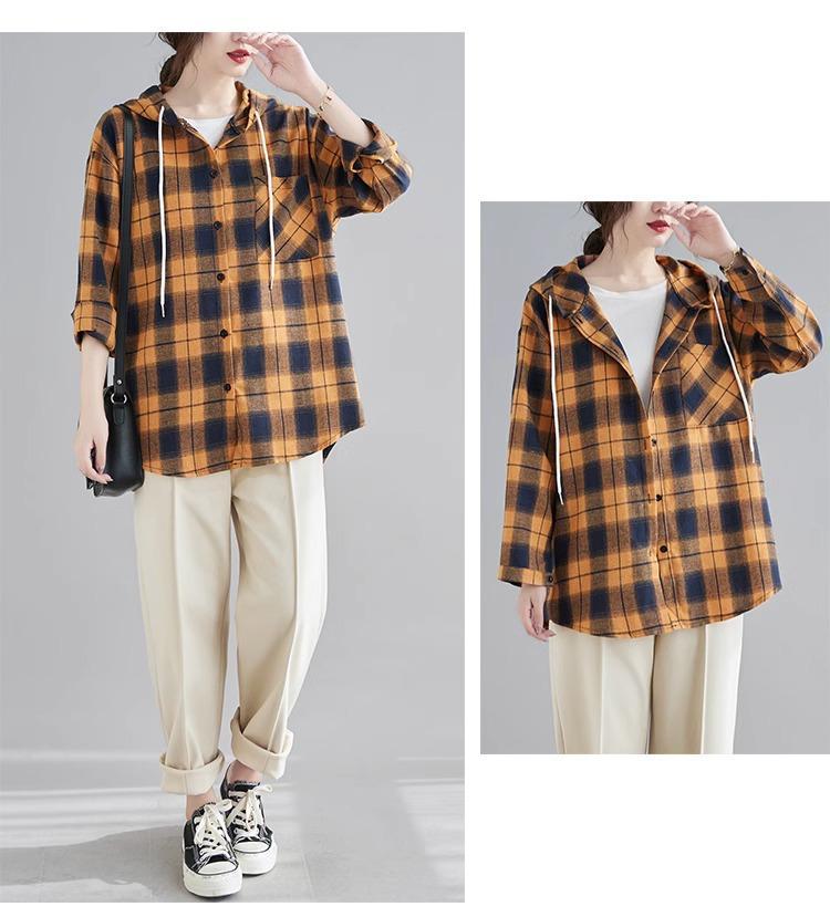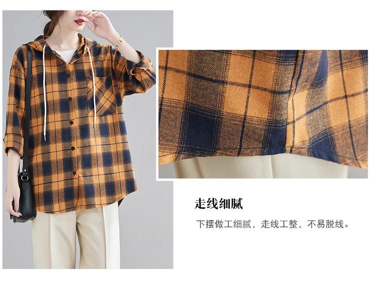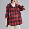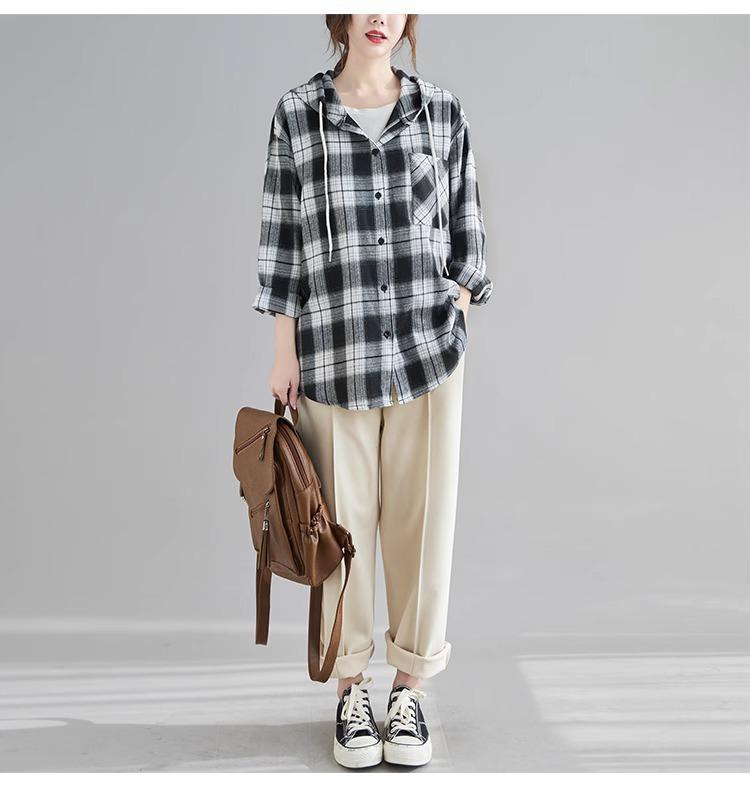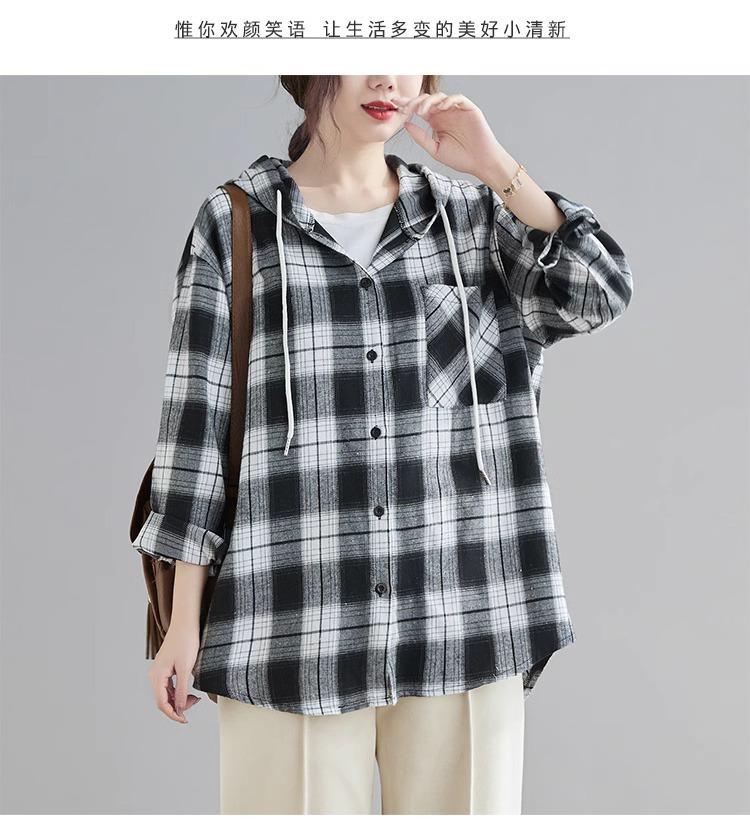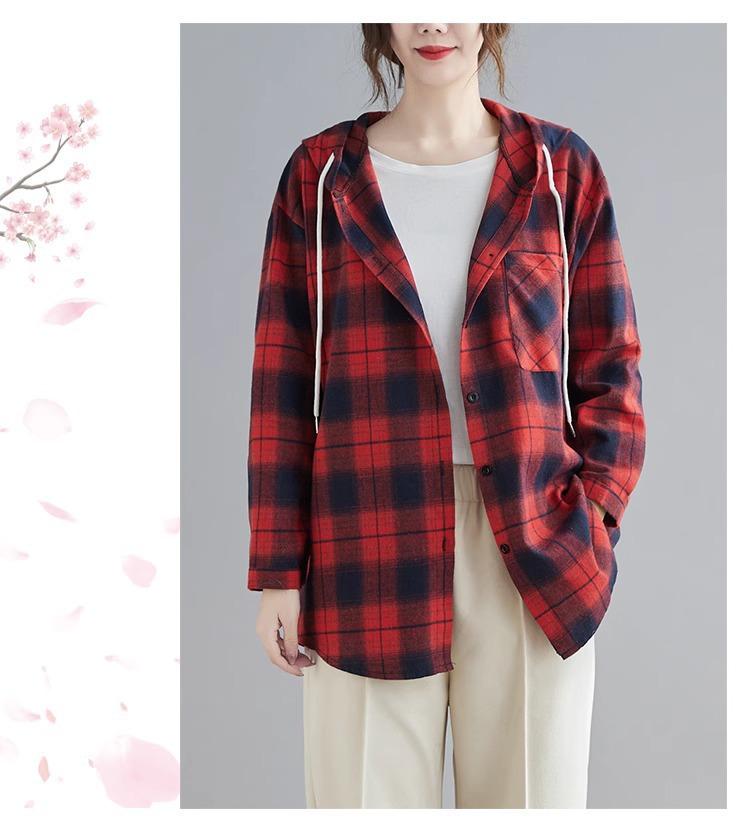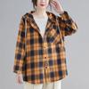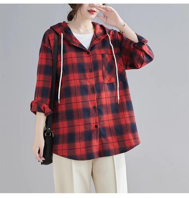 Camisa a cuadros grande para mujer, primavera y otoño, nueva chaqueta tipo cárdigan con capucha, camisa holgada informal de manga larga, top vintage