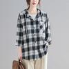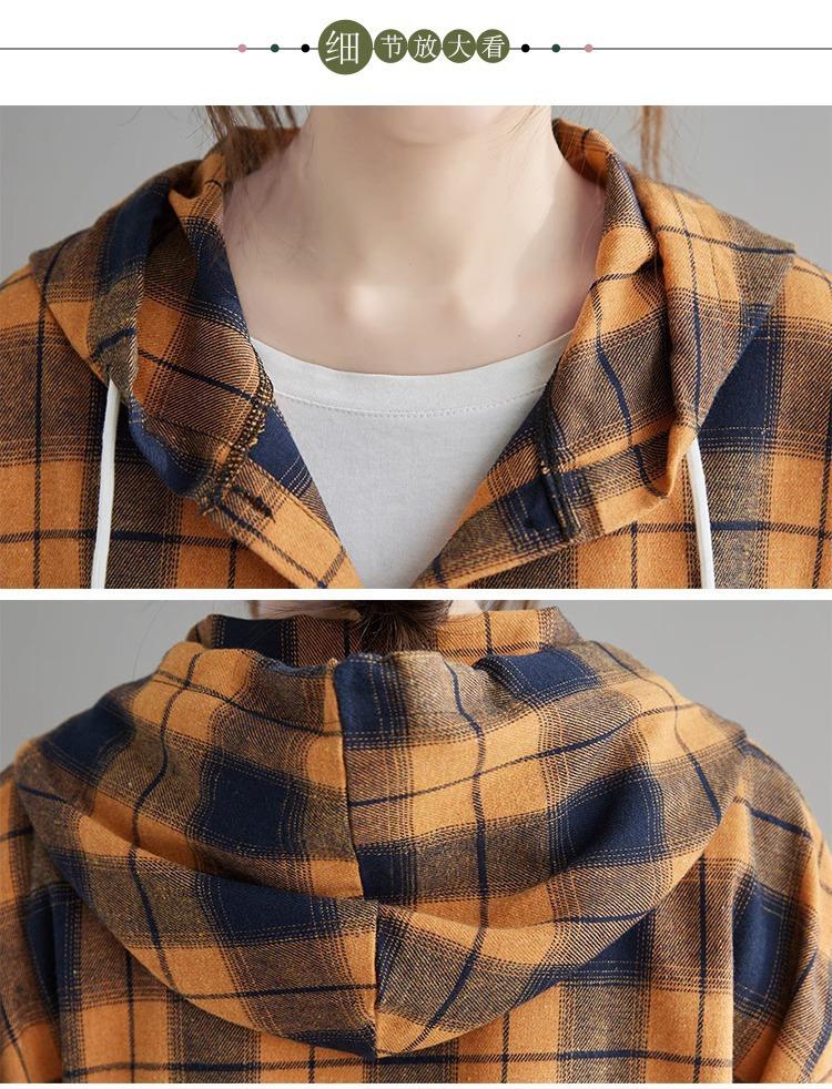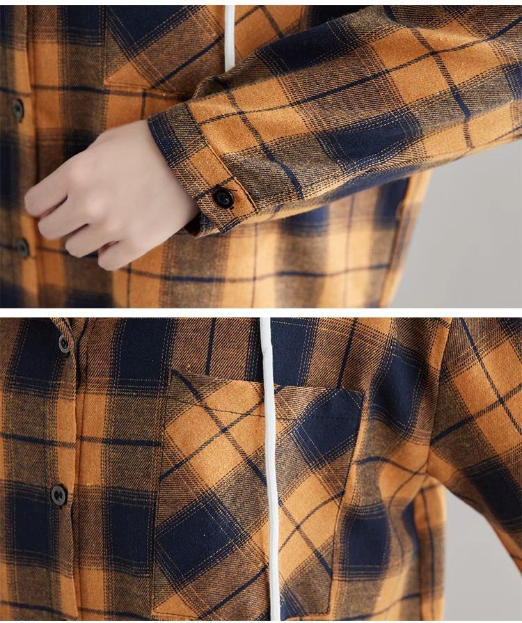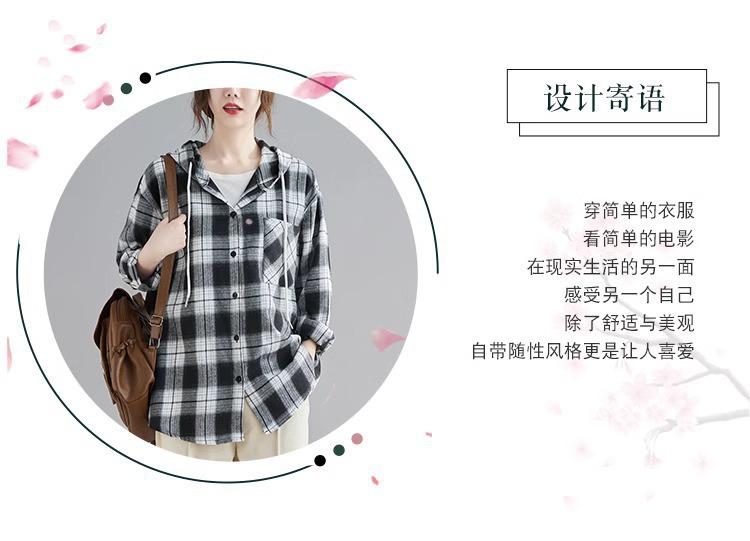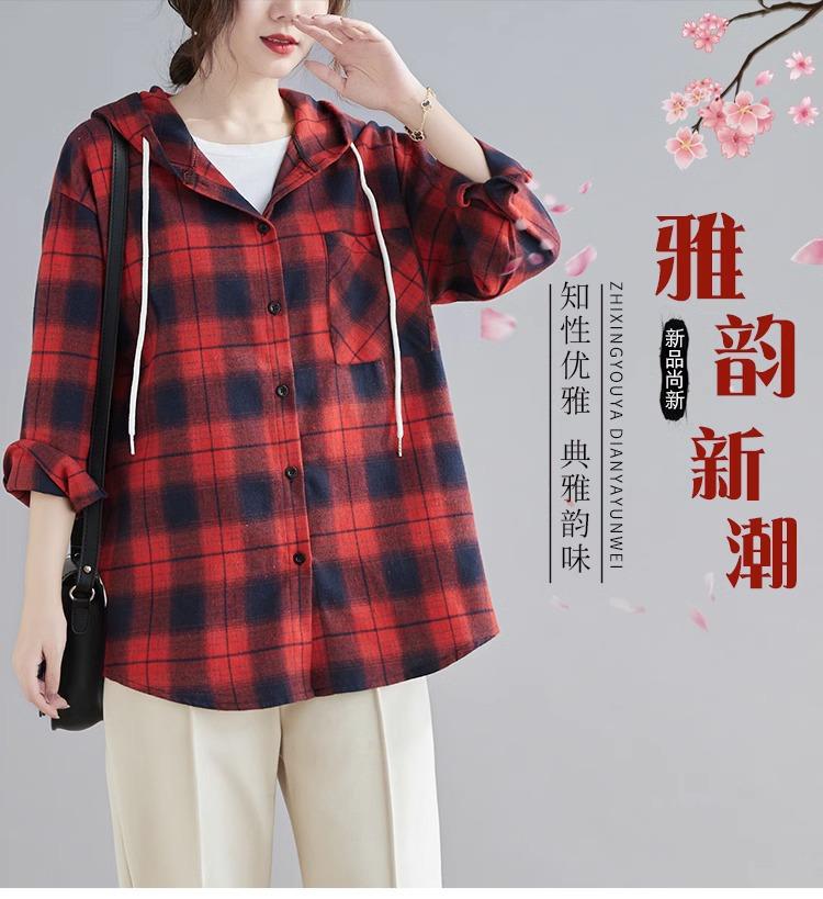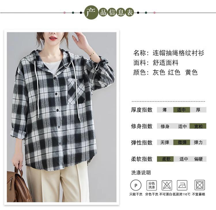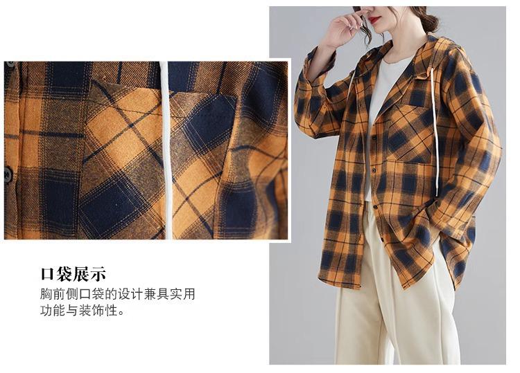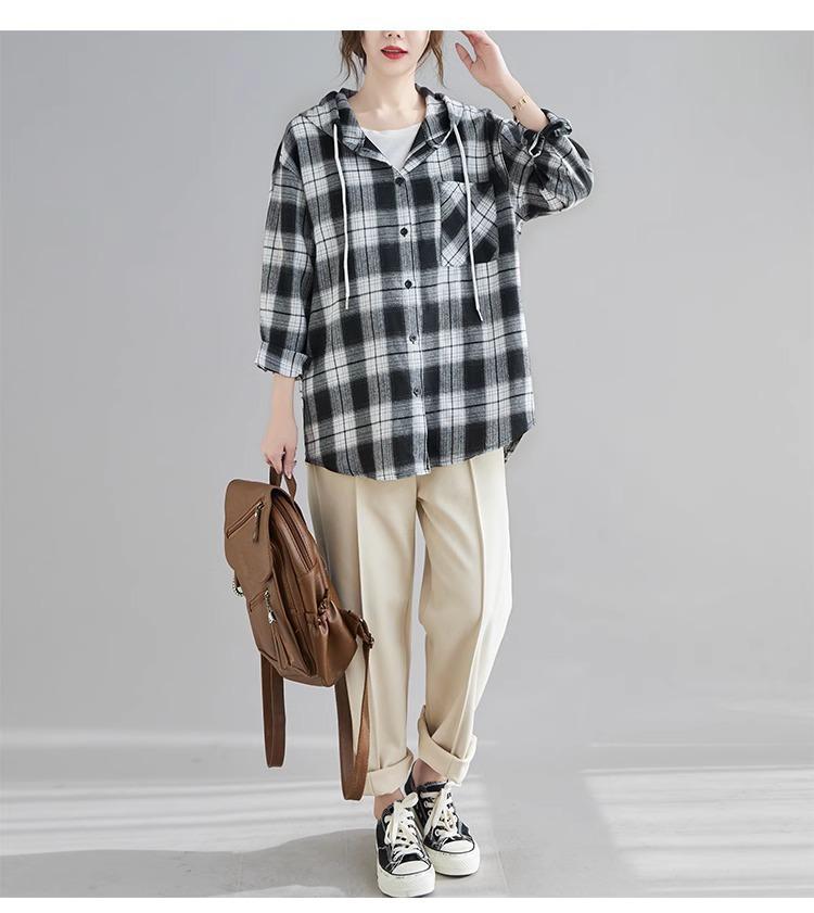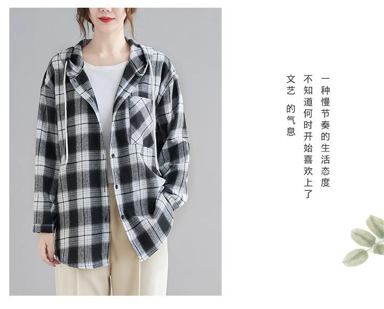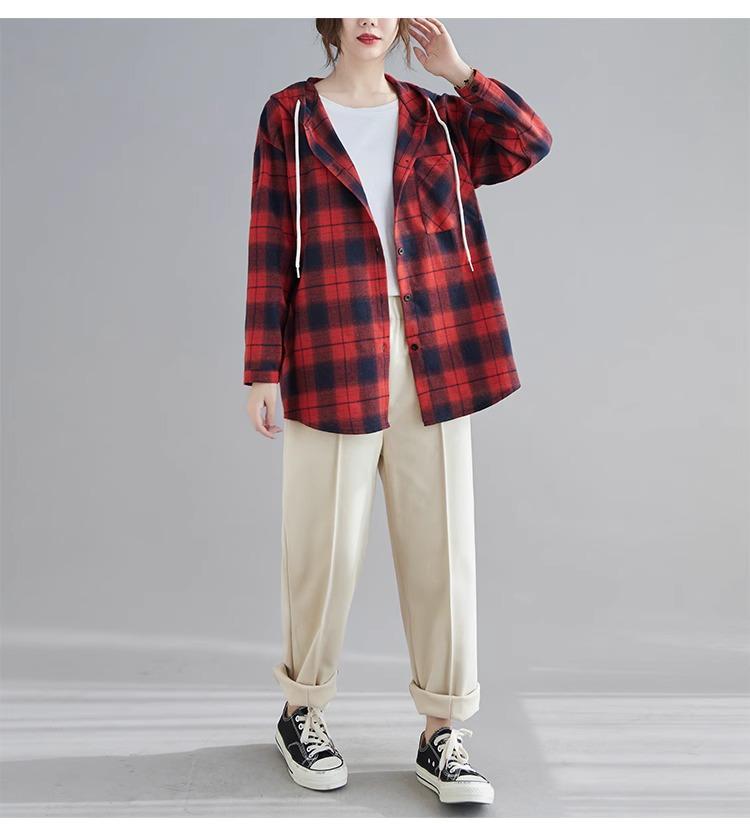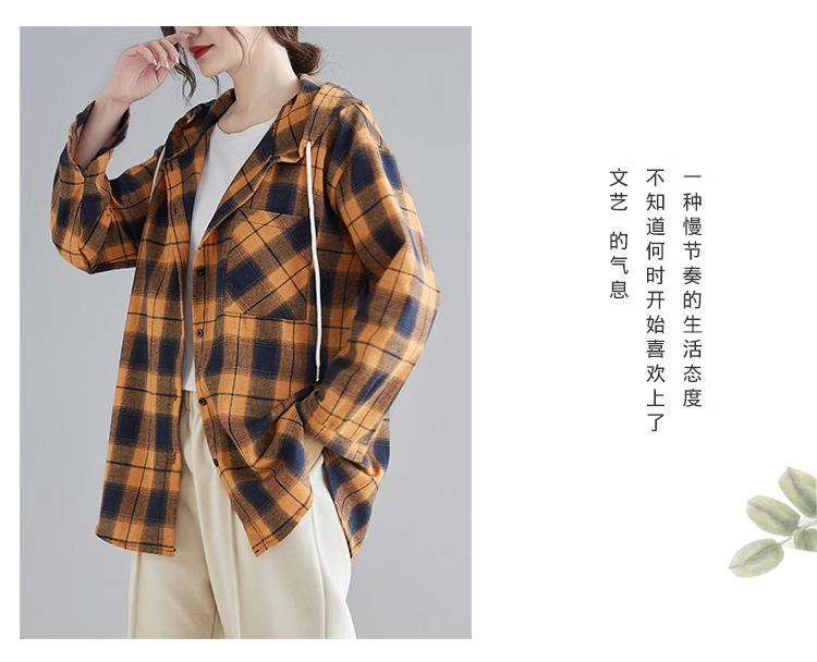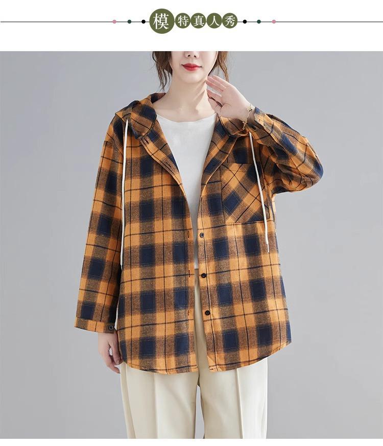 Camisa a cuadros grande para mujer, primavera y otoño, nueva chaqueta tipo cárdigan con capucha, camisa holgada informal de manga larga, top vintage