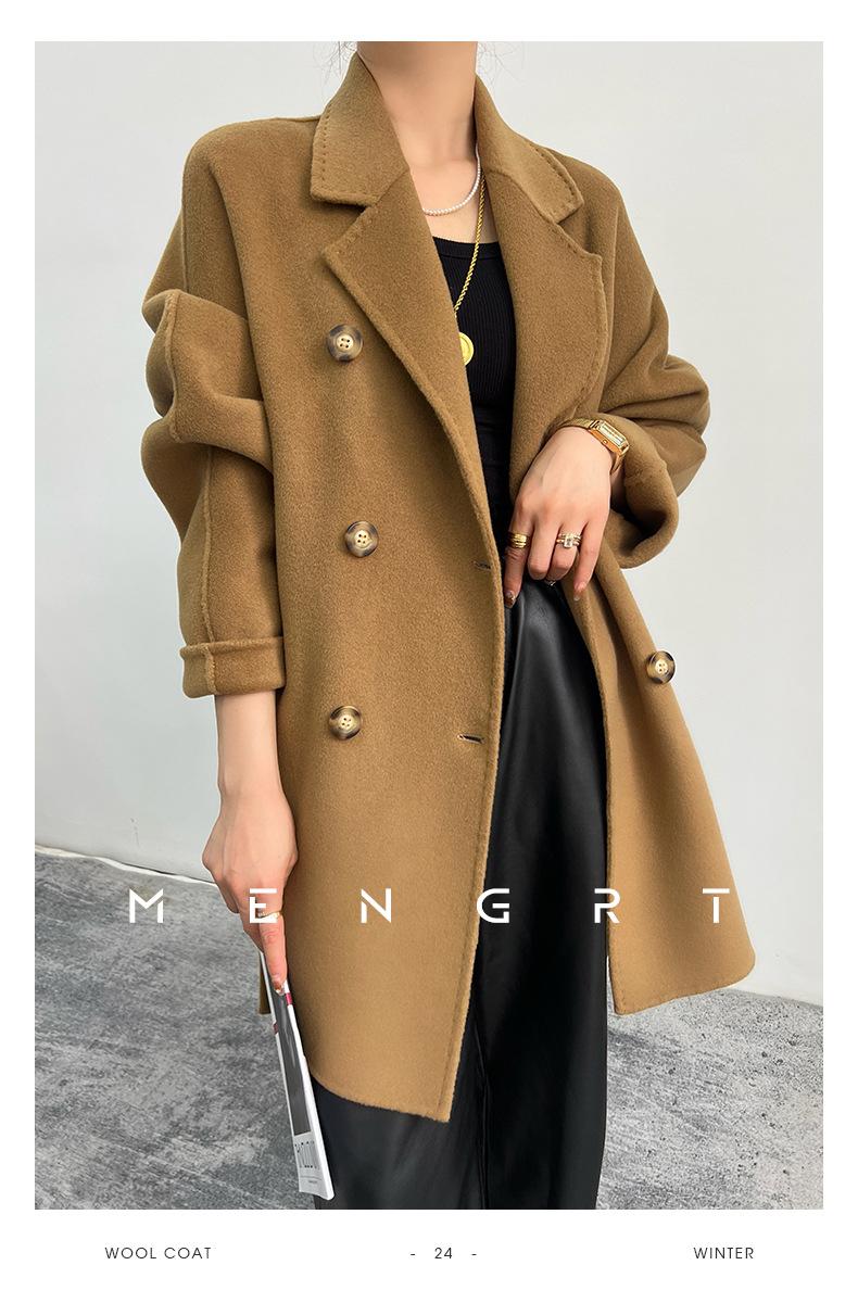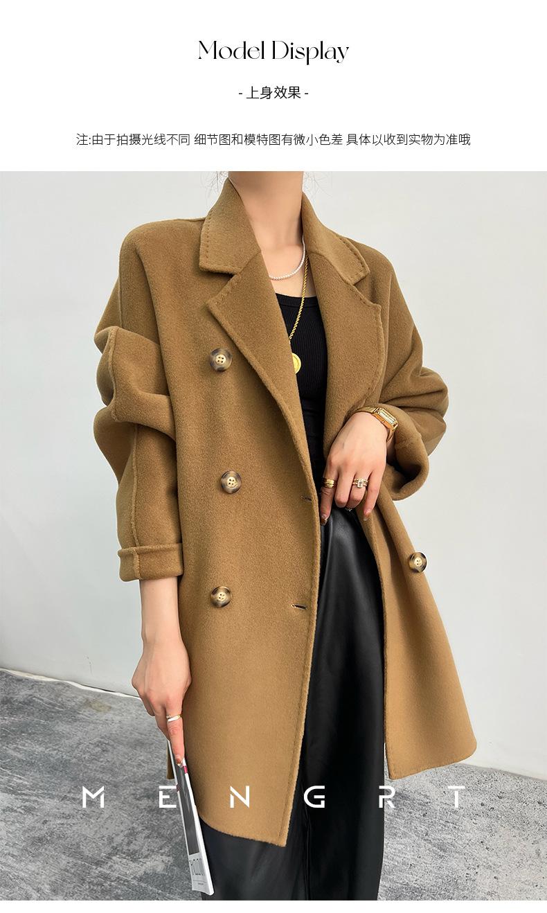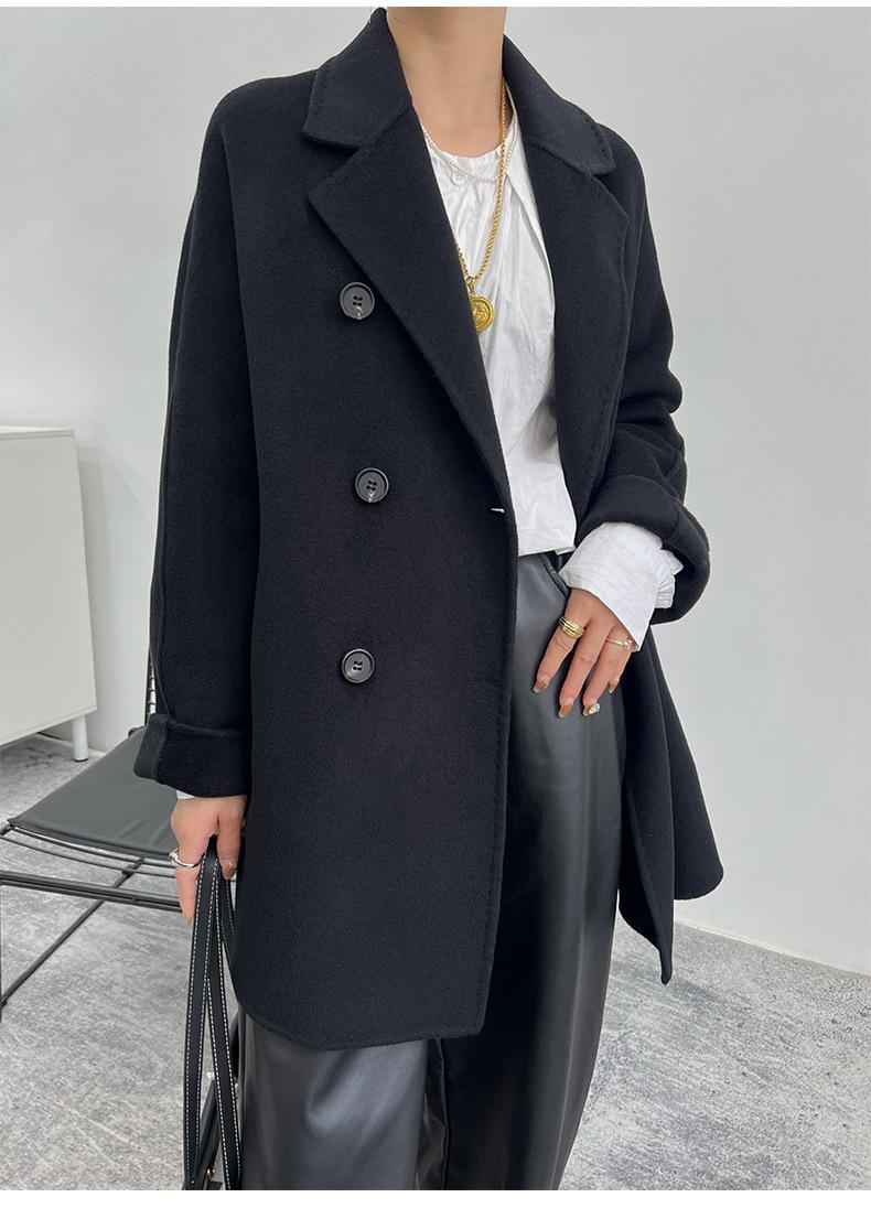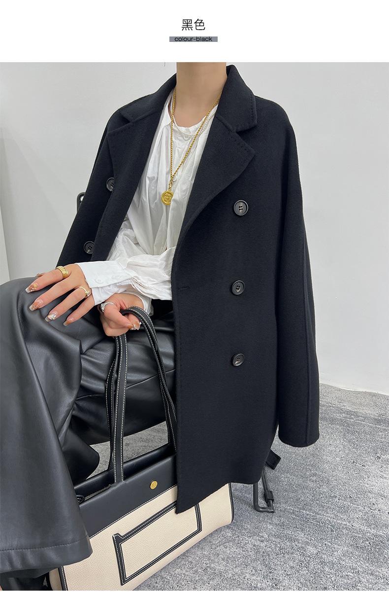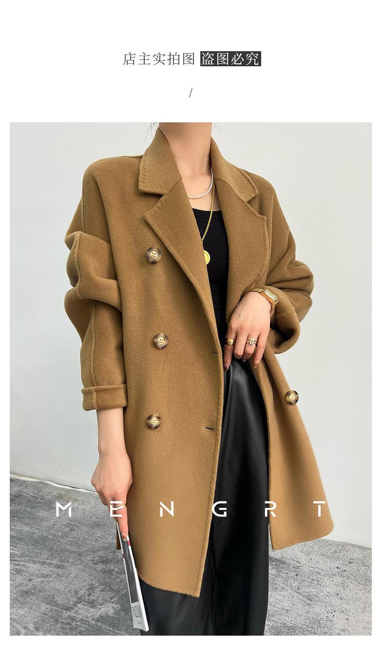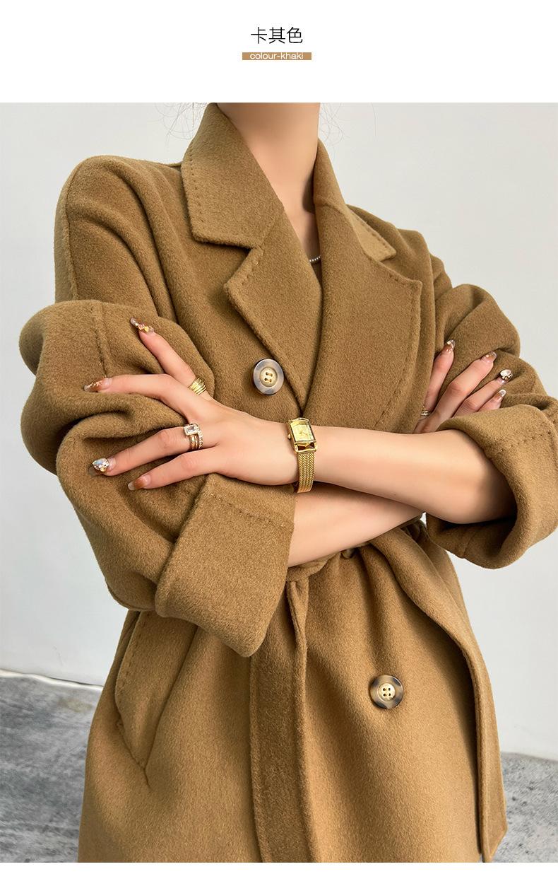 Abrigo de lana de doble vista de cachemira de largo medio con cuello de traje exterior cruzado para mujer, grueso y elegante para otoño e invierno.