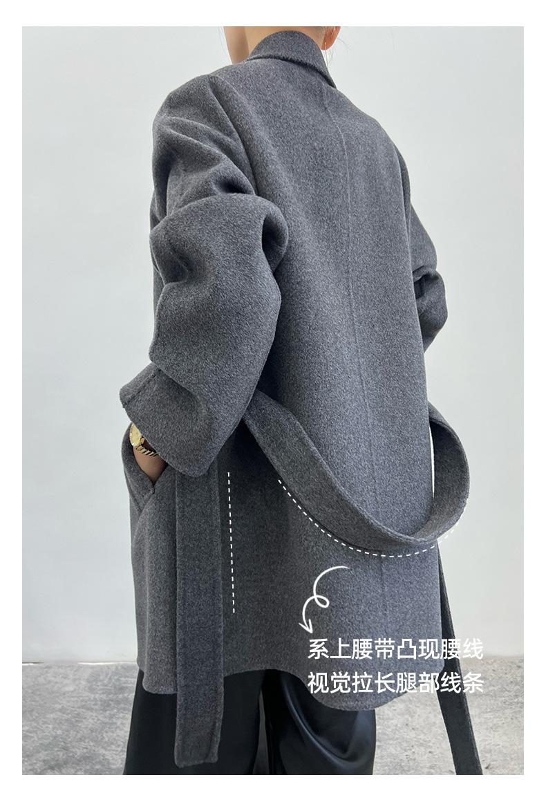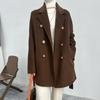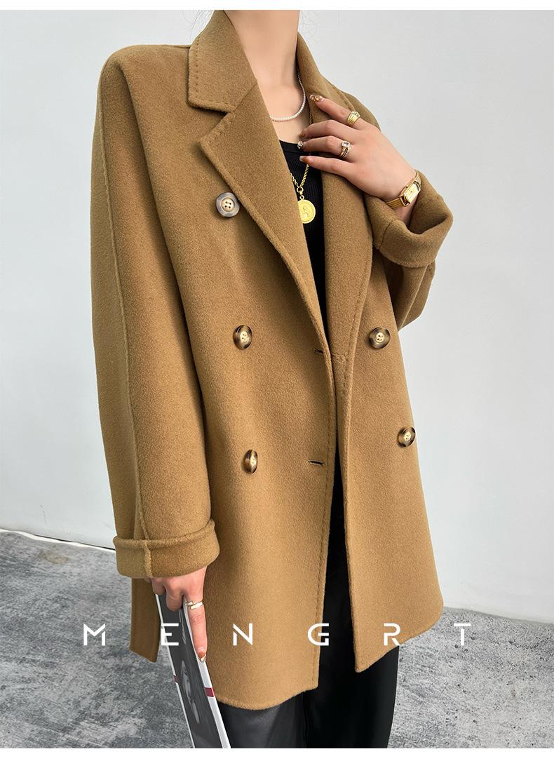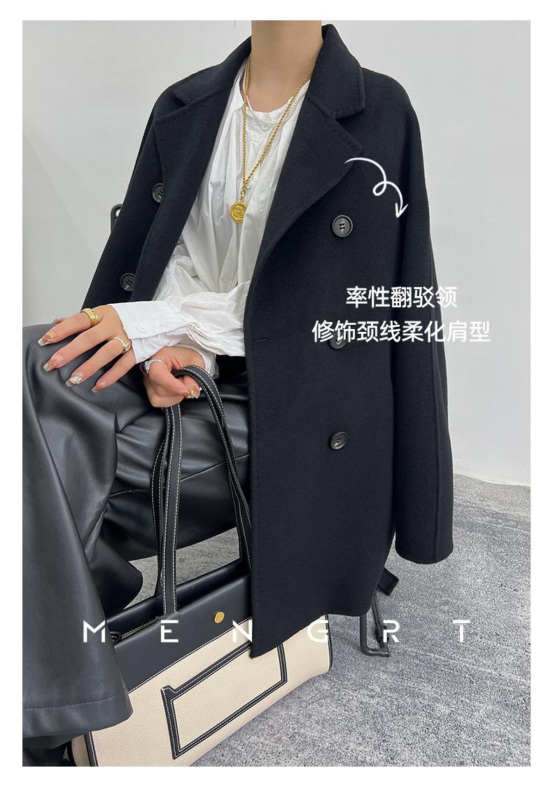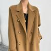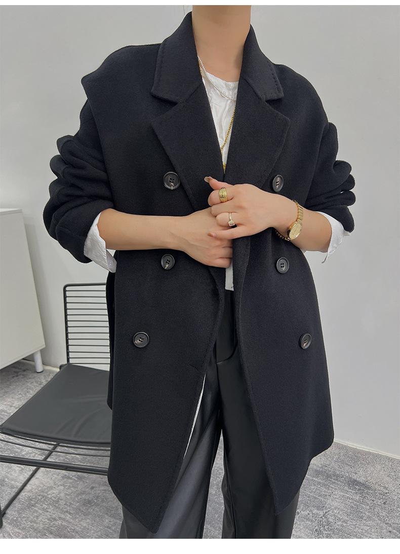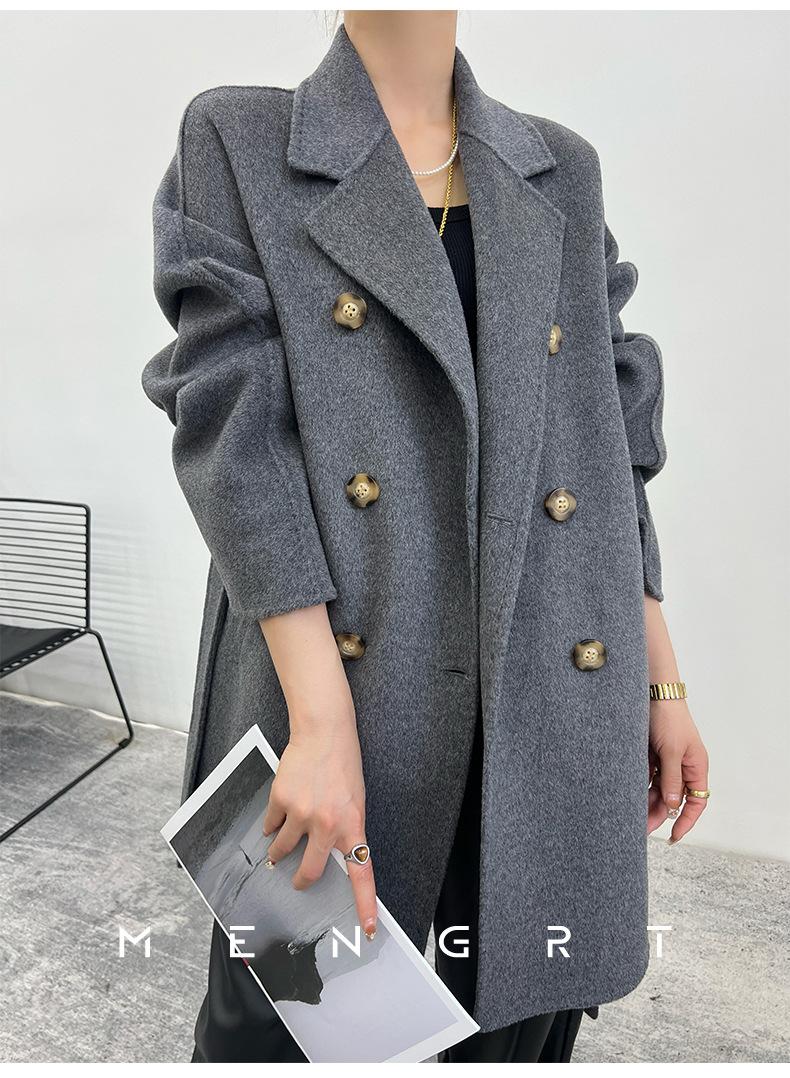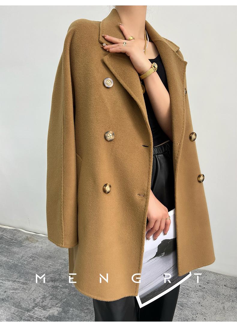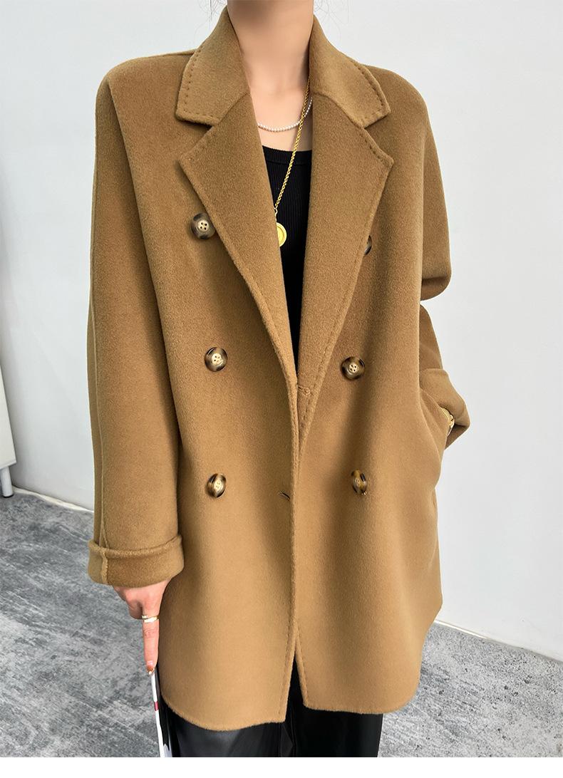 Abrigo de lana de doble vista de cachemira de largo medio con cuello de traje exterior cruzado para mujer, grueso y elegante para otoño e invierno.