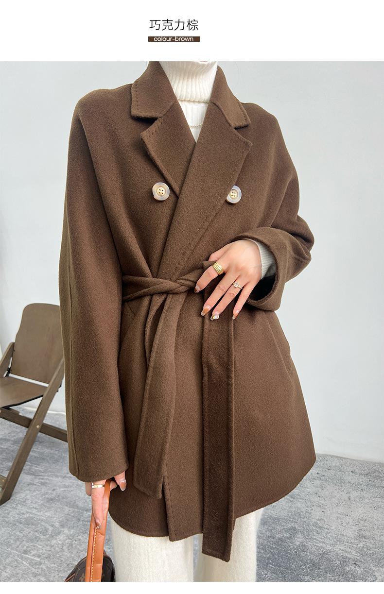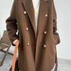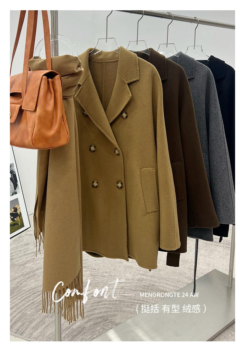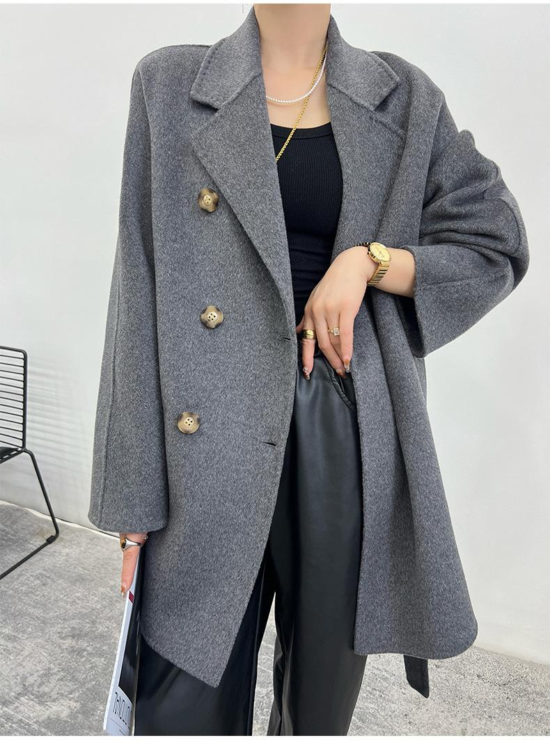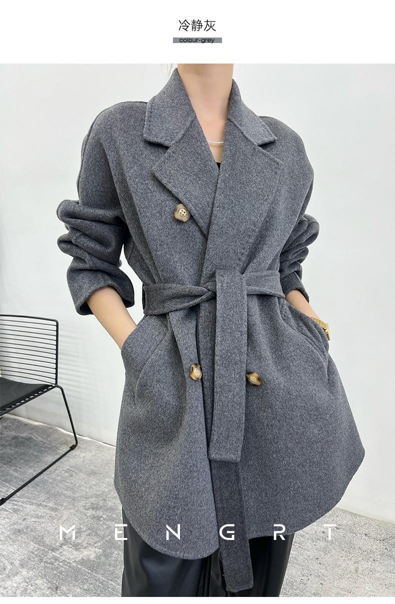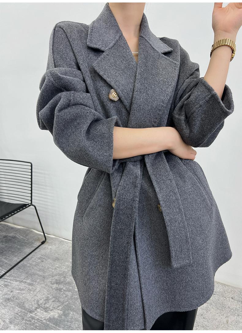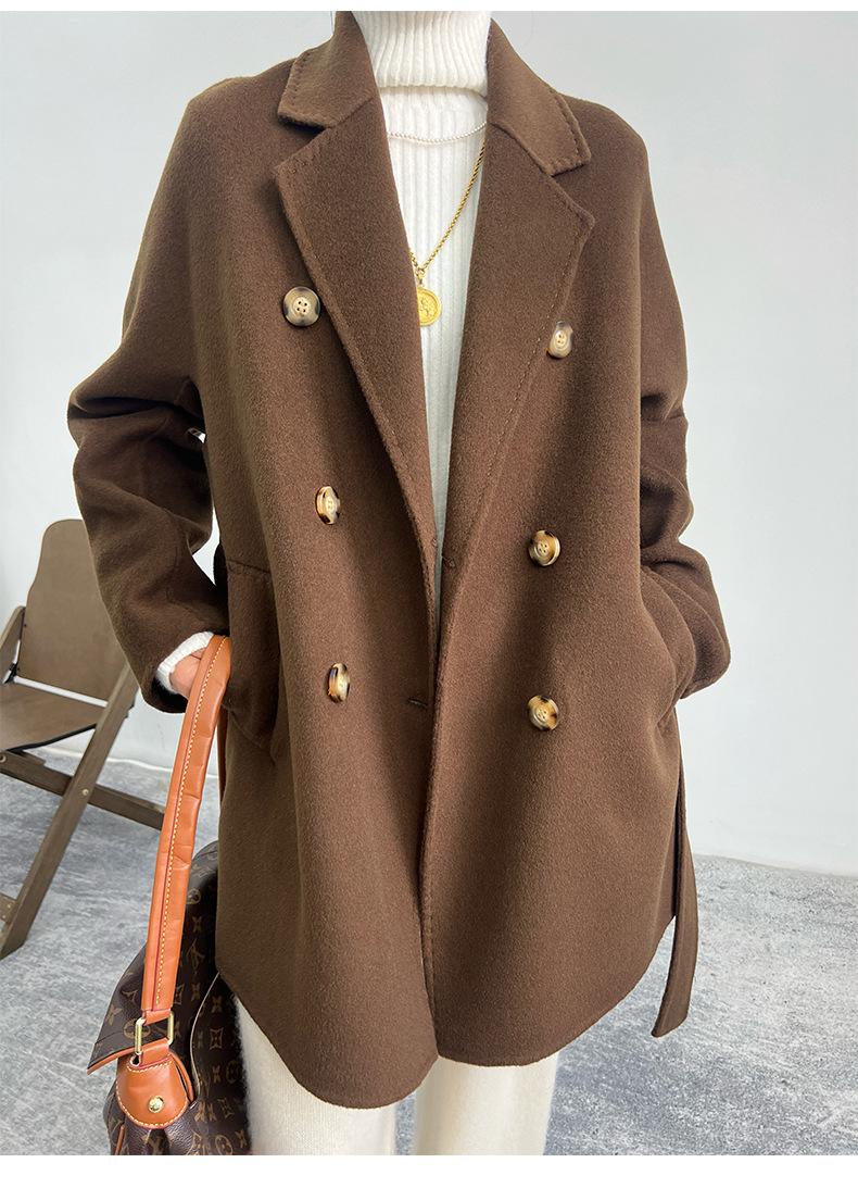 Abrigo de lana de doble vista de cachemira de largo medio con cuello de traje exterior cruzado para mujer, grueso y elegante para otoño e invierno.