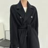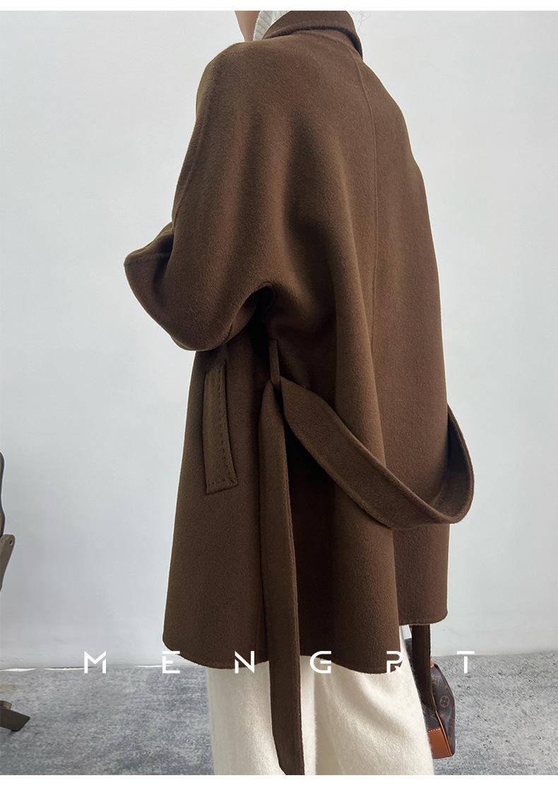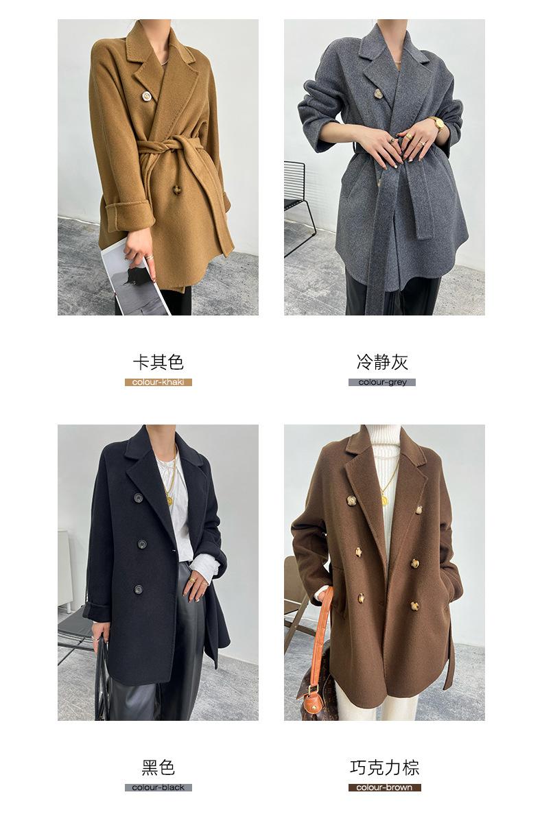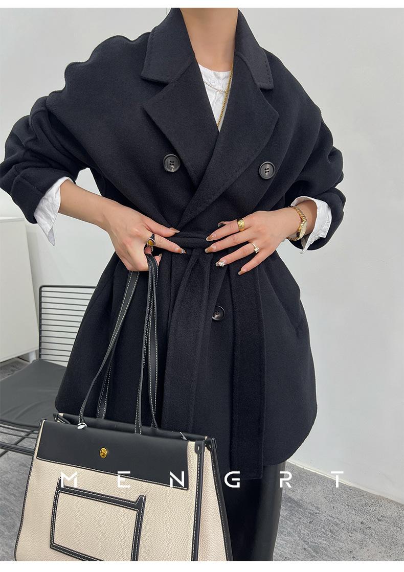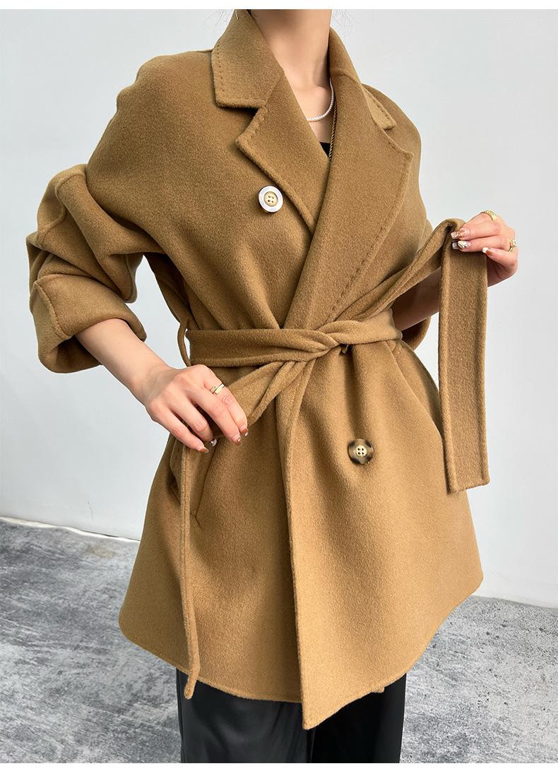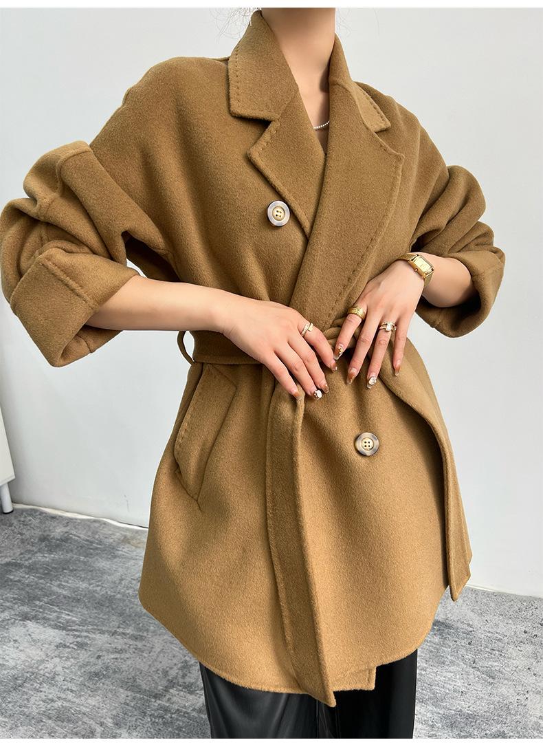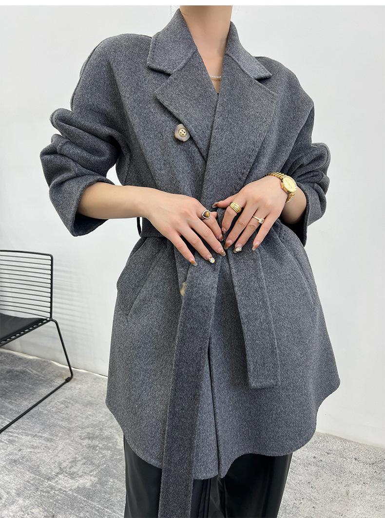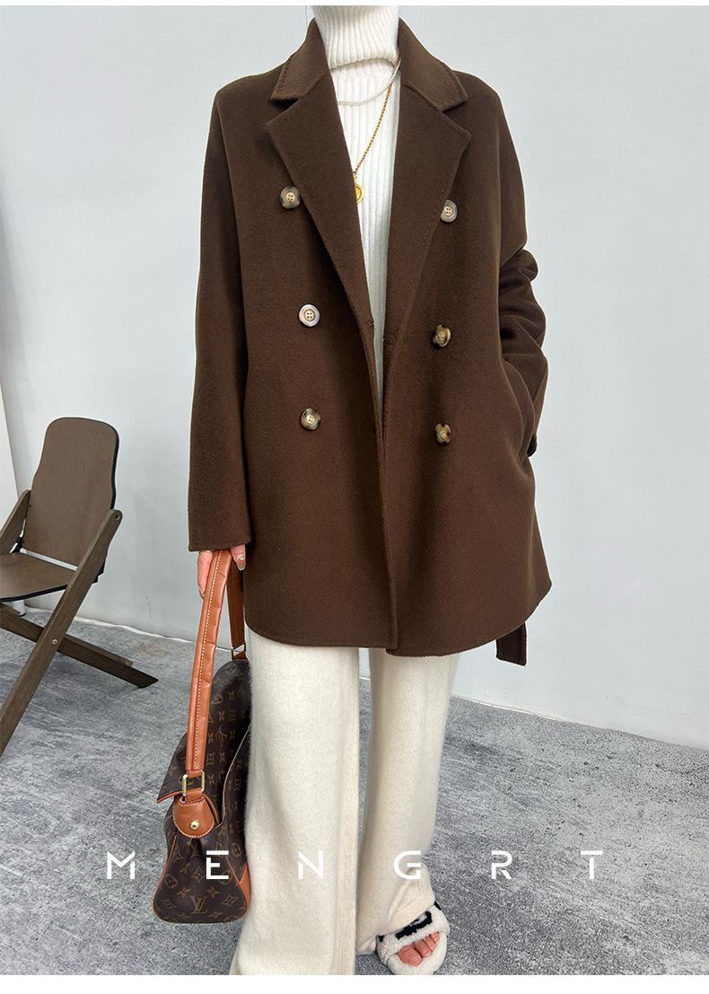 Abrigo de lana de doble vista de cachemira de largo medio con cuello de traje exterior cruzado para mujer, grueso y elegante para otoño e invierno.