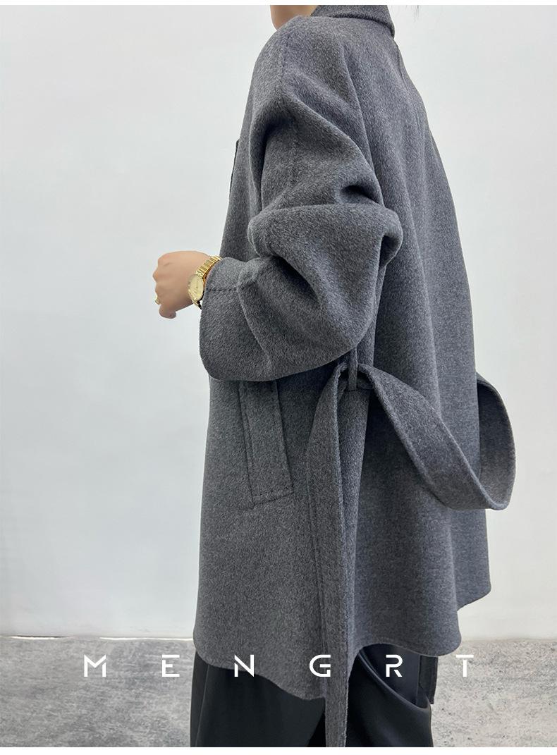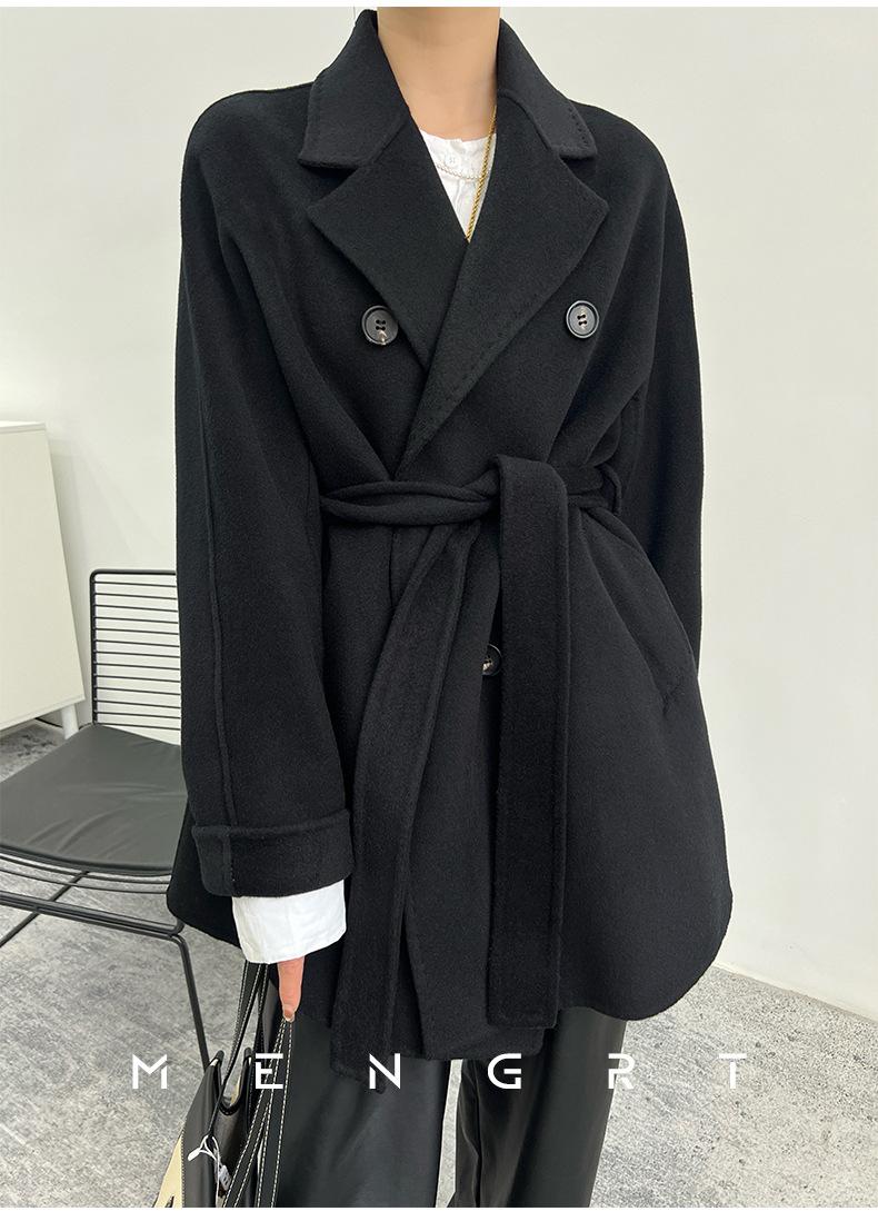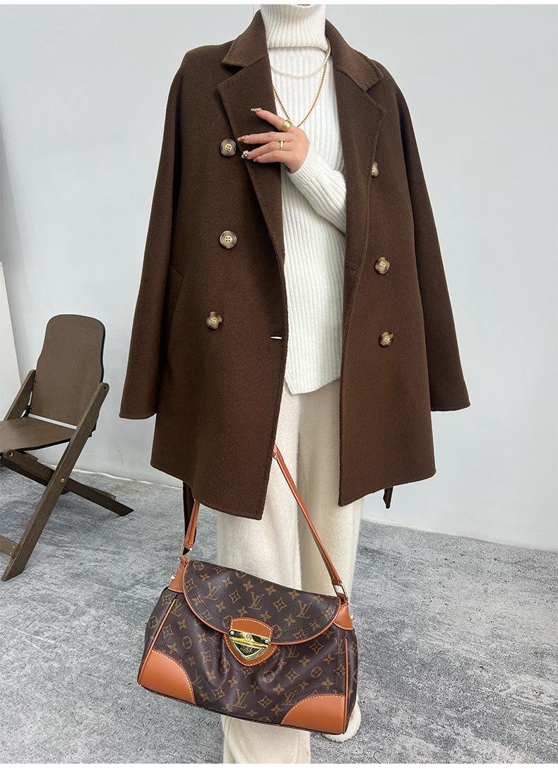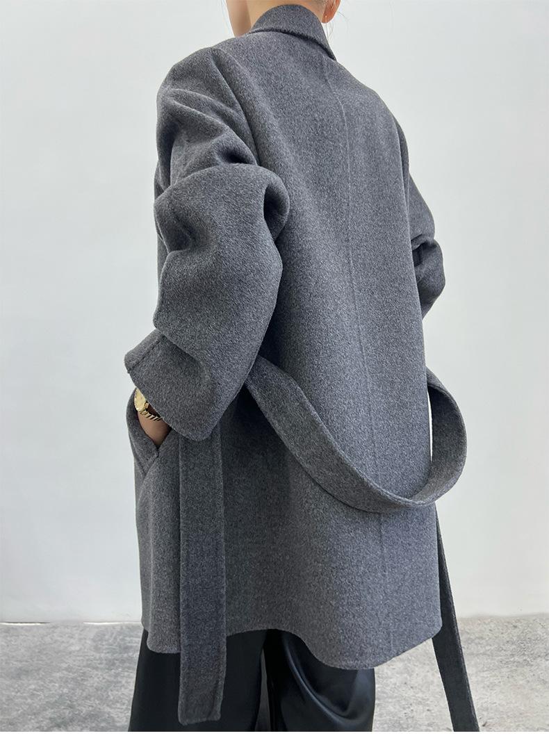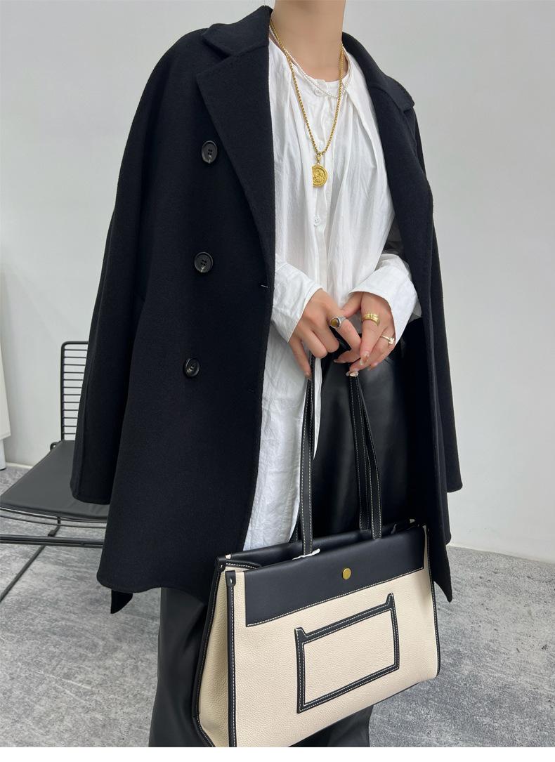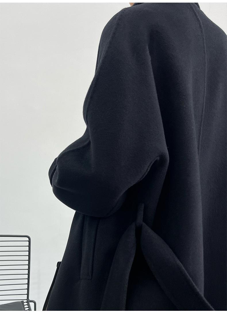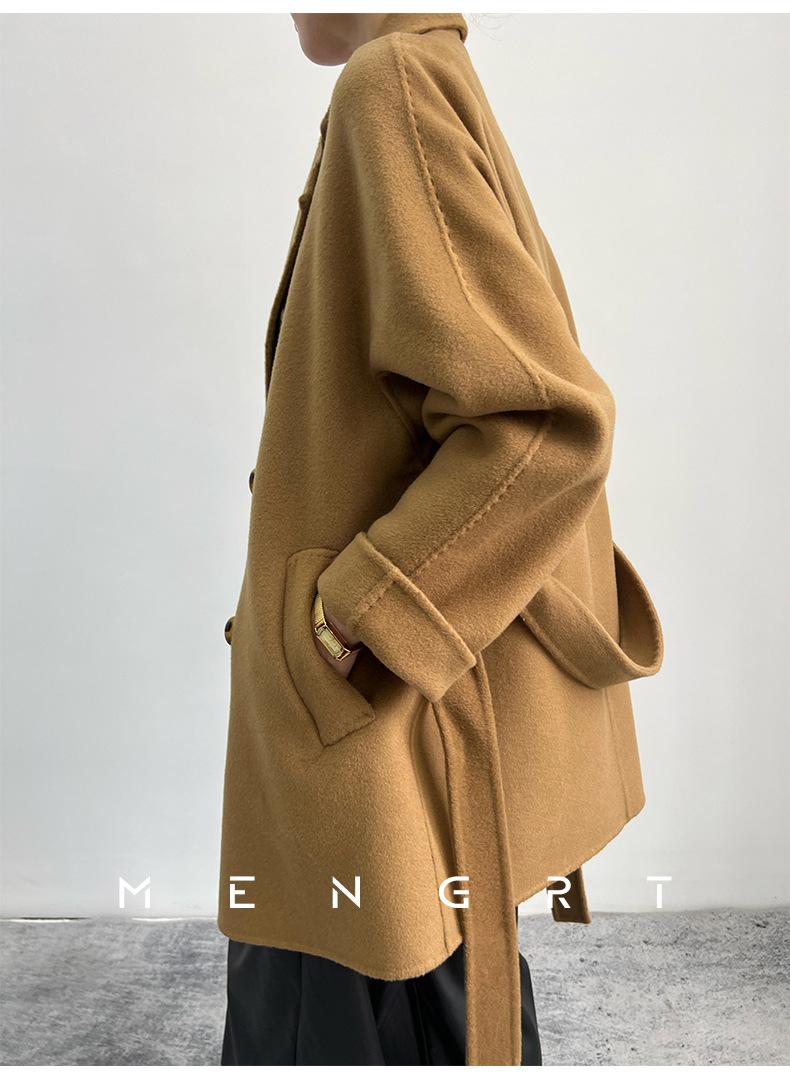 Abrigo de lana de doble vista de cachemira de largo medio con cuello de traje exterior cruzado para mujer, grueso y elegante para otoño e invierno.