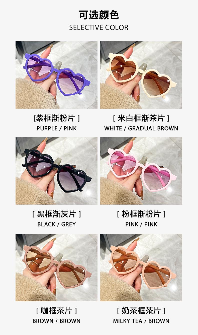 Gafas de sol para niños de amor transfronterizo, gafas de fiesta para niños con forma de corazón de color caramelo de moda, nuevas gafas de sol para niños al por mayor