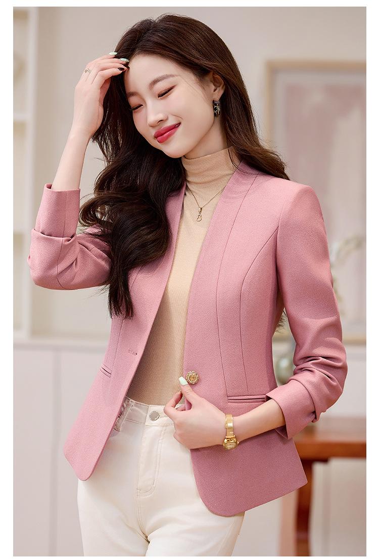Chaqueta de traje rosa para mujer, primavera y otoño 2024, nueva, elegante, informal, corta, ajustada.