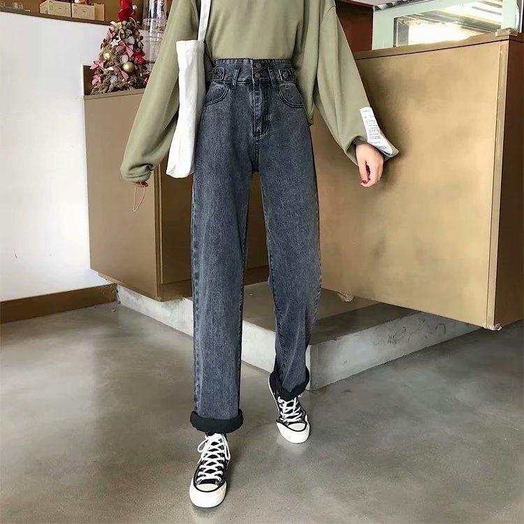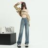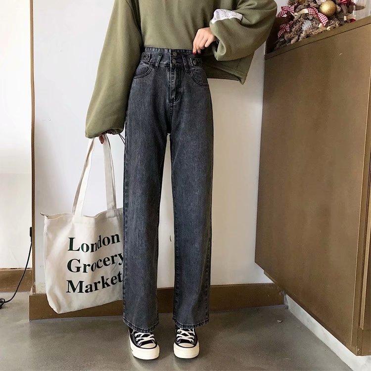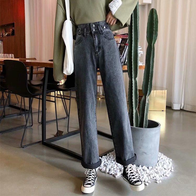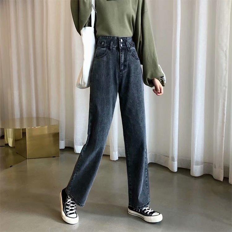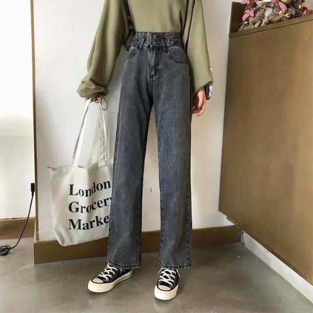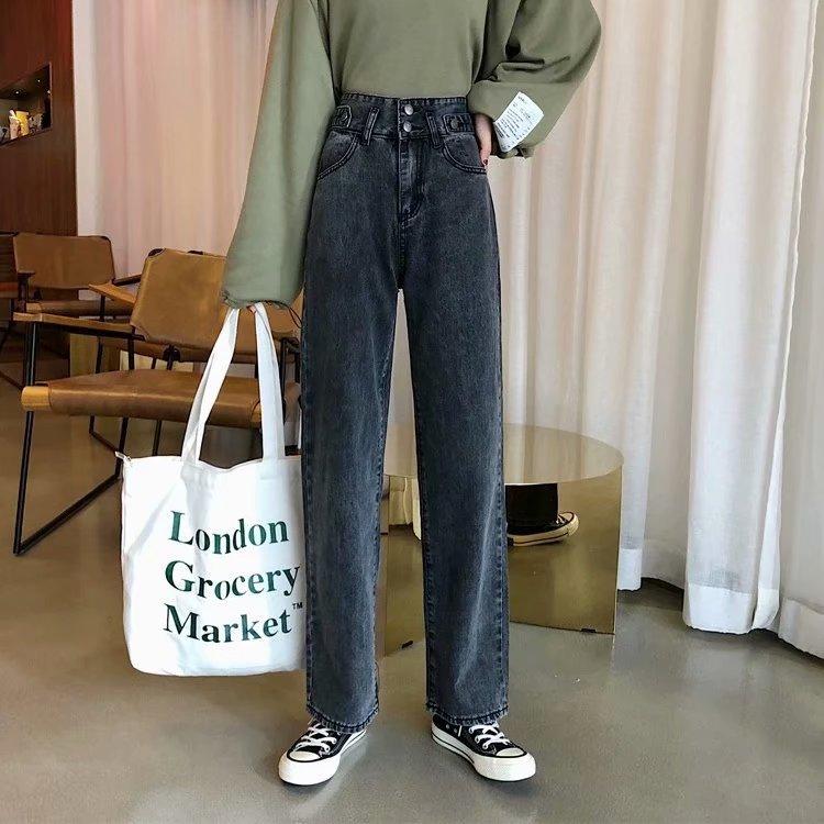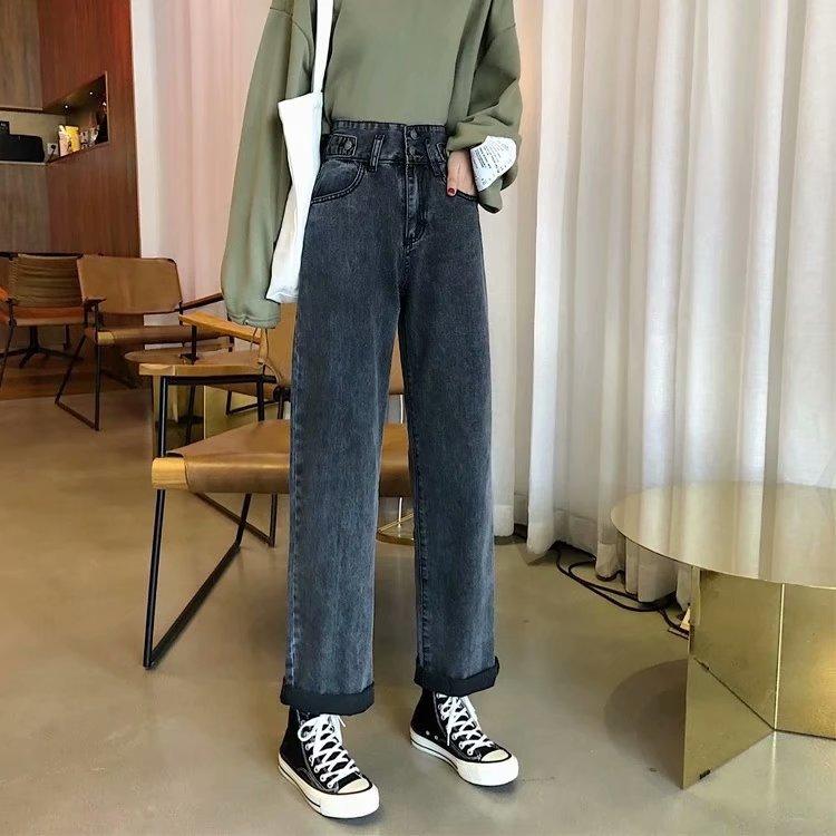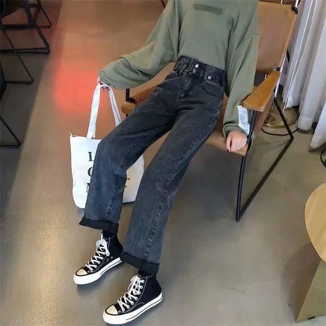 Jeans Vintage para Mujer Nuevo Diseño de Estilo Americano Sentido de la Moda Cintura Alta Silueta Eslbelta Pequeño Suelto Recto Tubo Vertical Pantalones para Mujer