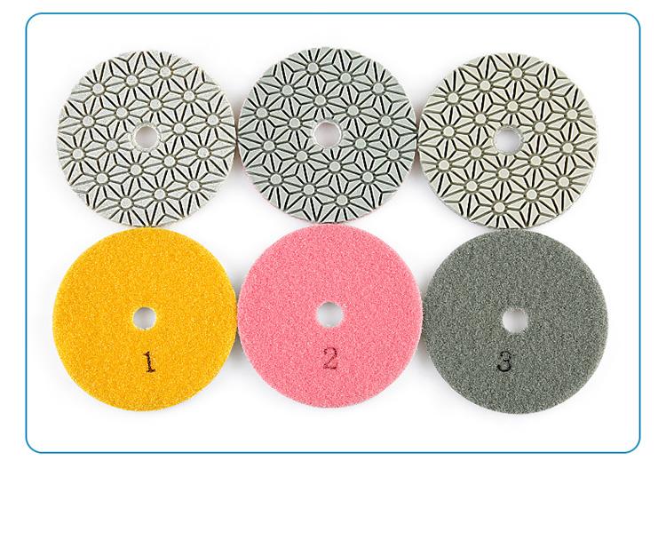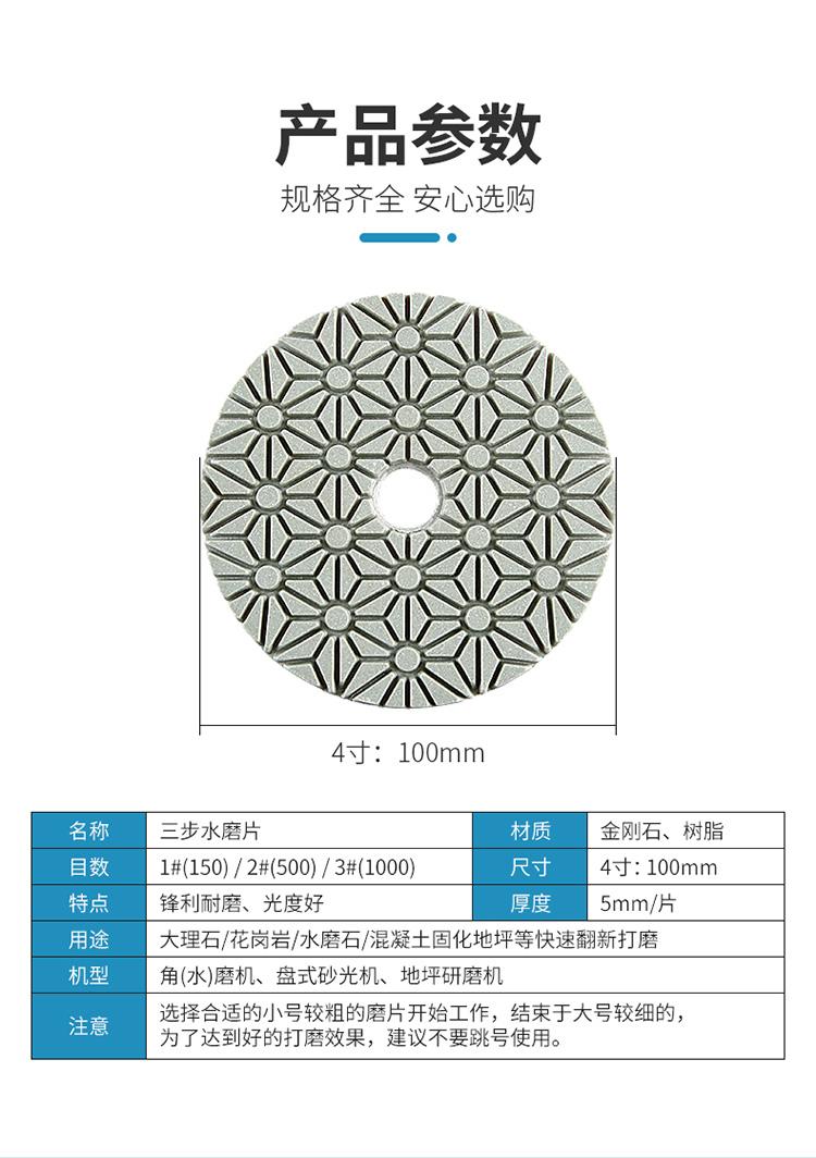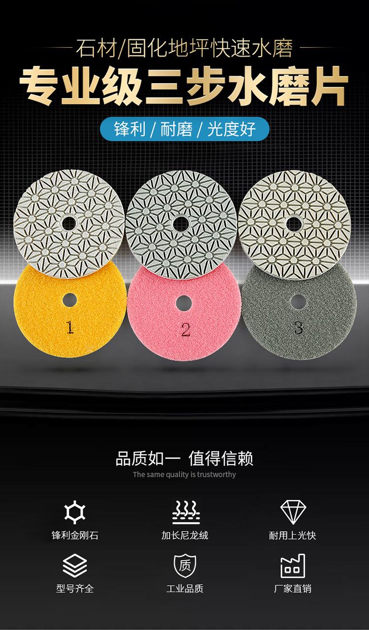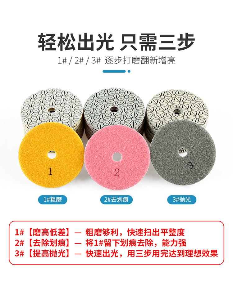 Pieza de pulido de agua de tres pasos para molino, pieza de pulido de piedra, pieza de pulido rápido 123, pieza de renovación de amoladora angular de mármol de 4 pulgadas