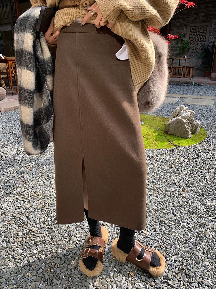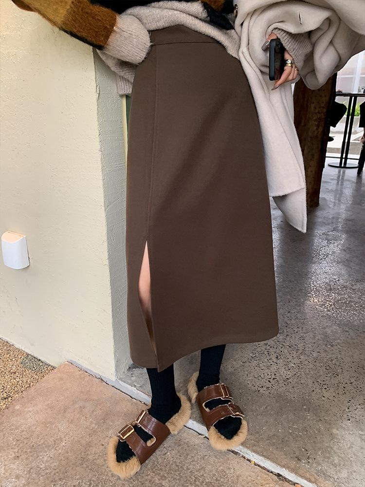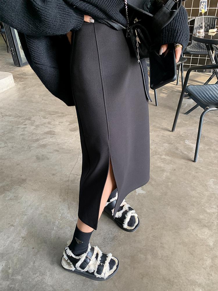 Traje de chica gordita de talla grande para mujer, falda recta de principios de otoño, cintura alta, ajustado, en forma de A, falda larga con abertura en la cadera, 200 kg