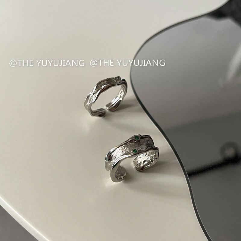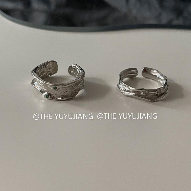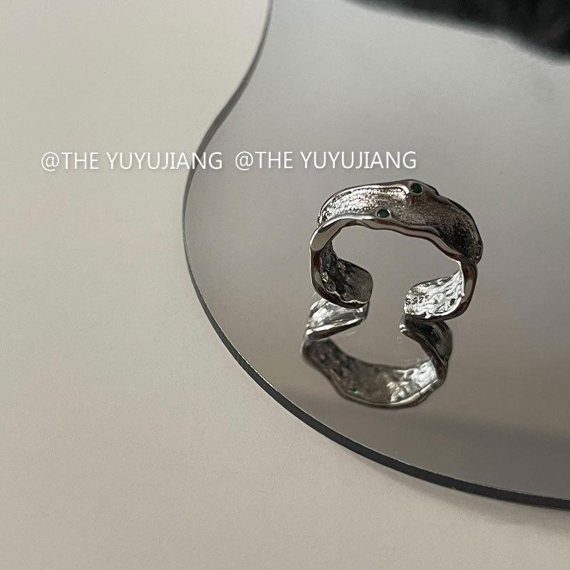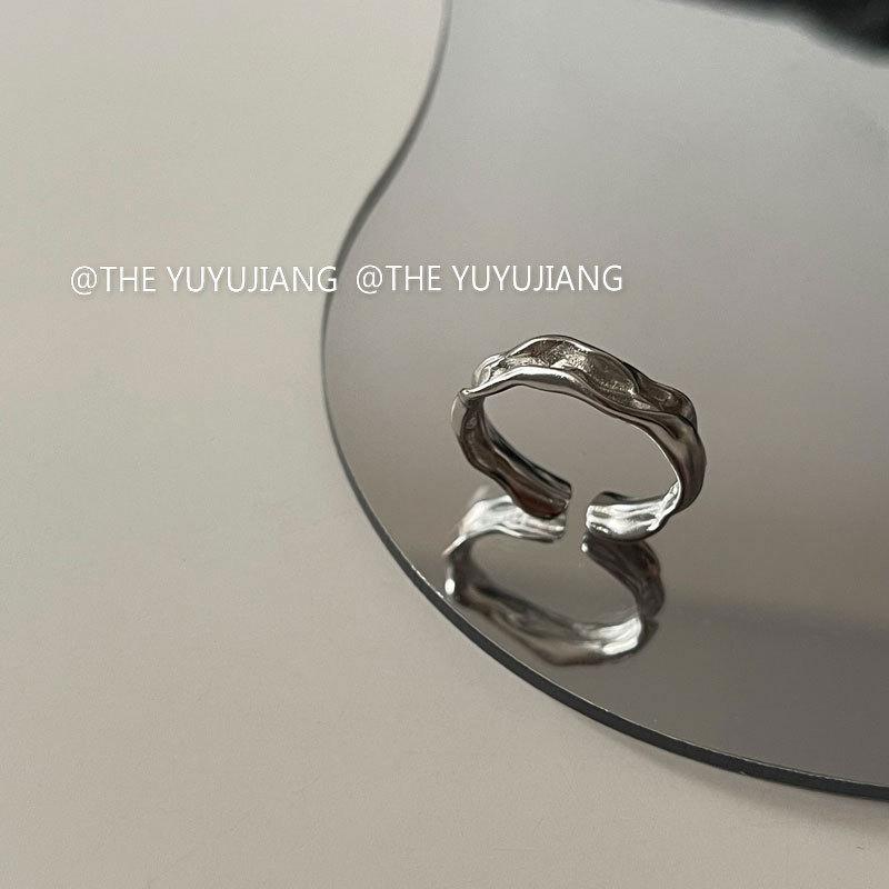 Anillo plisado irregular geométrico de plata S925 de estilo coreano para mujer, anillo abierto de circonita elegante vintage, anillo de dedo ondulado