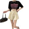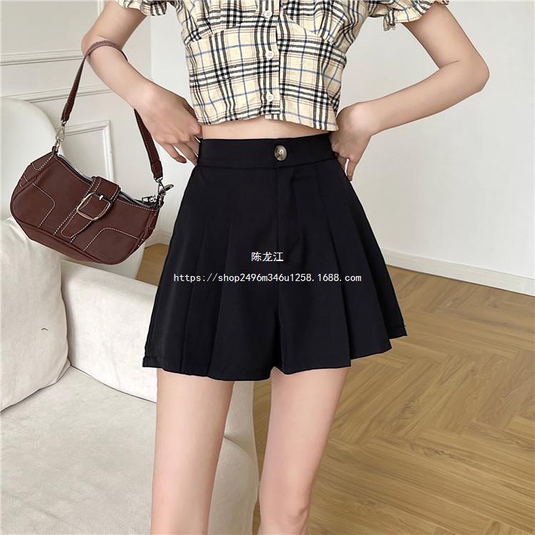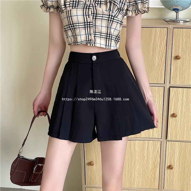 Pantalones cortos de traje de cintura alta de talla grande para mujer, línea A, negros, de pierna ancha, finos, sueltos, nuevos, informales, albaricoque, otros