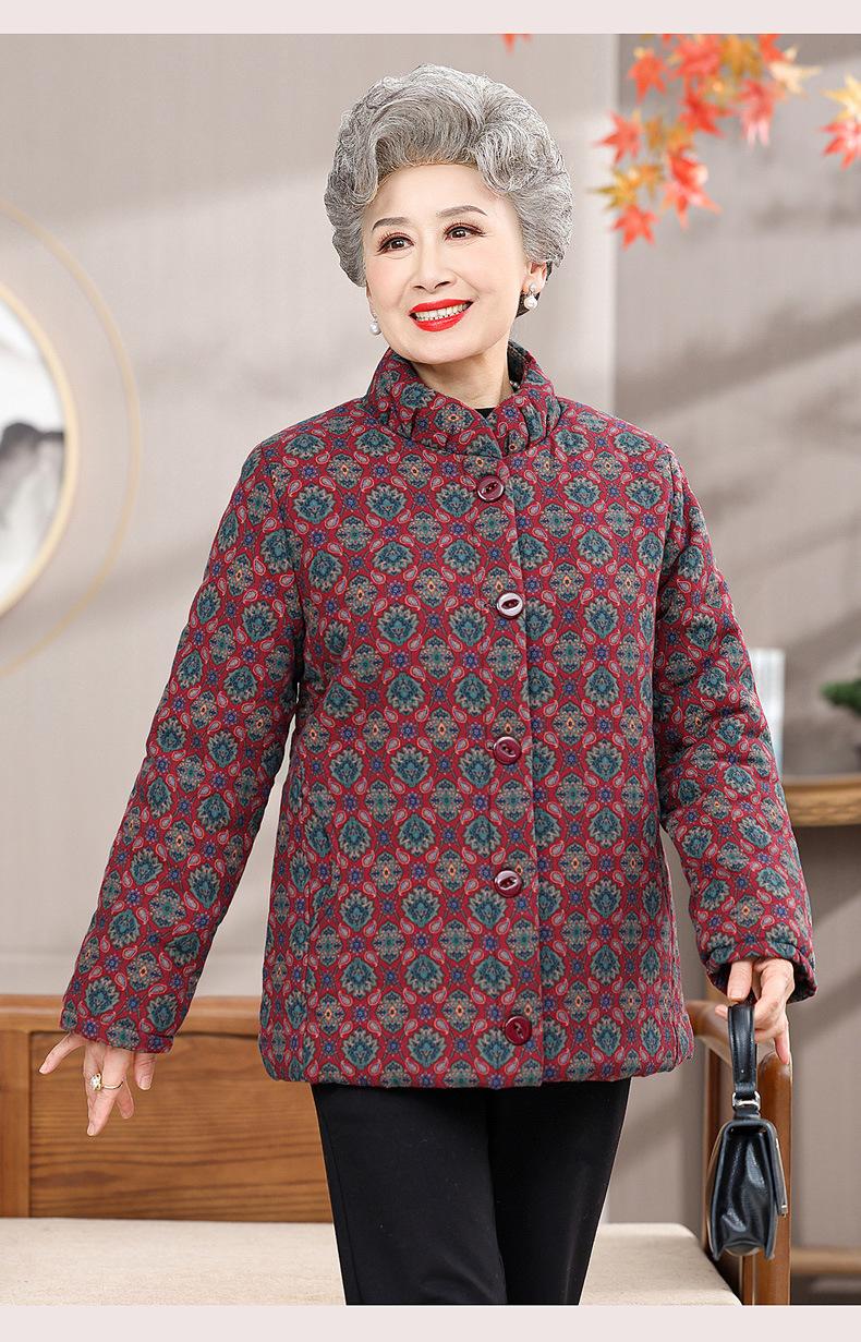 Ropa para mujeres de mediana edad y ancianas con abrigo de terciopelo cálido acolchado de algodón de abuela para madre anciana, abrigo acolchado de algodón para invierno para mujeres de mediana edad y ancianas, chaqueta acolchada de algodón