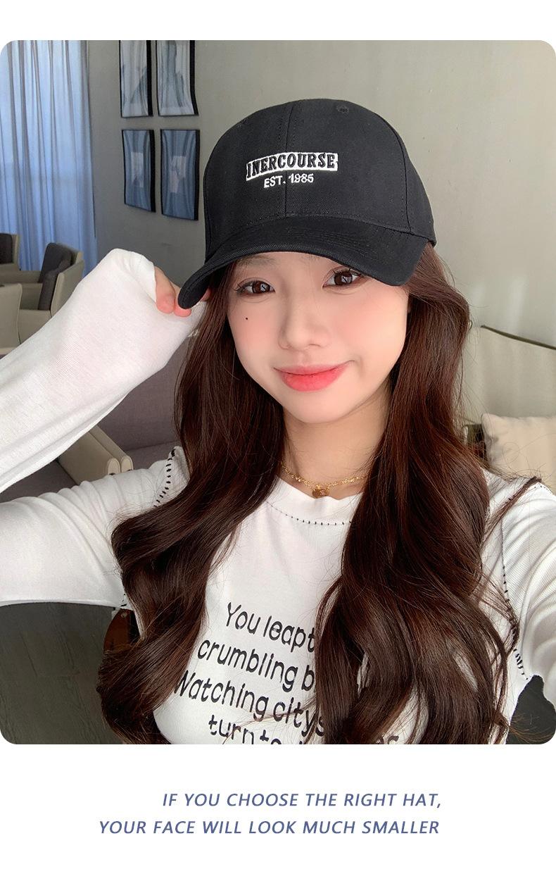 Nueva gorra de béisbol bordada con parte superior rígida, gorra pequeña versátil con diseño de cara para mujer, gorra con visera con letras de estilo coreano, sombrero para el sol para exteriores para mujer