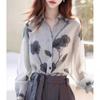 Camisa de Manga Larga Francesa Meisrn para Mujer Otoño 2024 Nueva Azul Estilo Palacio Pequeño