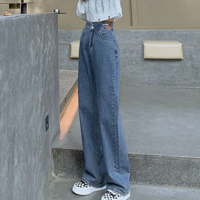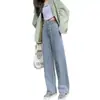 Pantalones vaqueros rectos retro de pierna ancha para mujer, pantalones largos adelgazantes de cintura alta y holgados de verano 2024.