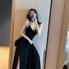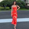 Venta al por mayor transfronteriza Nueva versión elegante estilo sexy tirantes finos cuello en V vestido de tirantes color sólido vestido largo ajustado para mujer