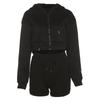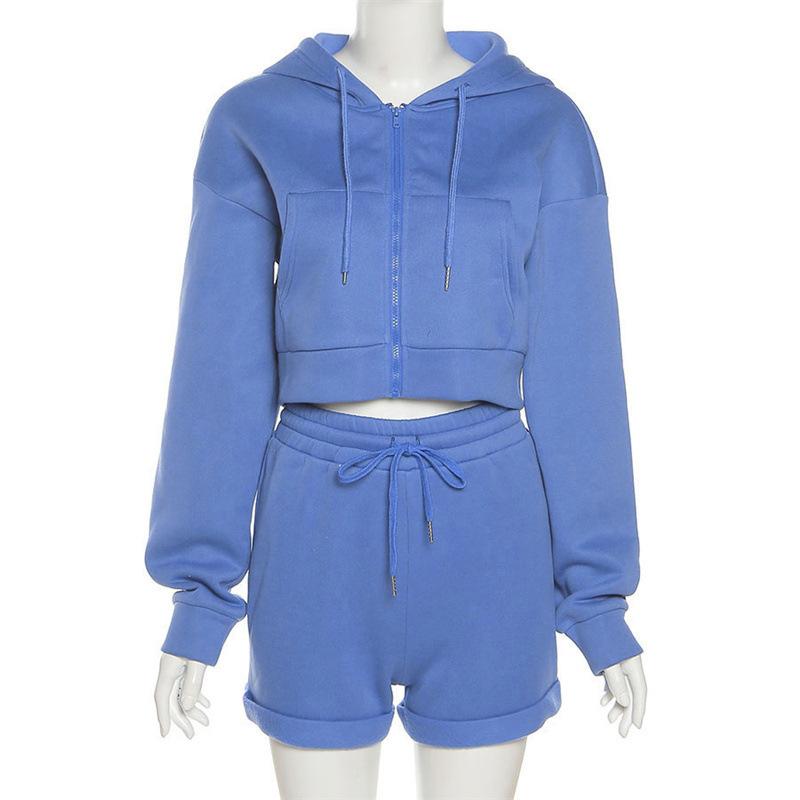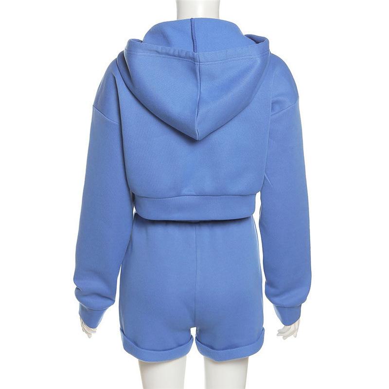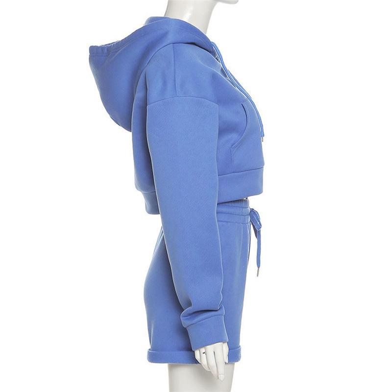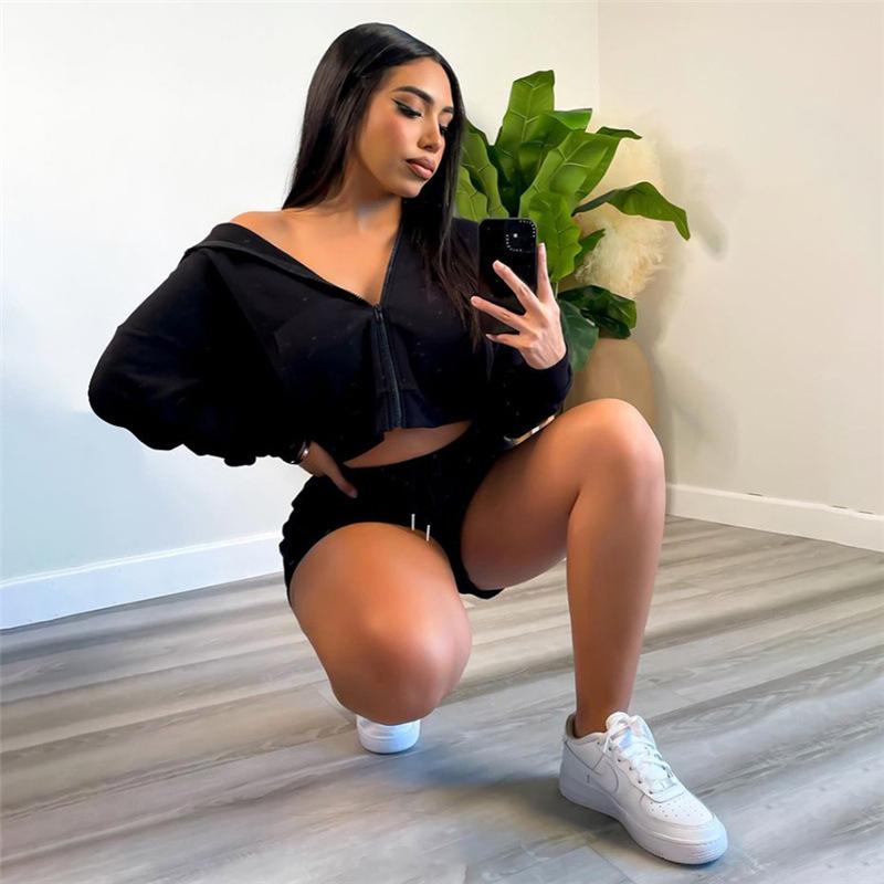 Suéter con capucha y pantalones cortos rectos para mujer, traje informal de comercio exterior europeo y americano de otoño de 2023