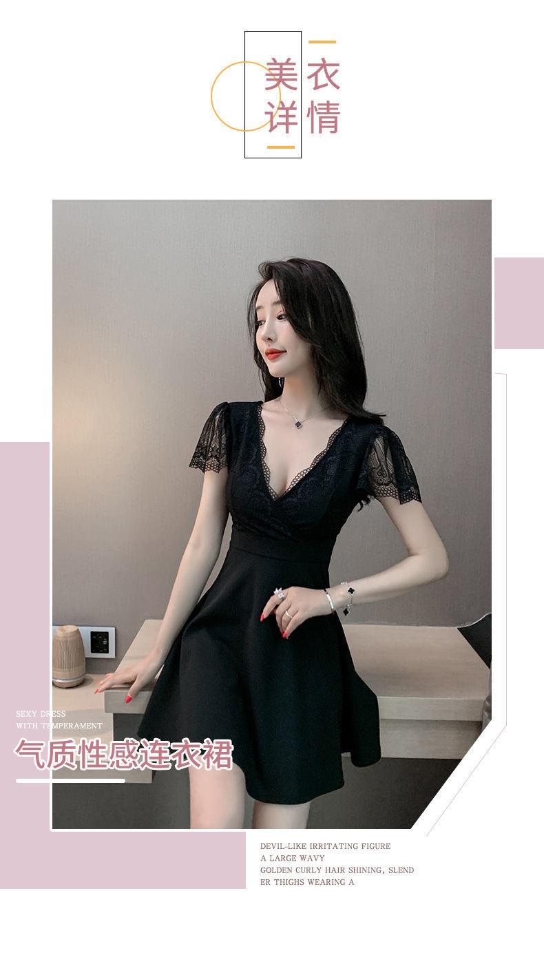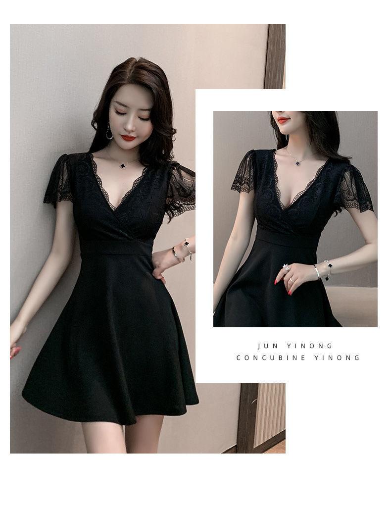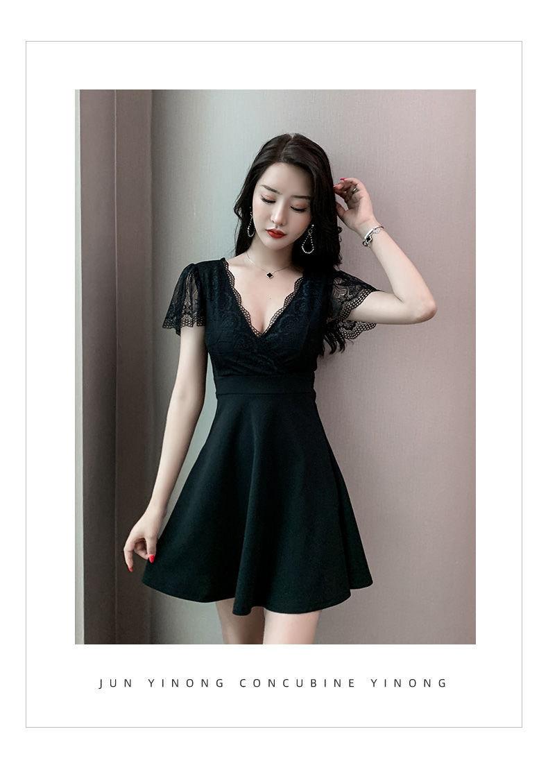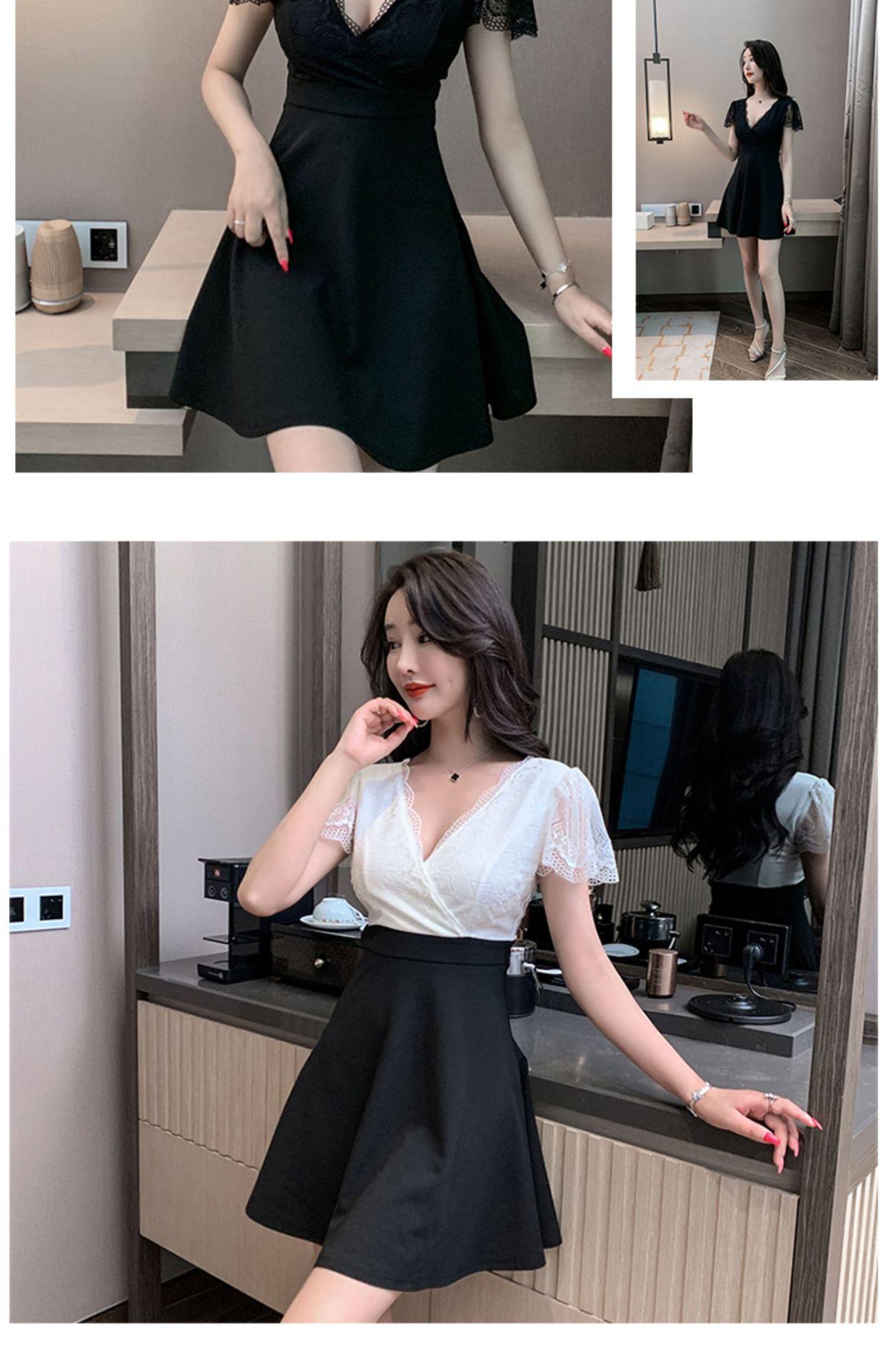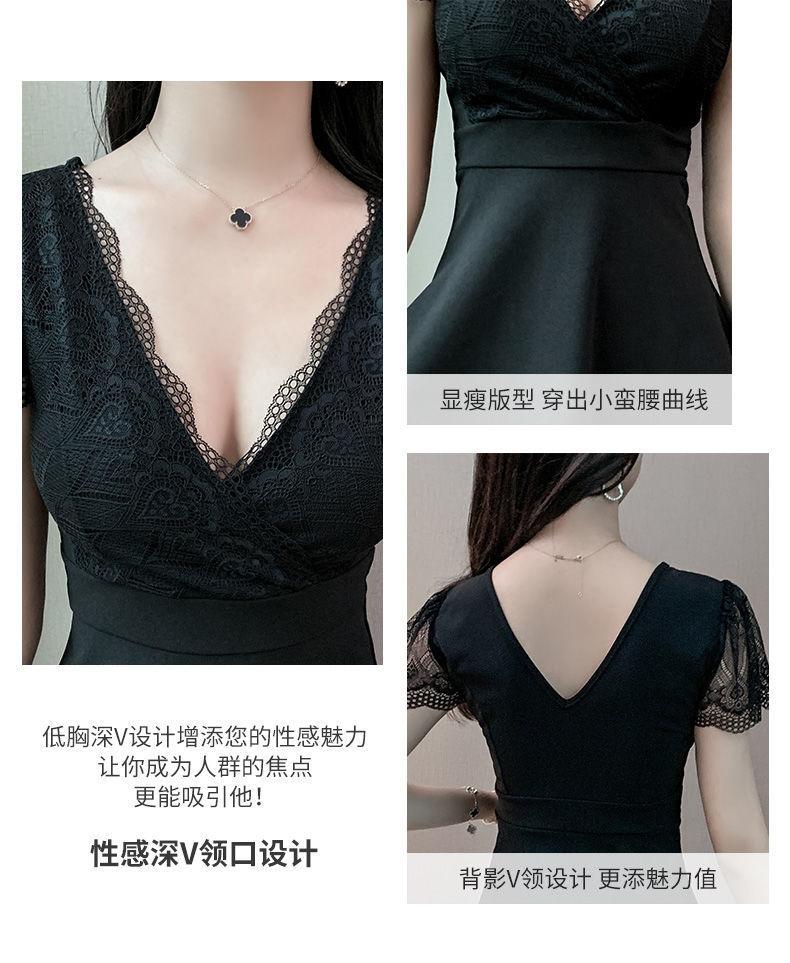Vestido sexy Ropa de trabajo nocturna Club nocturno Encaje Falda escotada Cuello en V Tienda de cabezas Cubre vientre Adelgazante Noche Sexy