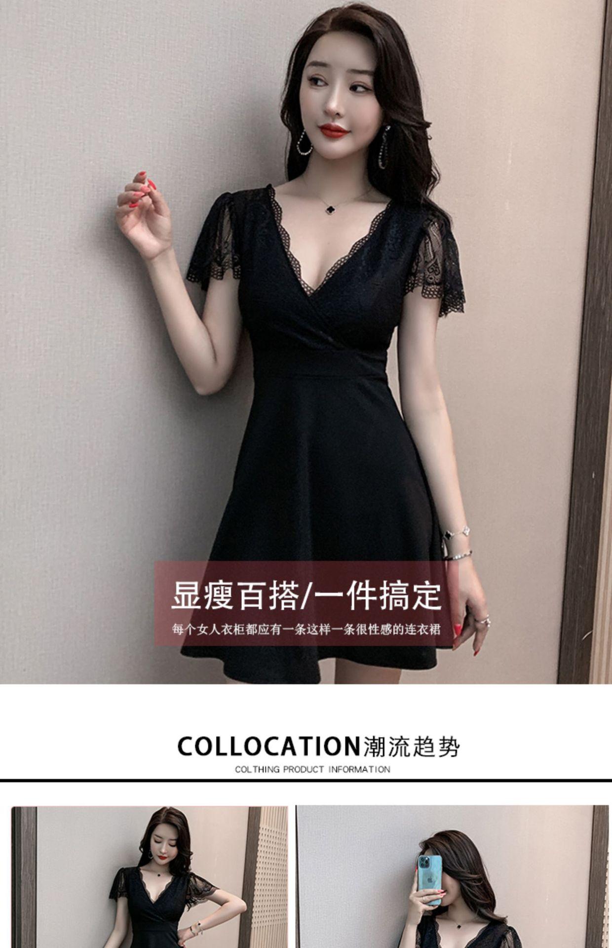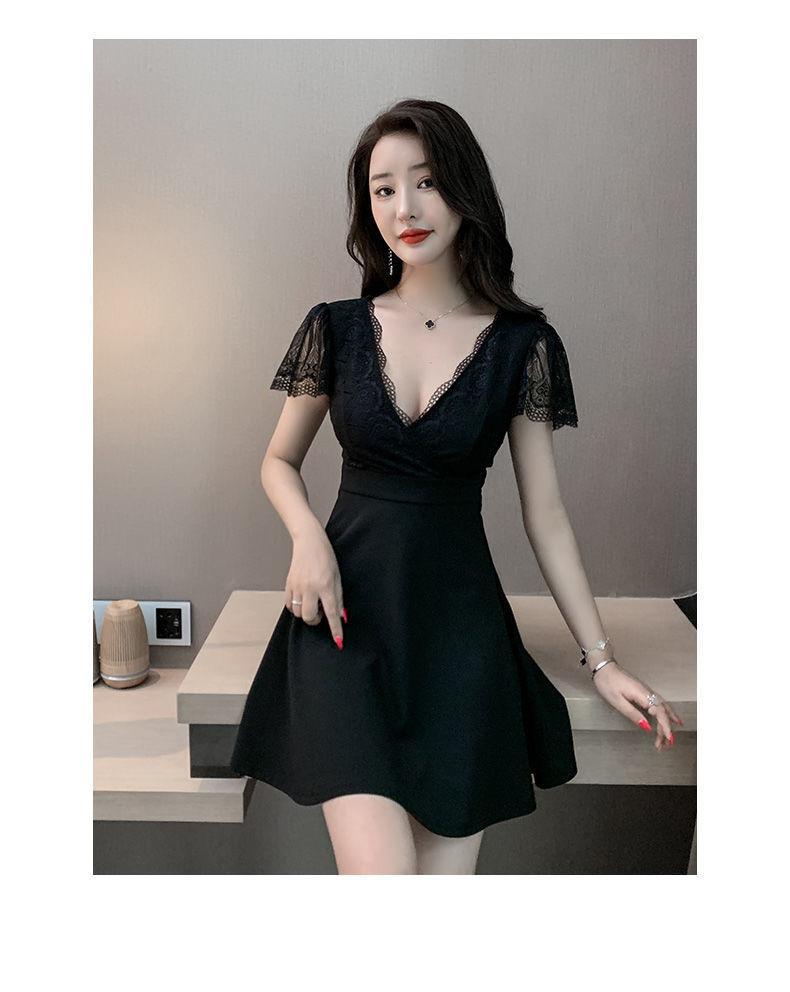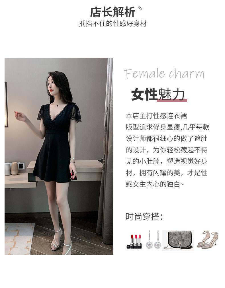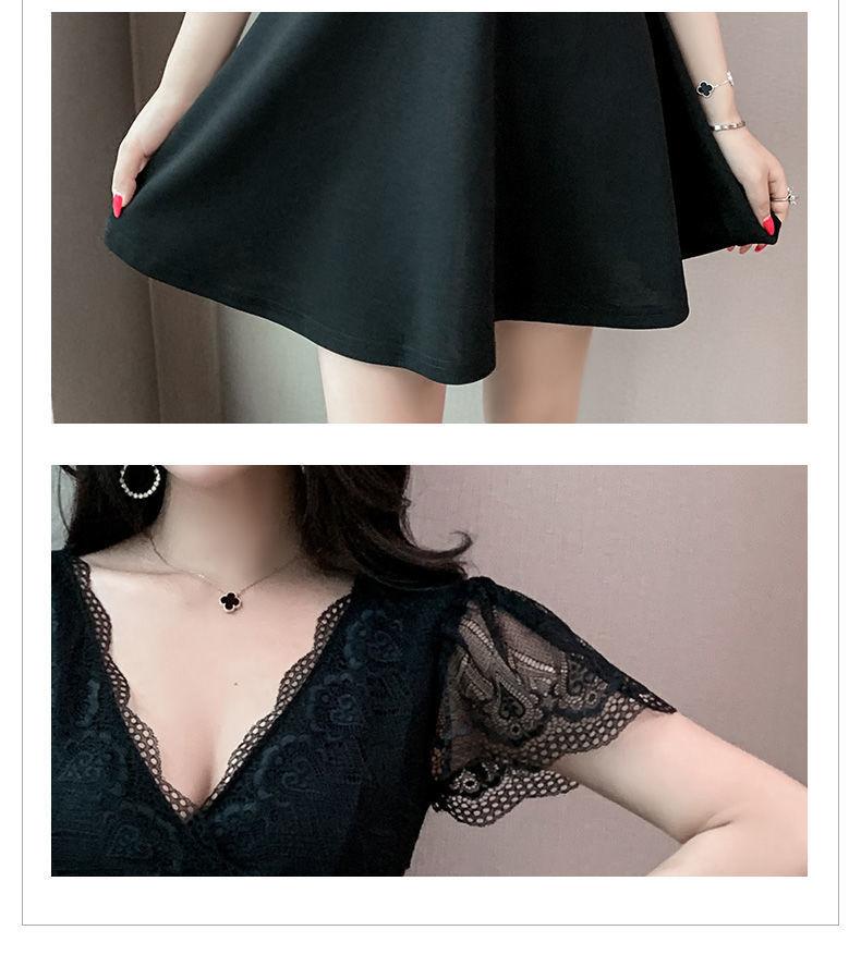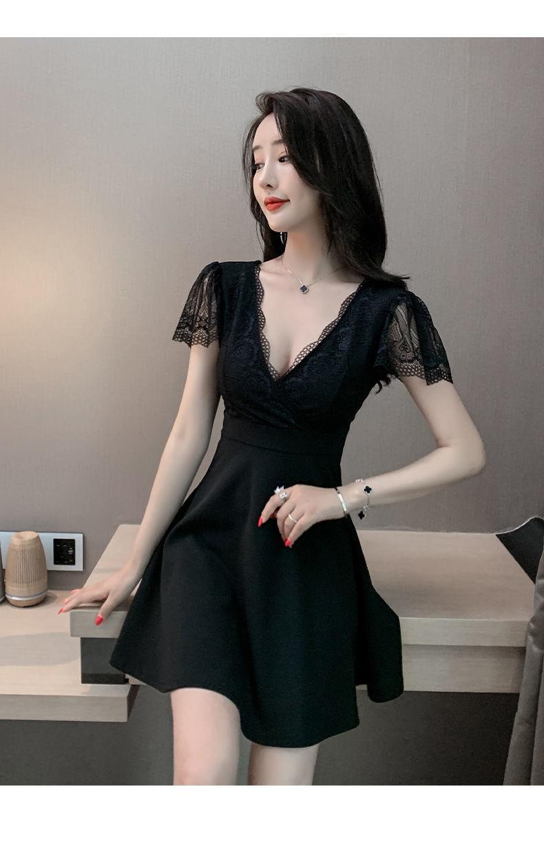 Vestido sexy Ropa de trabajo nocturna Club nocturno Encaje Falda escotada Cuello en V Tienda de cabezas Cubre vientre Adelgazante Noche Sexy