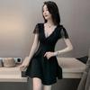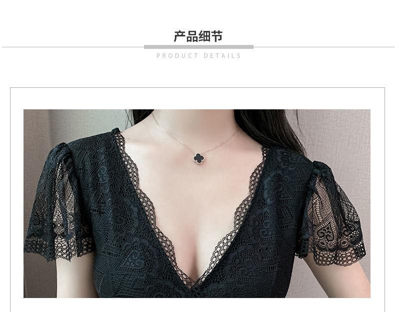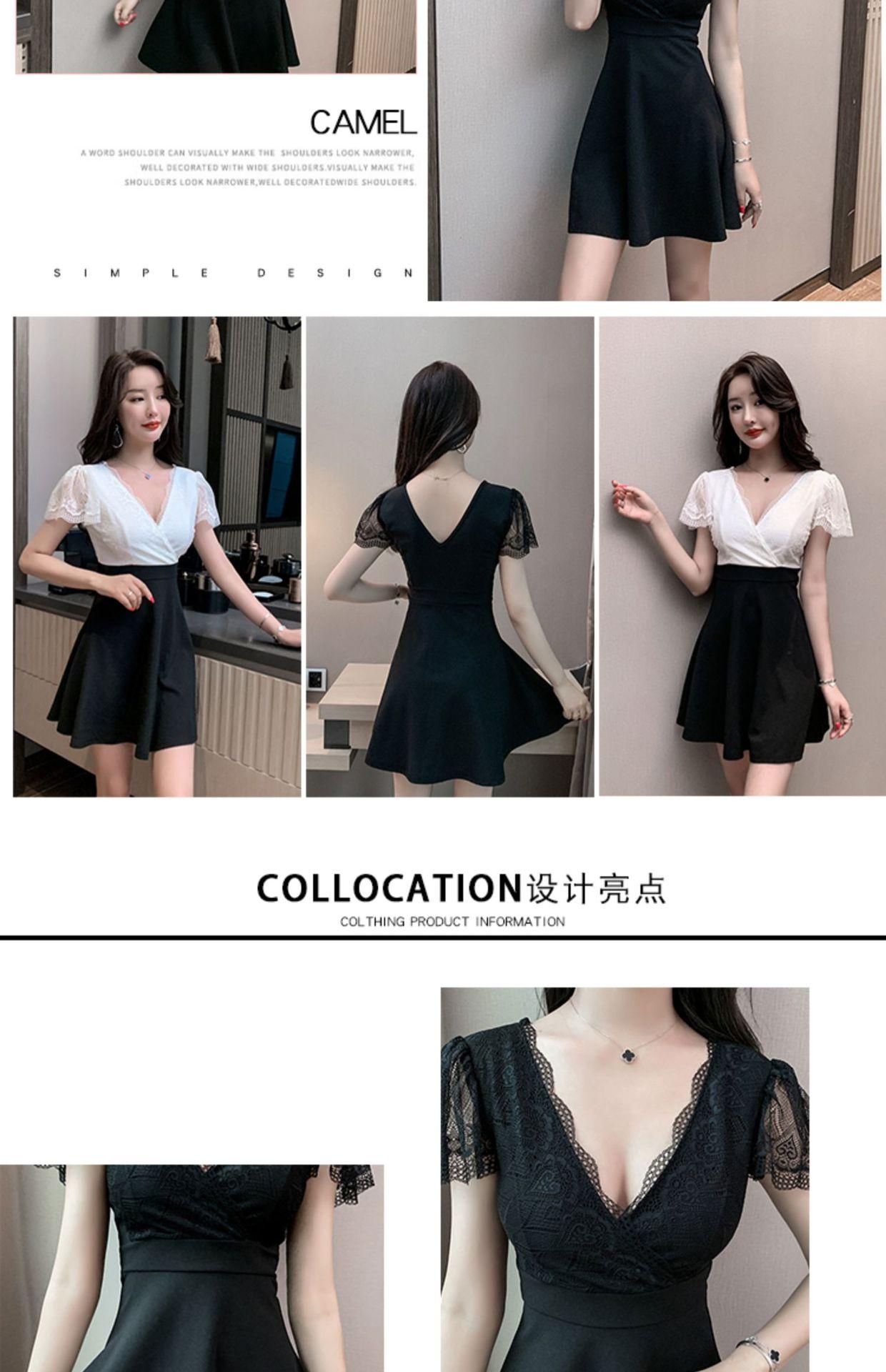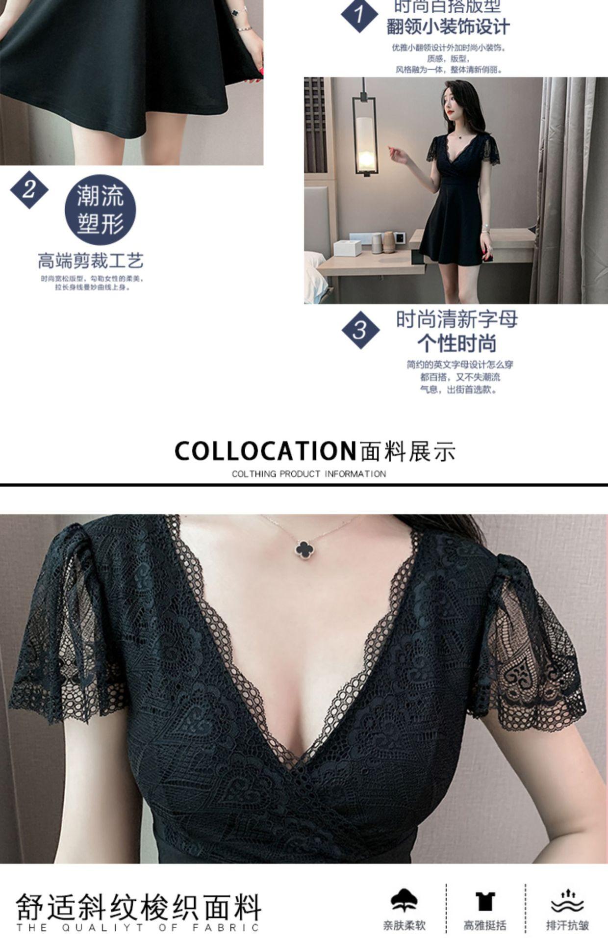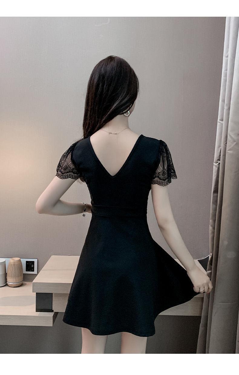Vestido sexy Ropa de trabajo nocturna Club nocturno Encaje Falda escotada Cuello en V Tienda de cabezas Cubre vientre Adelgazante Noche Sexy