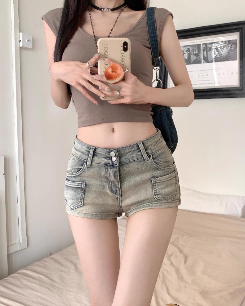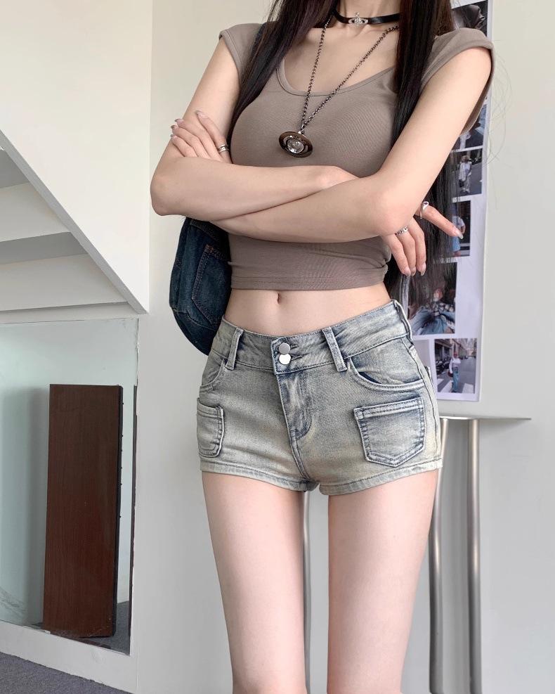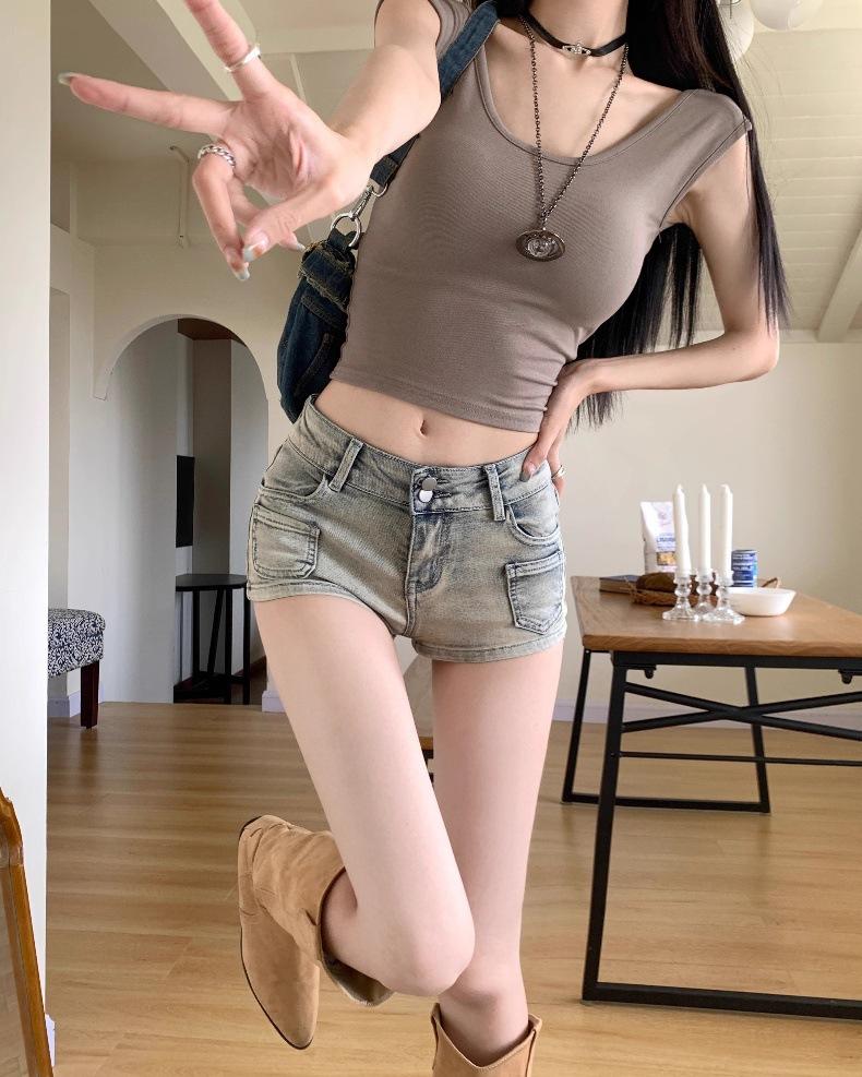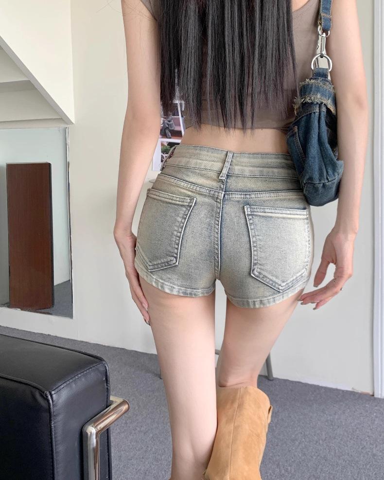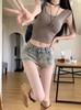 Shorts de mezclilla elásticos retro Spice Girl para mujer 2024 Verano Nueva llegada Pequeños Ajustados Slim Rectos Pantalones cortos