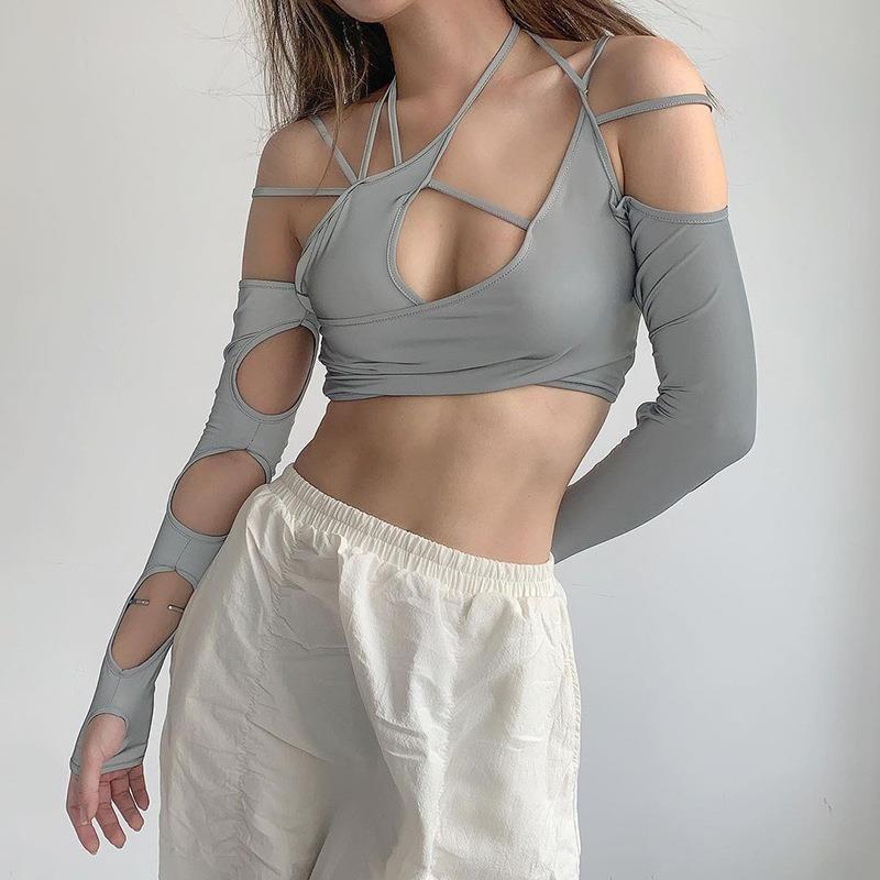 Top de verano para mujer, nuevo, de color liso, con cuello halter, mangas sin espalda y cuello halter.