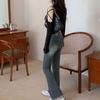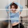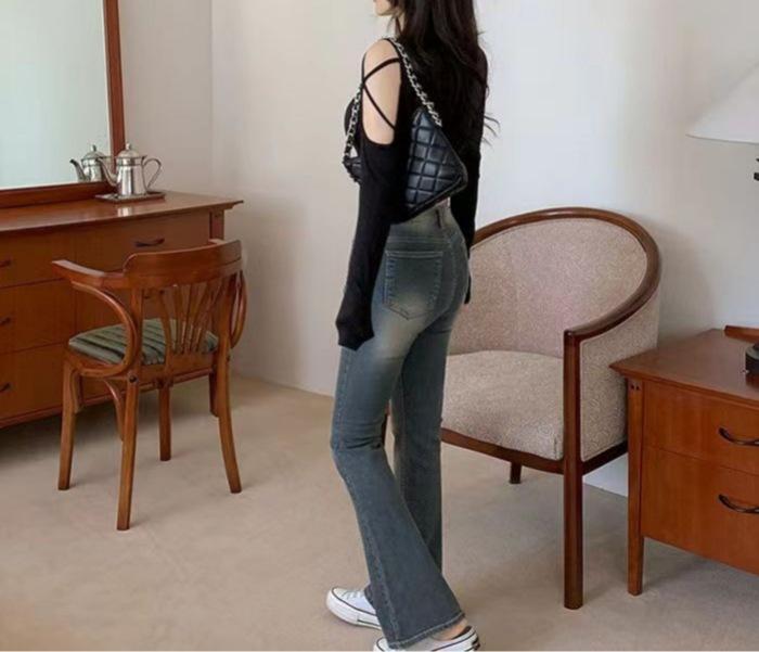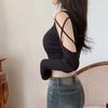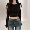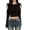 Camiseta Negra Corta para Mujer Manga Larga Diseño de Hombro Sentido Nicho Otoño Nuevo 2024 Cintura Alta Ombligo Ajustada