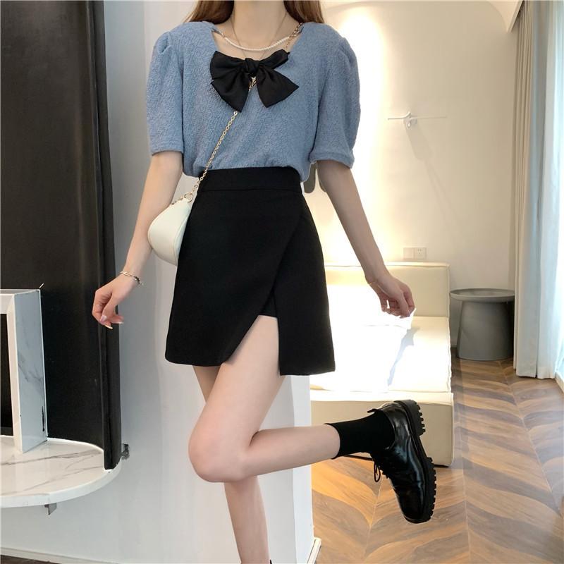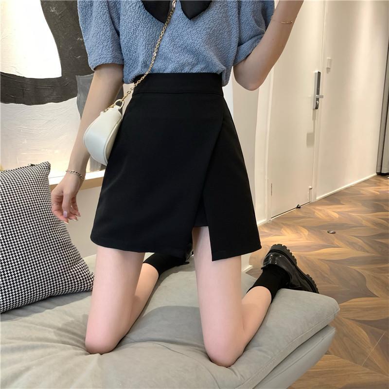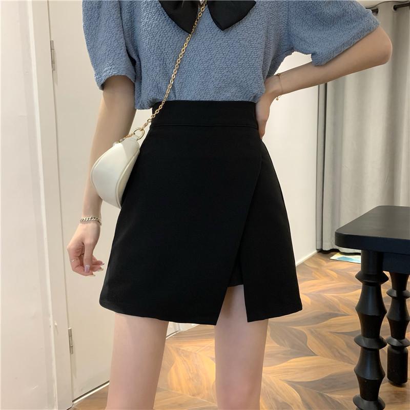 Falda de verano para mujer, falda irregular con abertura, cintura alta, antideslumbrante, línea A, falda que combina con todo, falda de otoño, pantalones